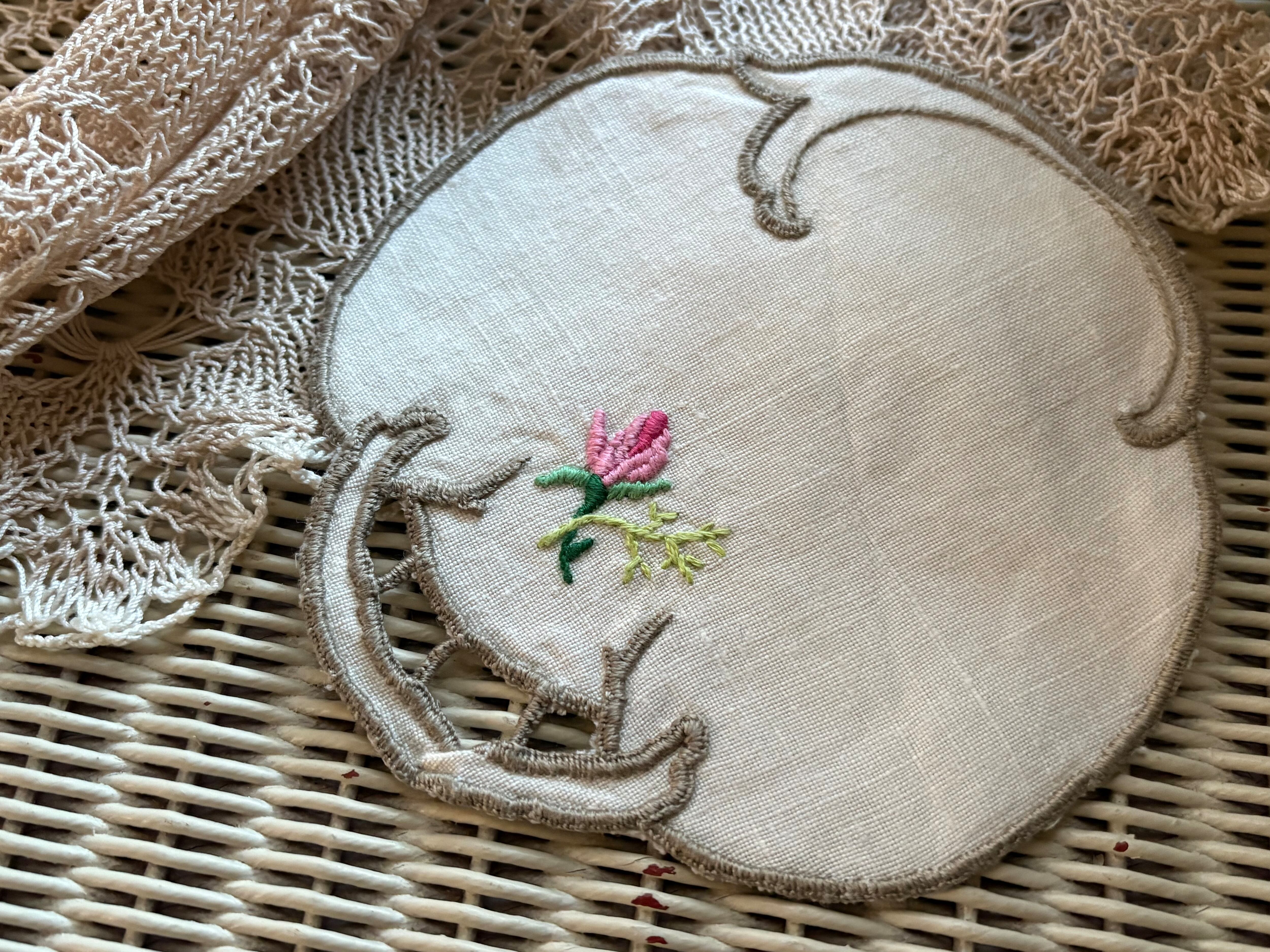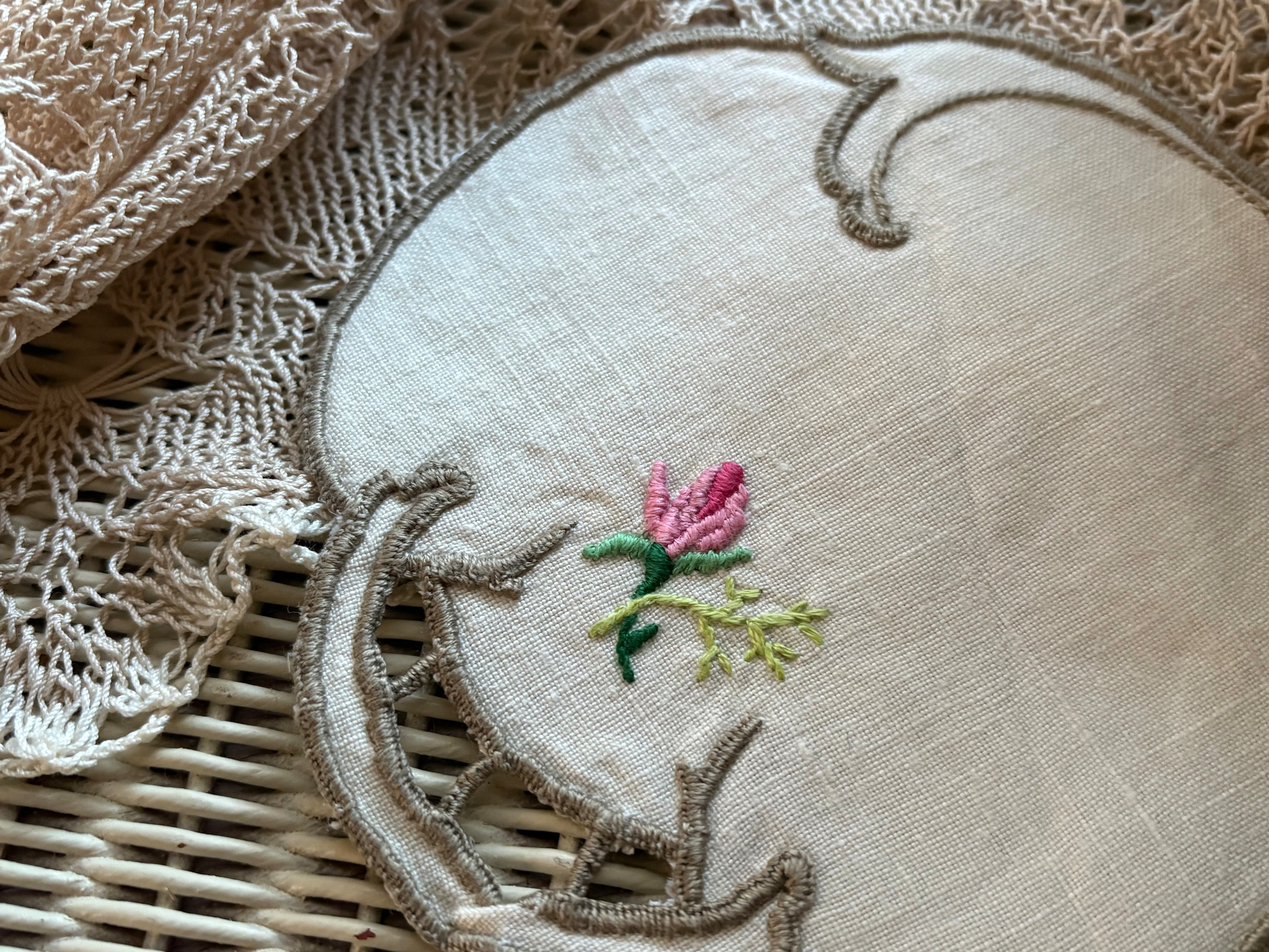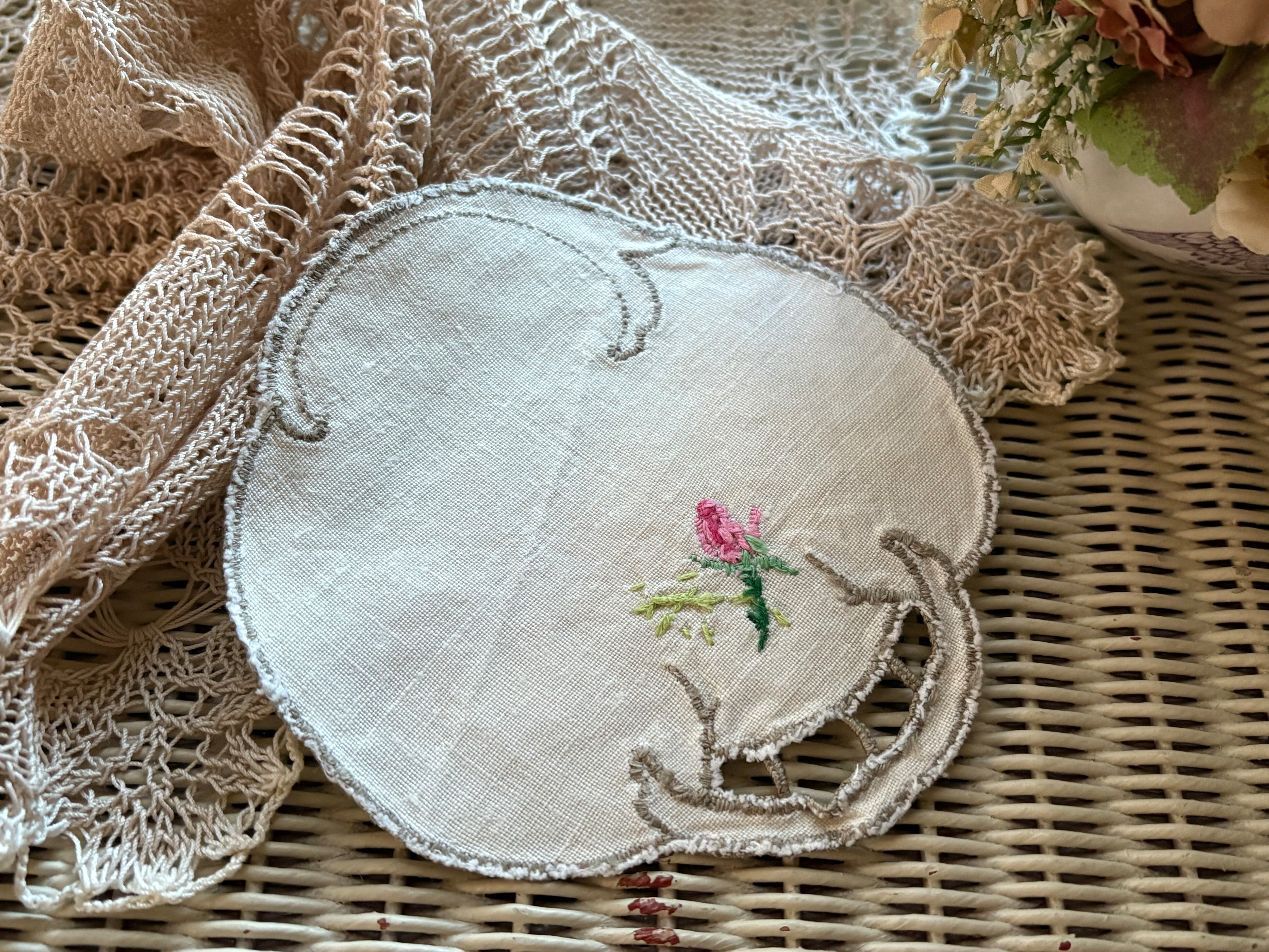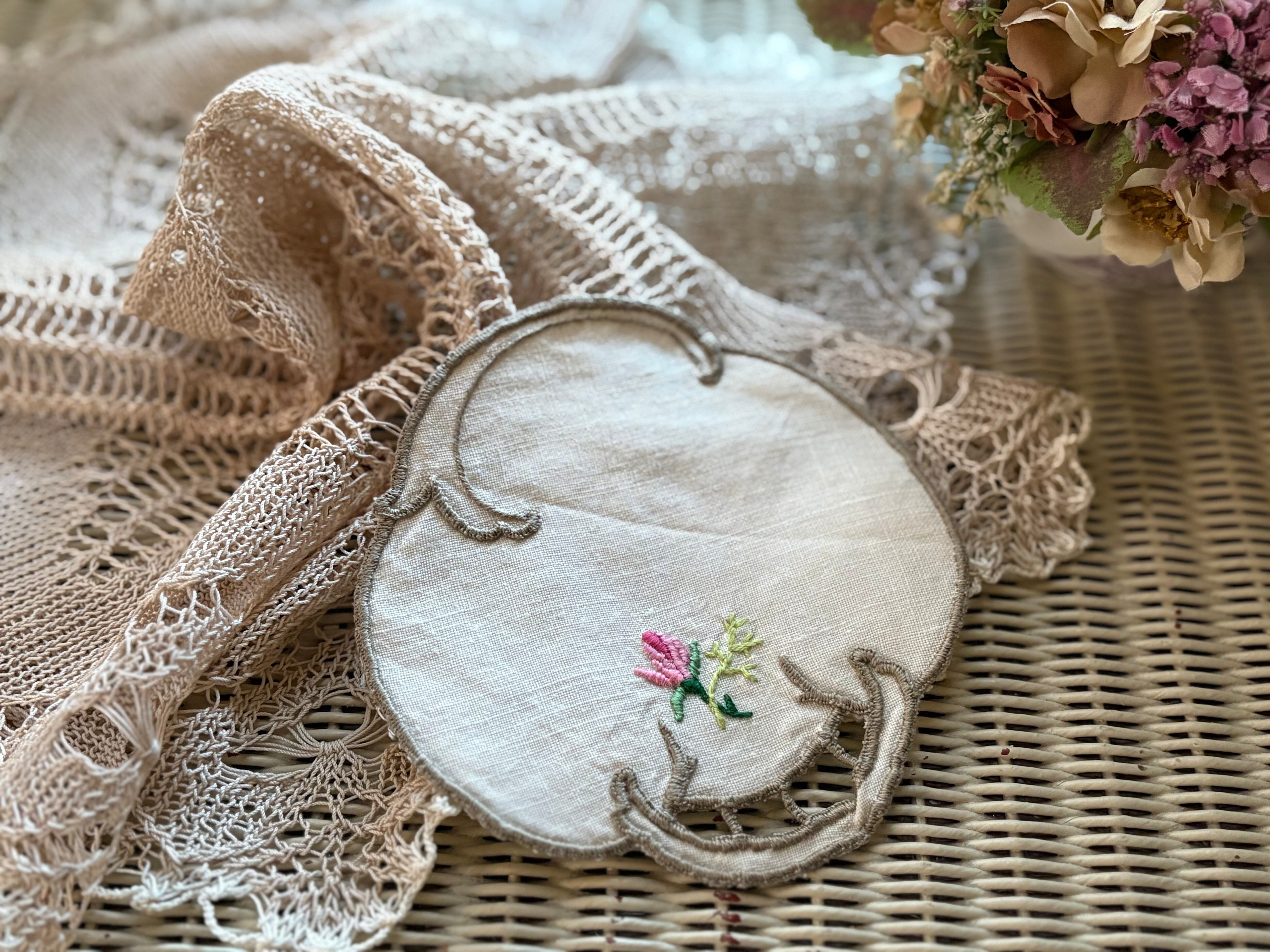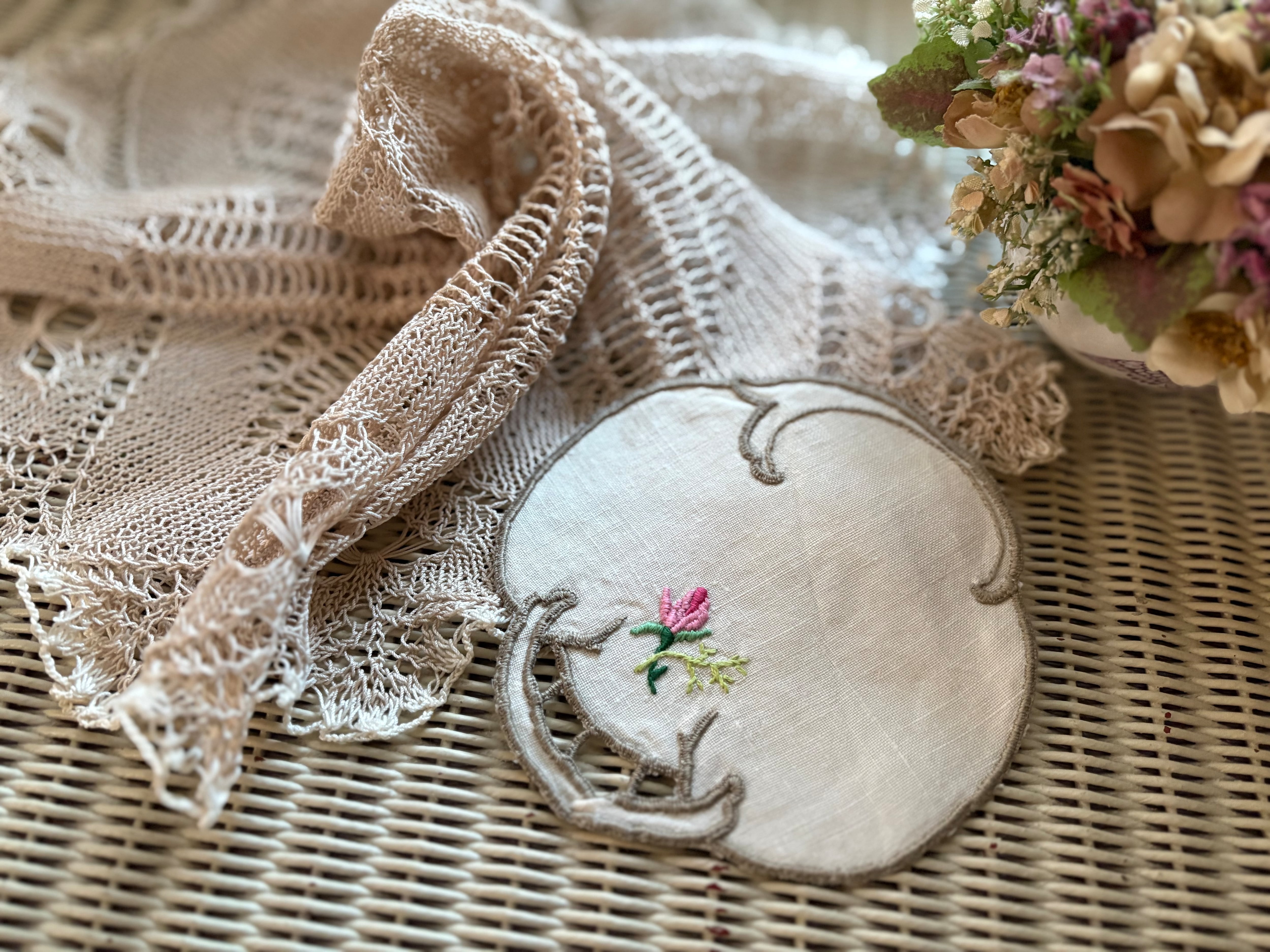英国 Vintage ヴィンテージドイリー 小花の刺繍 敷物 ハンドメイド素材 インテリア小物 カットワーク