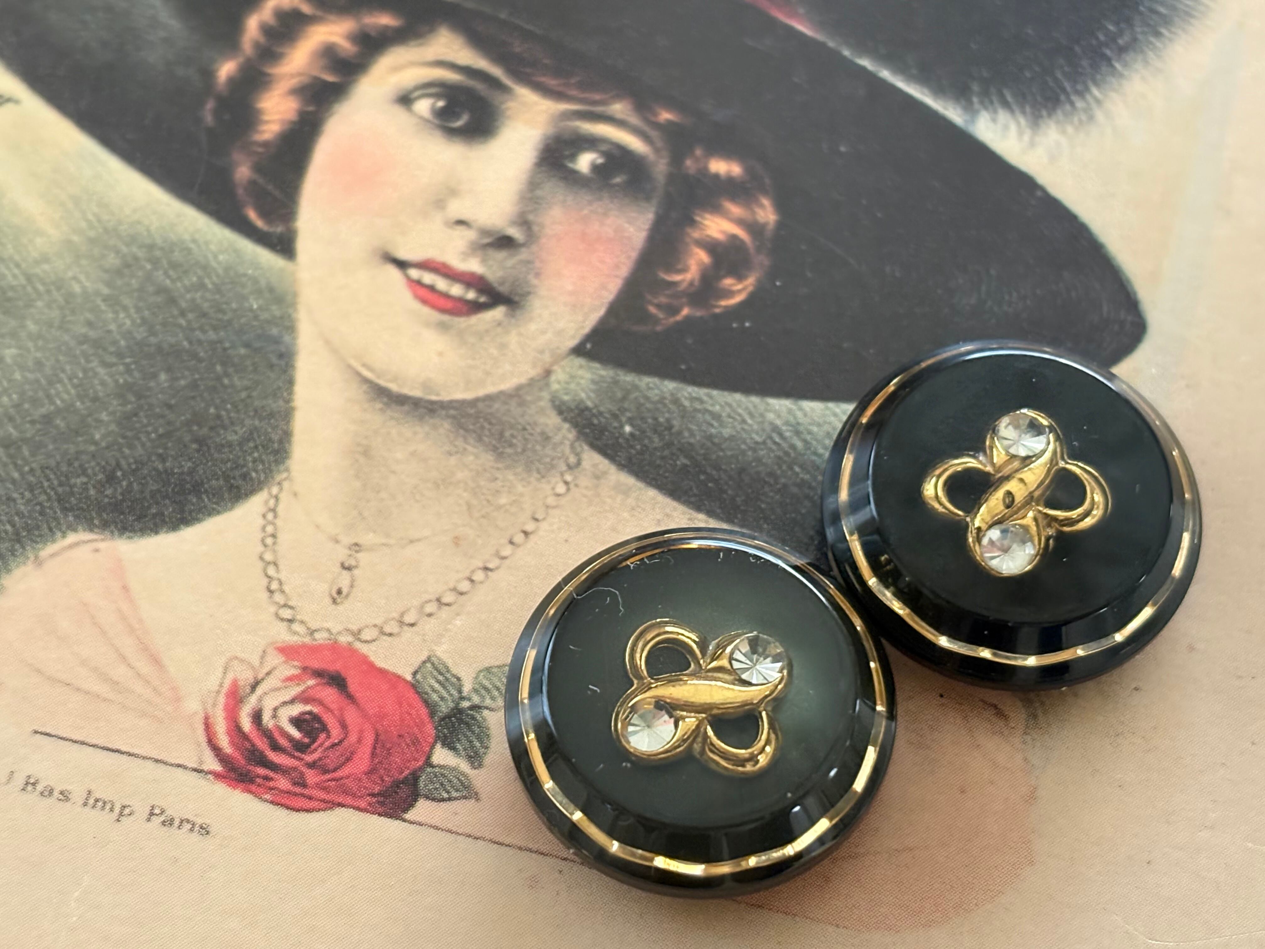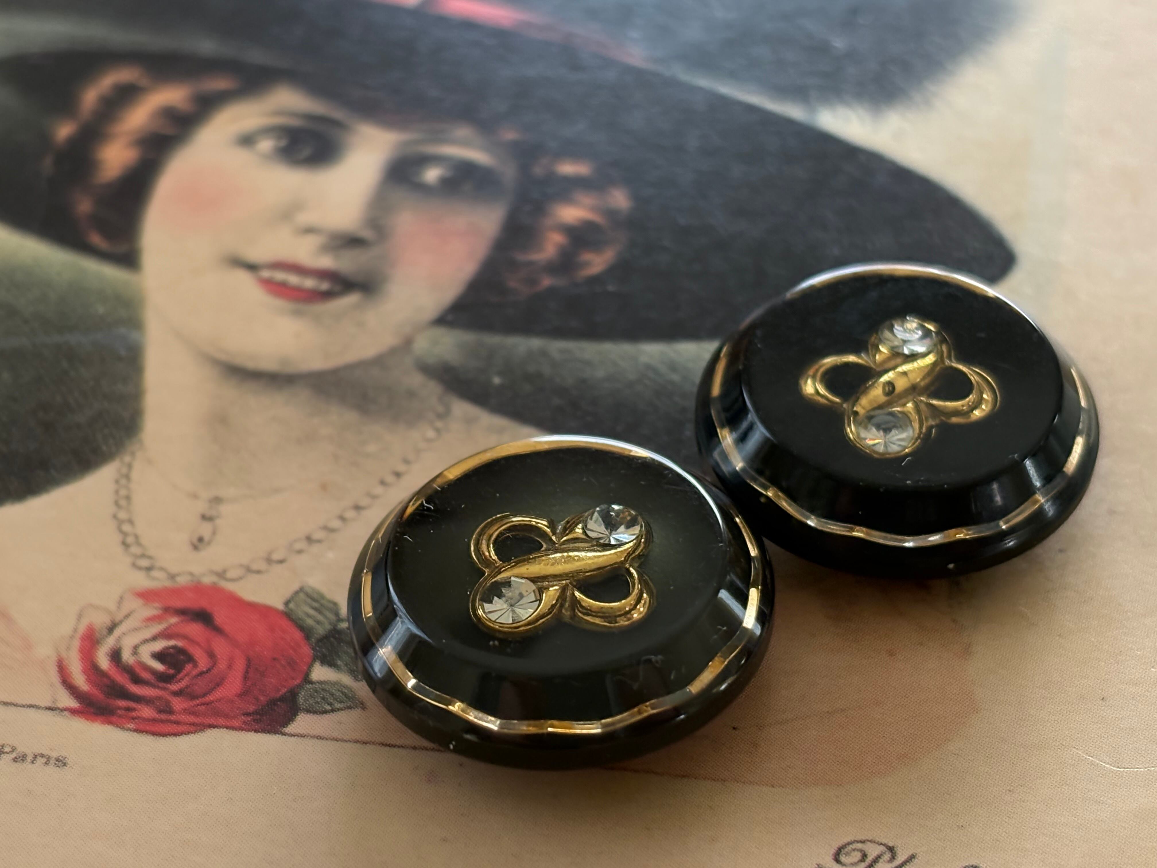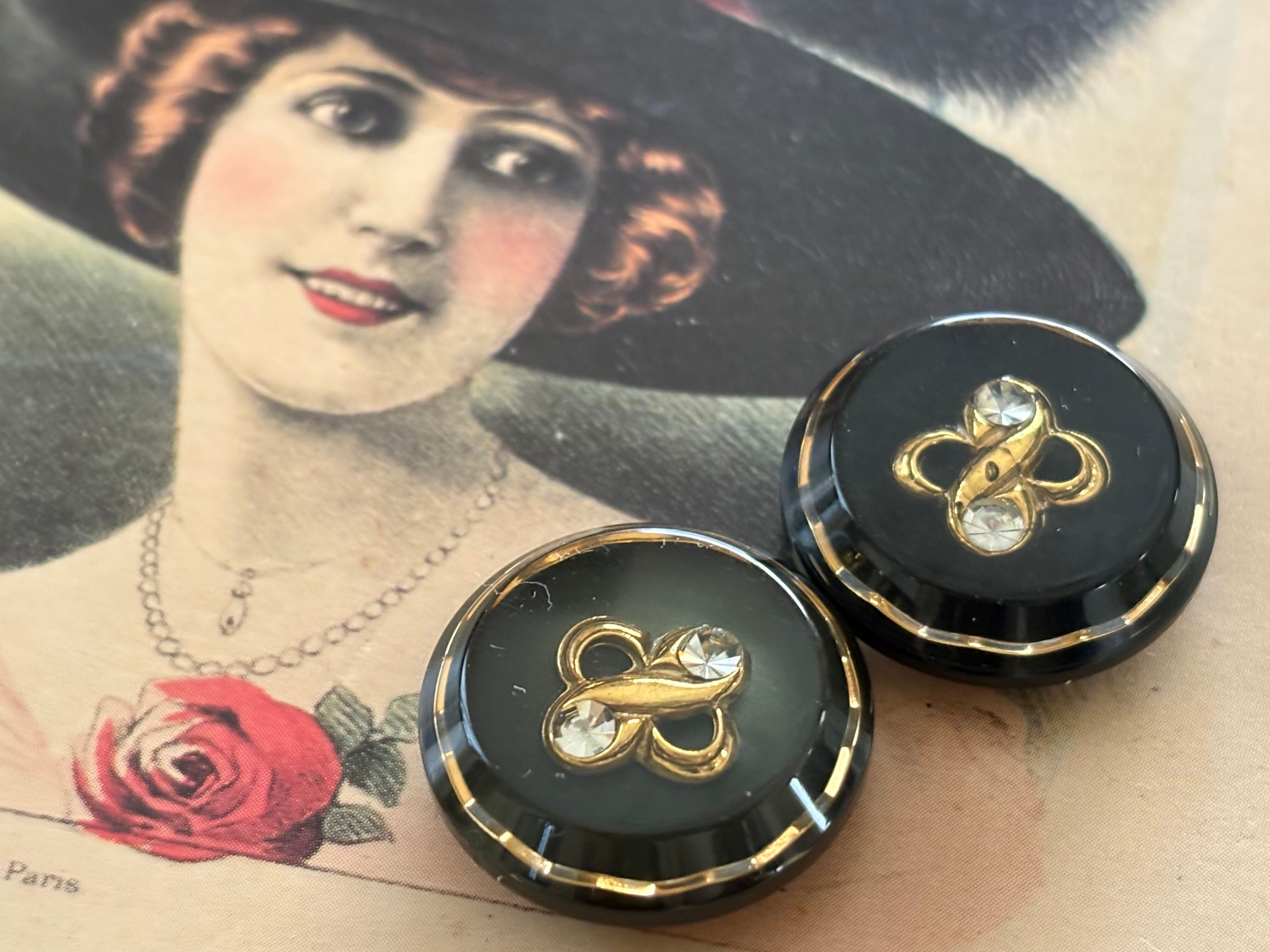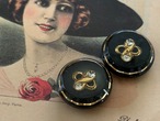 22mm Japanese ヴィンテージボタン ブラック/グレー×ゴールド ストーン 樹脂ボタン アクセサリーパーツ 装飾材
