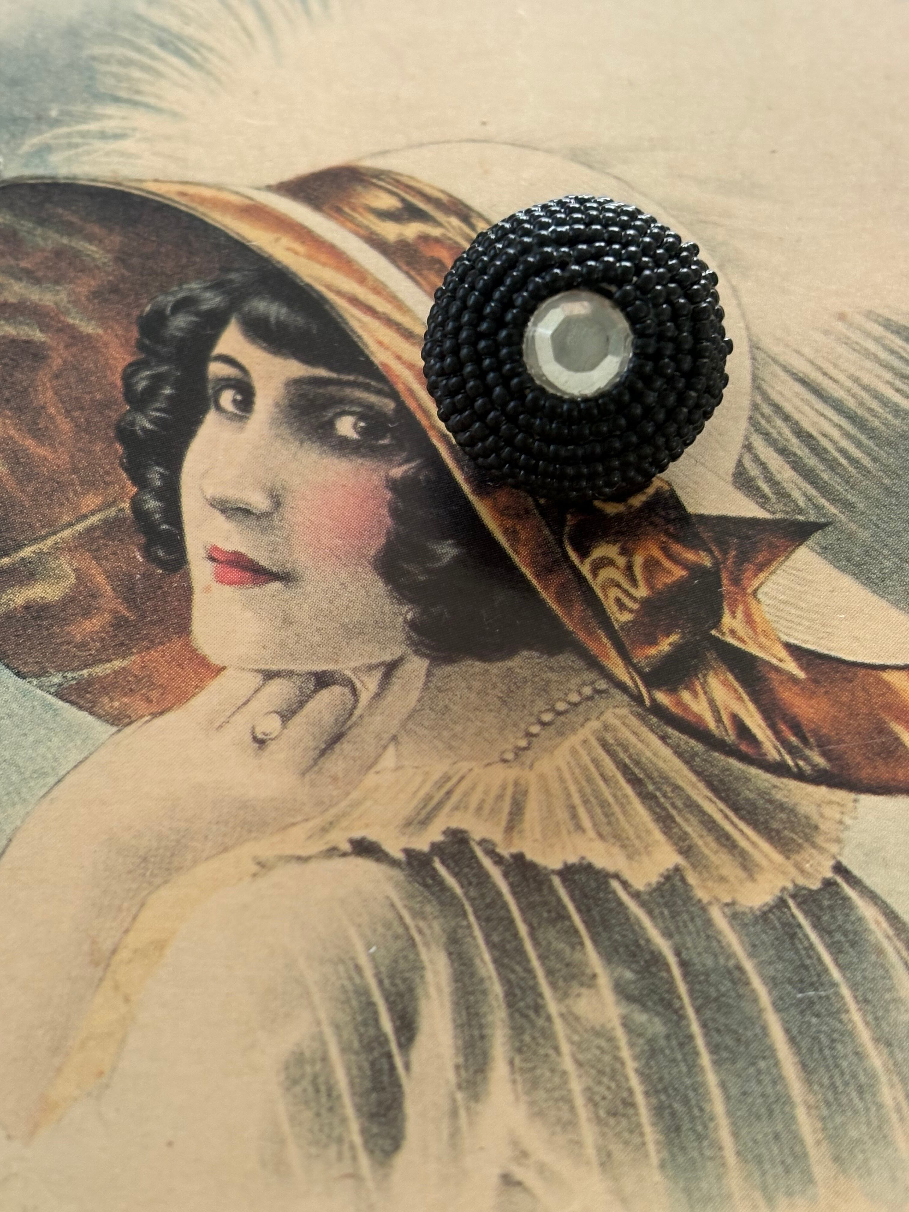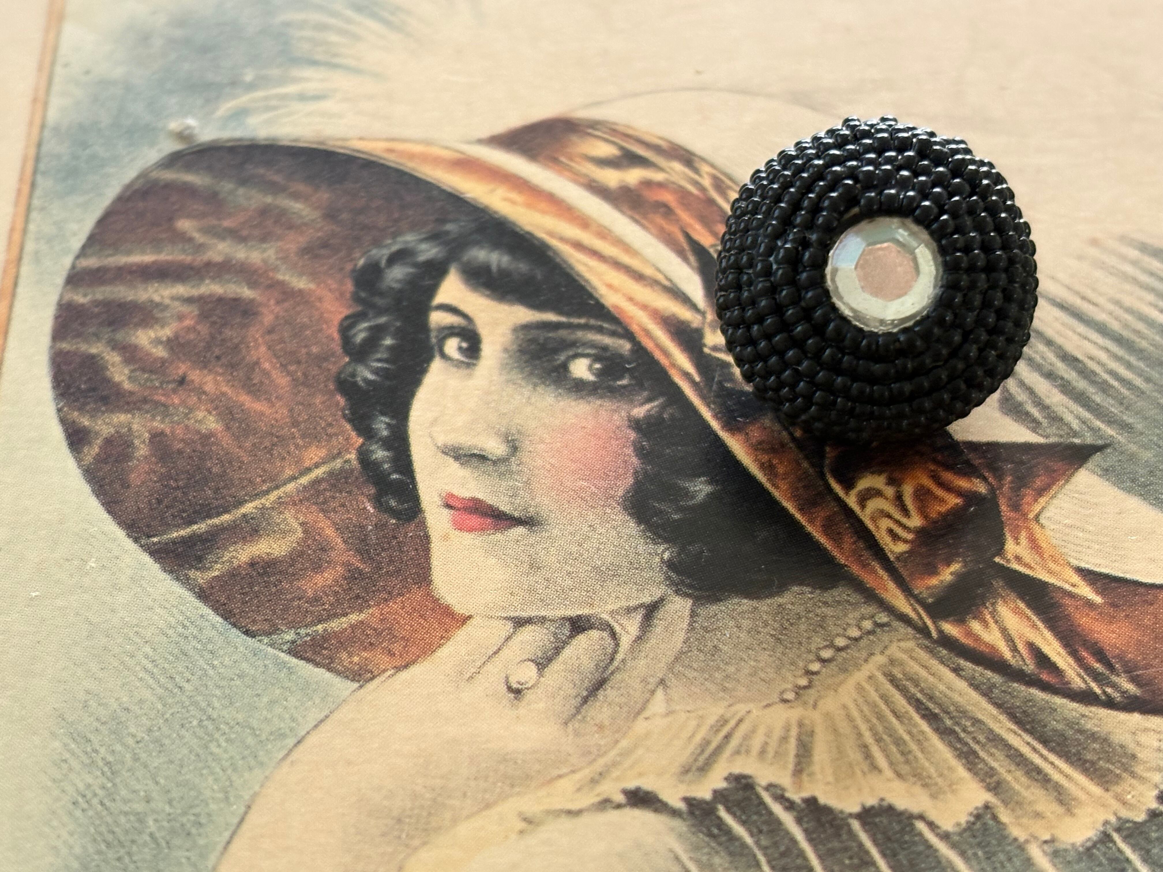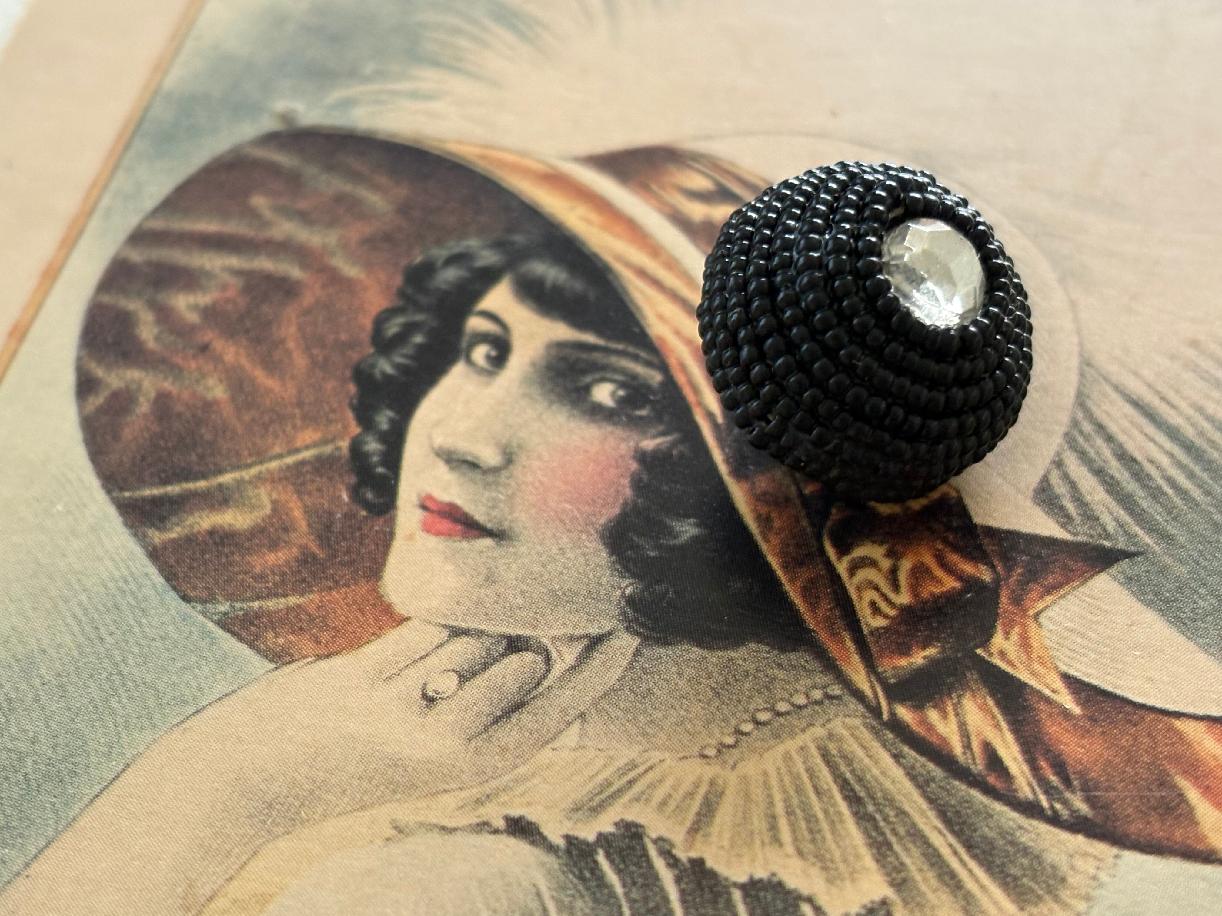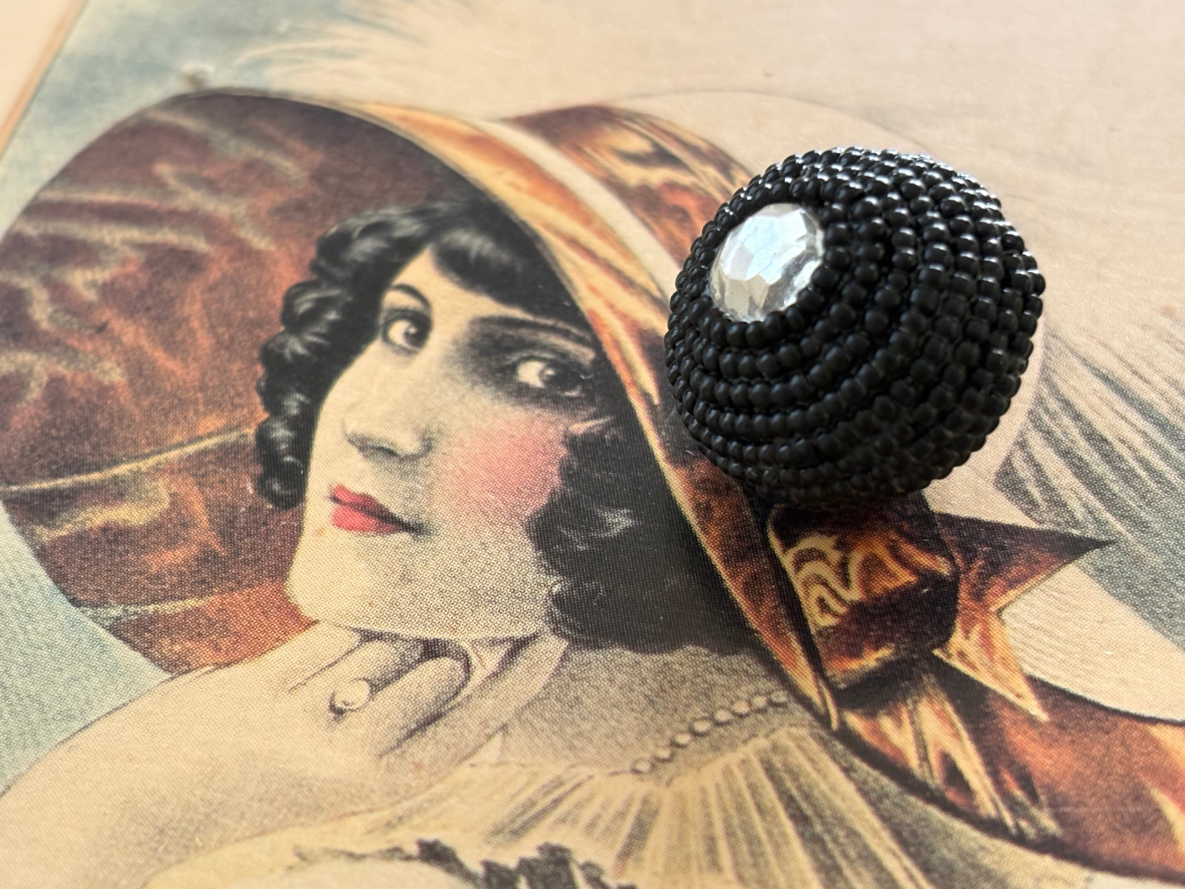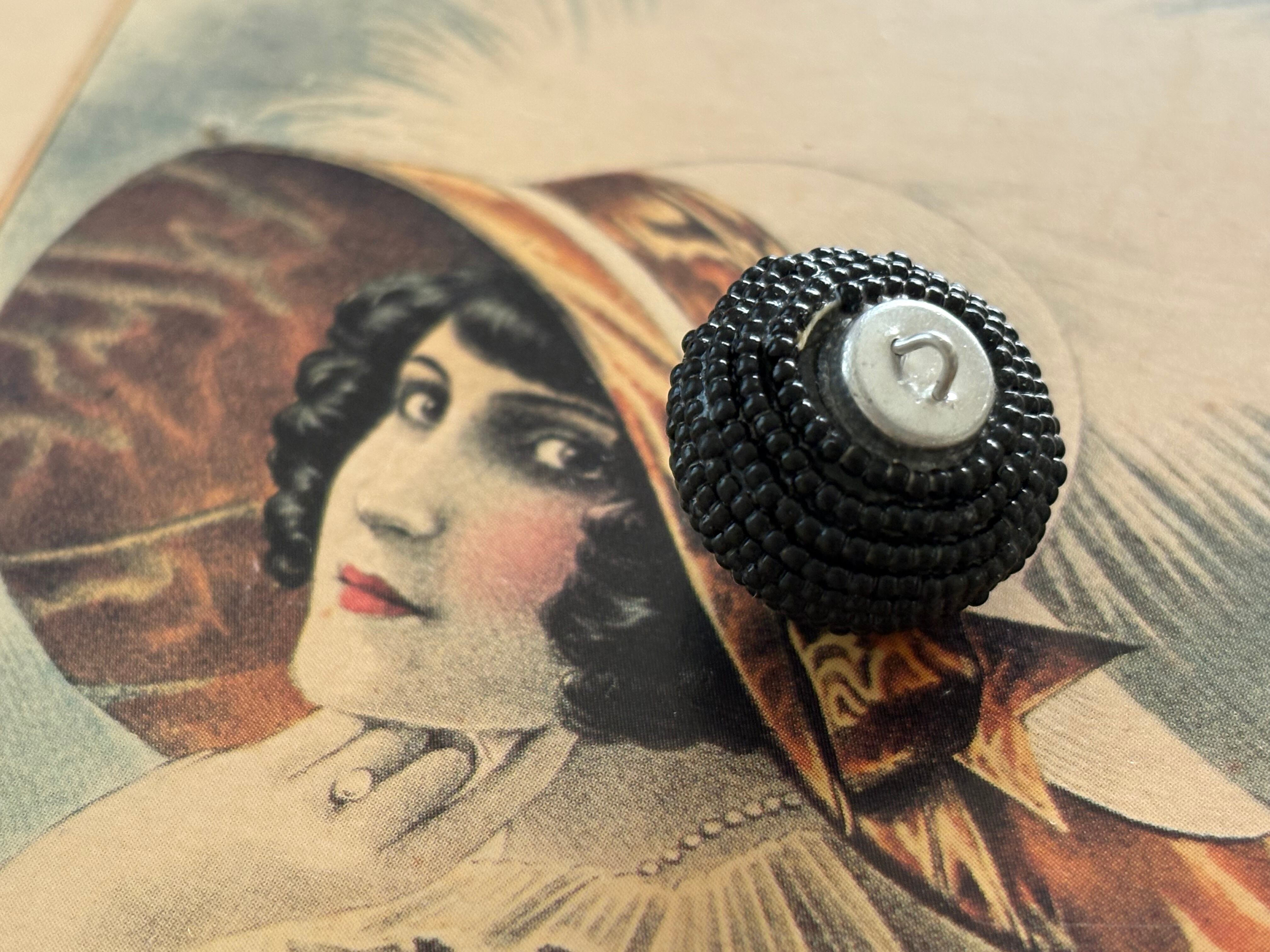 18mm Japanese ヴィンテージボタン ビーズ ブラック ドーム型 ビジュー アクセサリーパーツ 装飾材 カルトナージュ