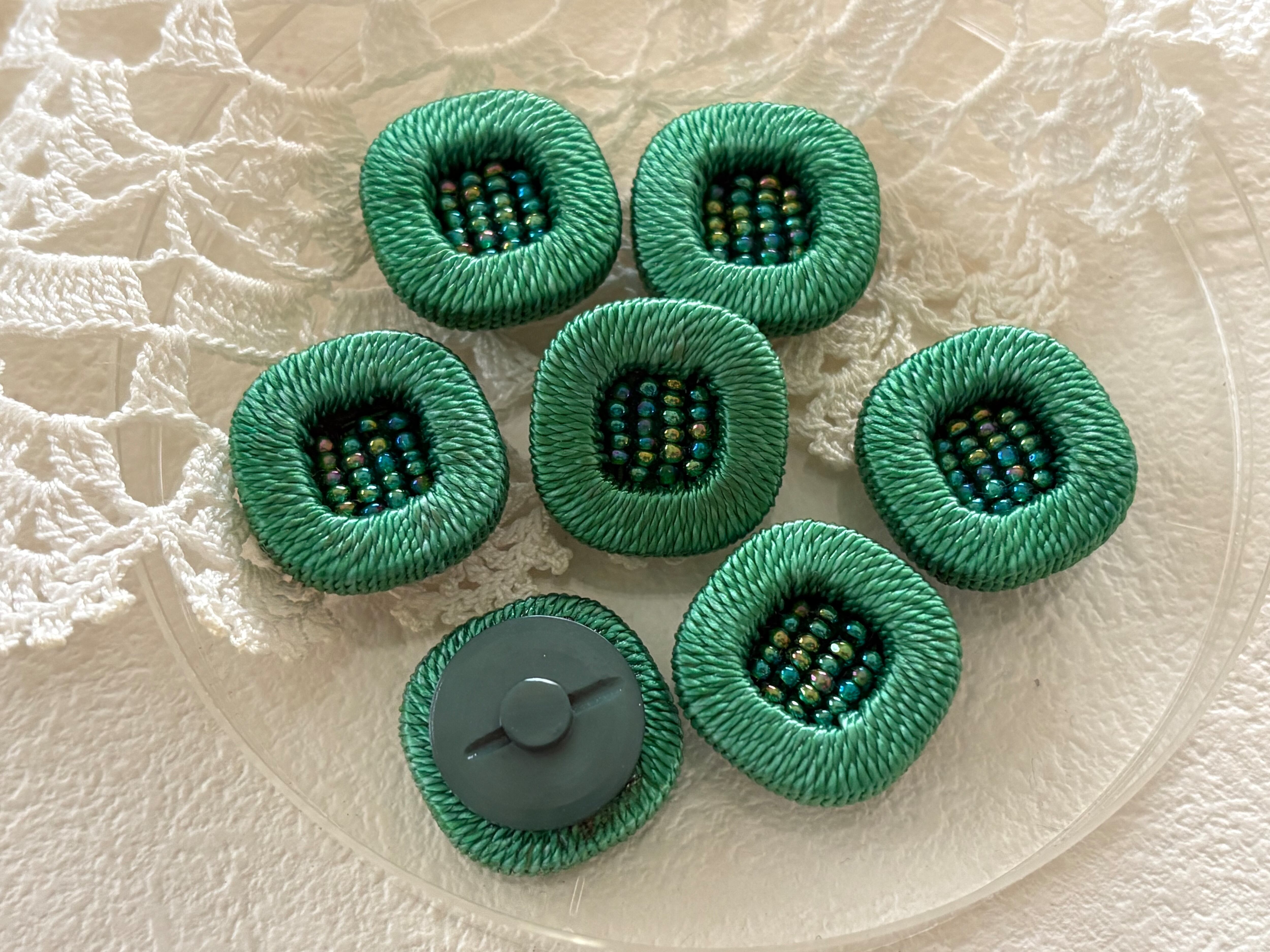 20mm Japanese ヴィンテージボタン コードボタン ビーズ グリーン デッドストック アクセサリーパーツ 装飾材 カルトナージュ