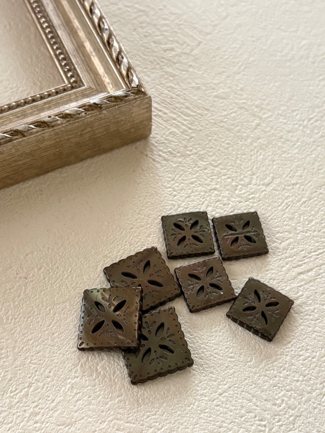 14mm 輸入デザインボタン シェルボタン スクウェア 透かし スカラップ アクセサリーパーツ デコレーション材