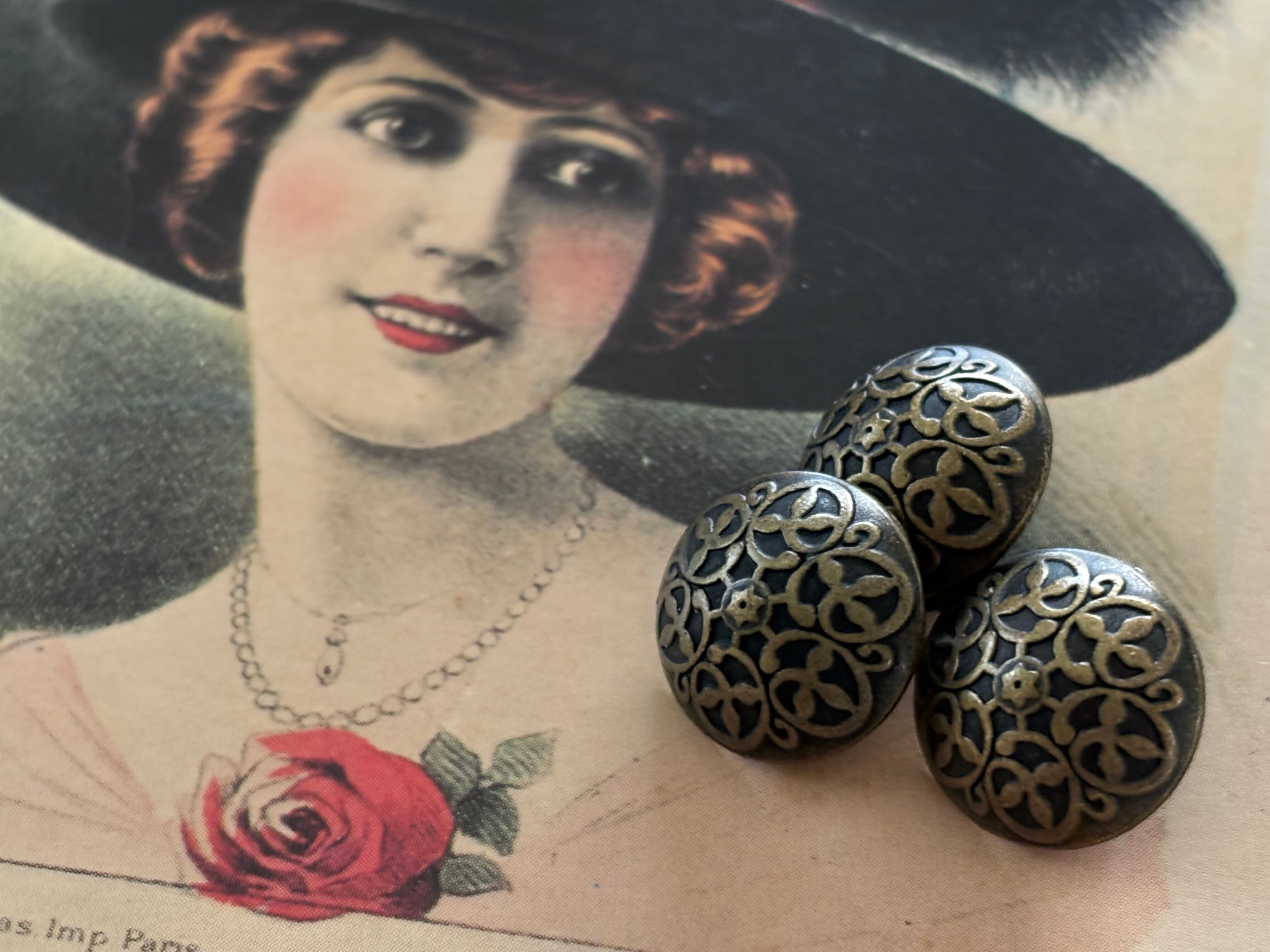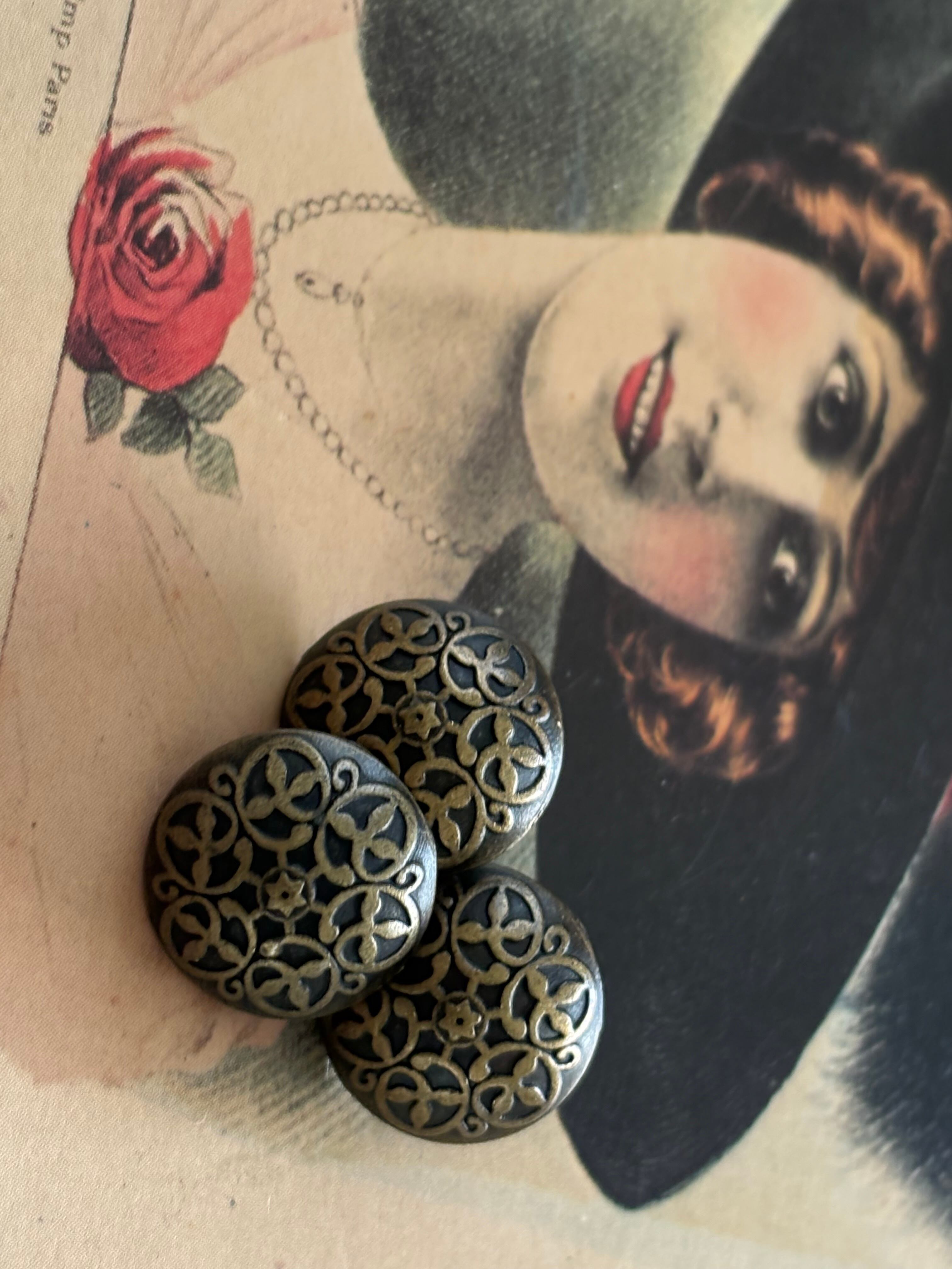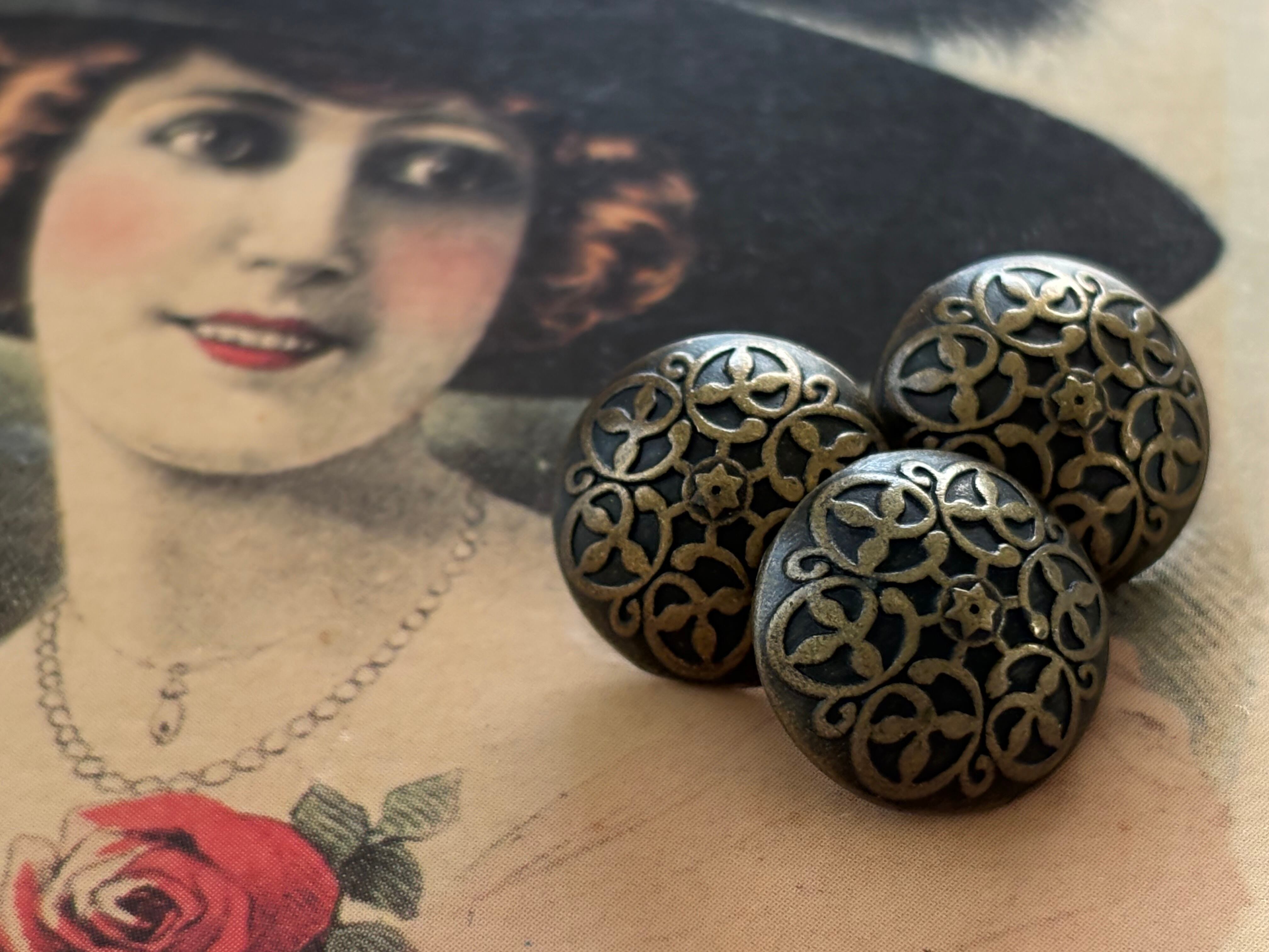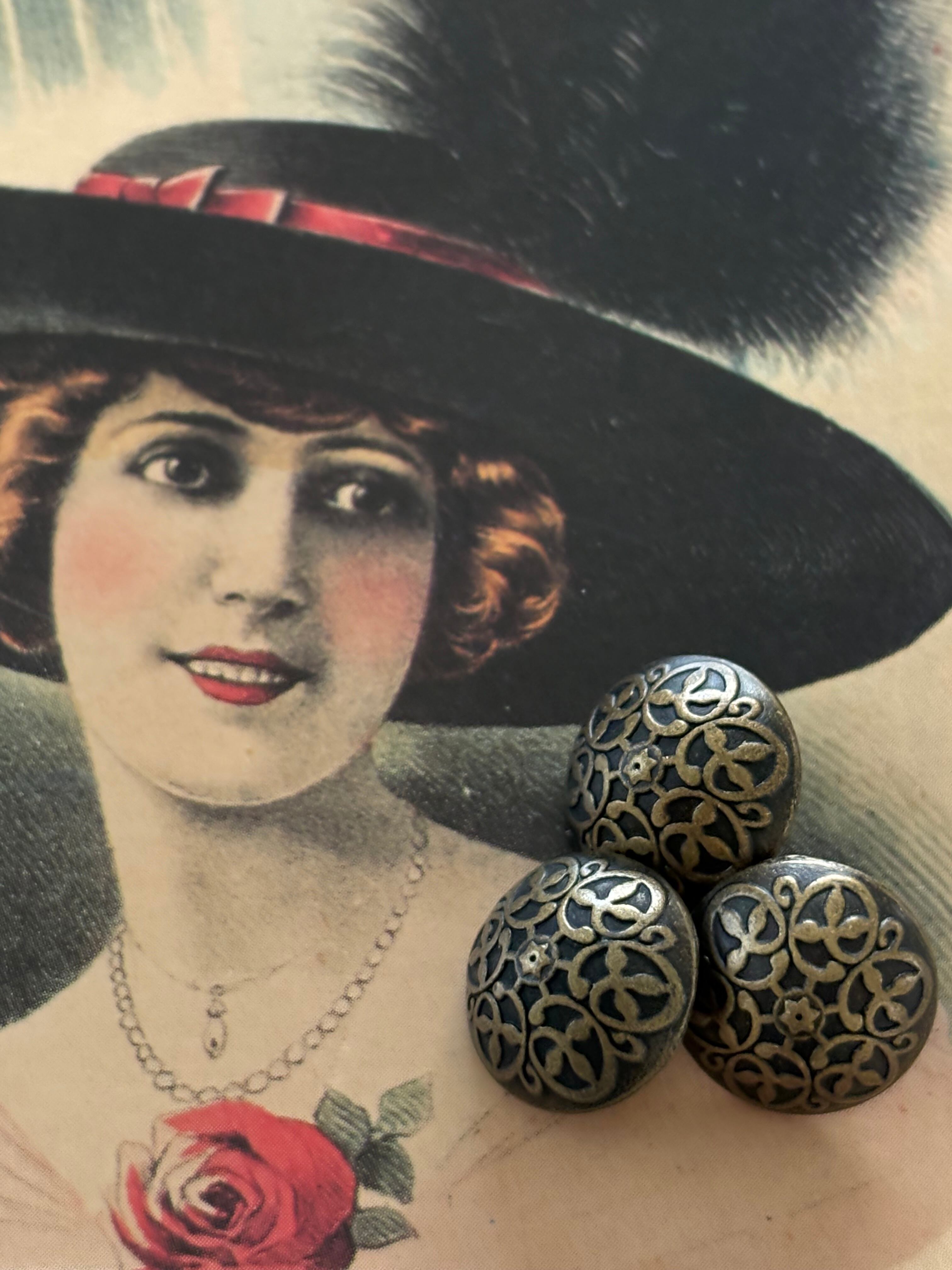 画像の様な表面にエンボスの柄が入ったメタル製ボタンになります。