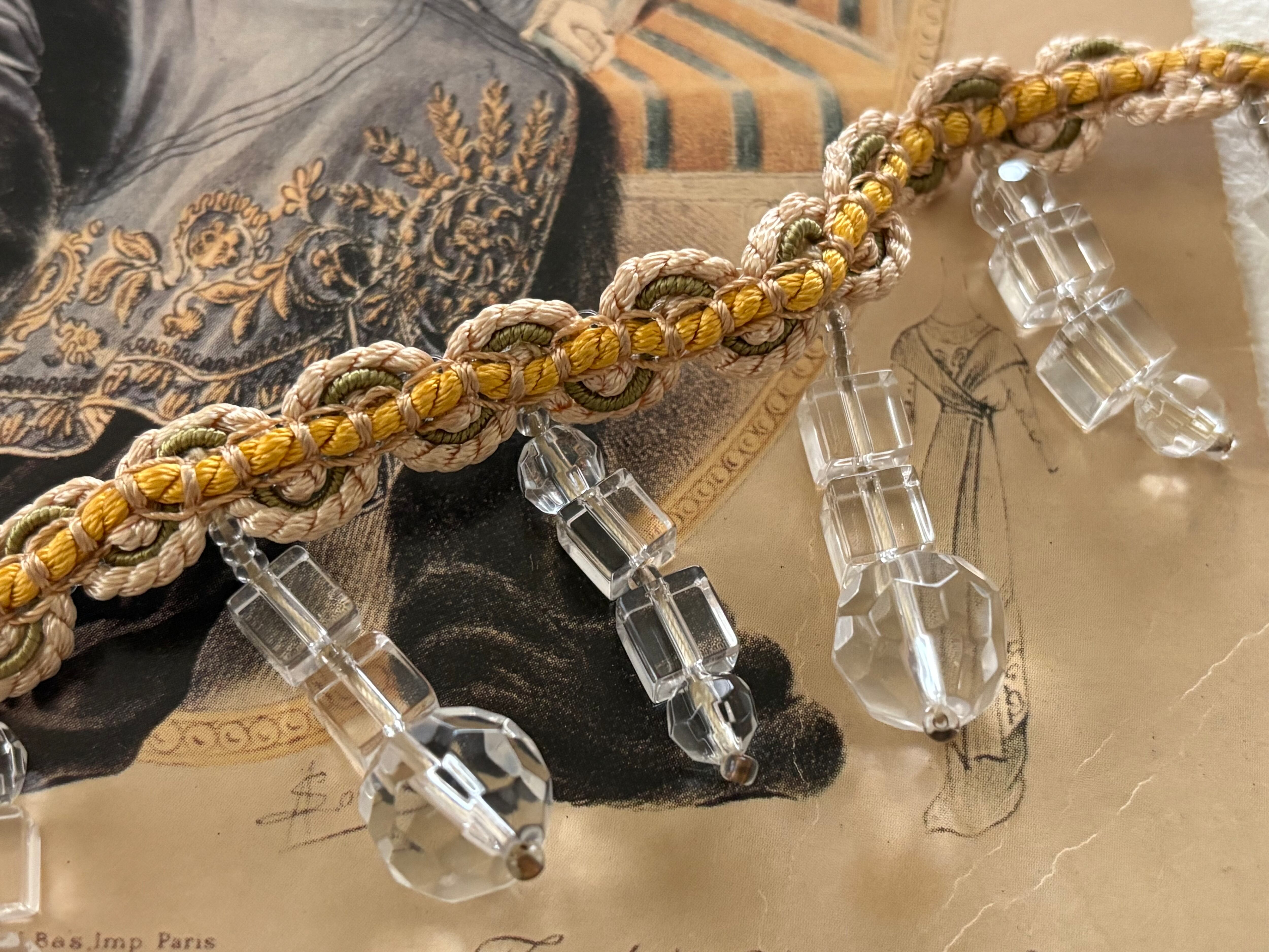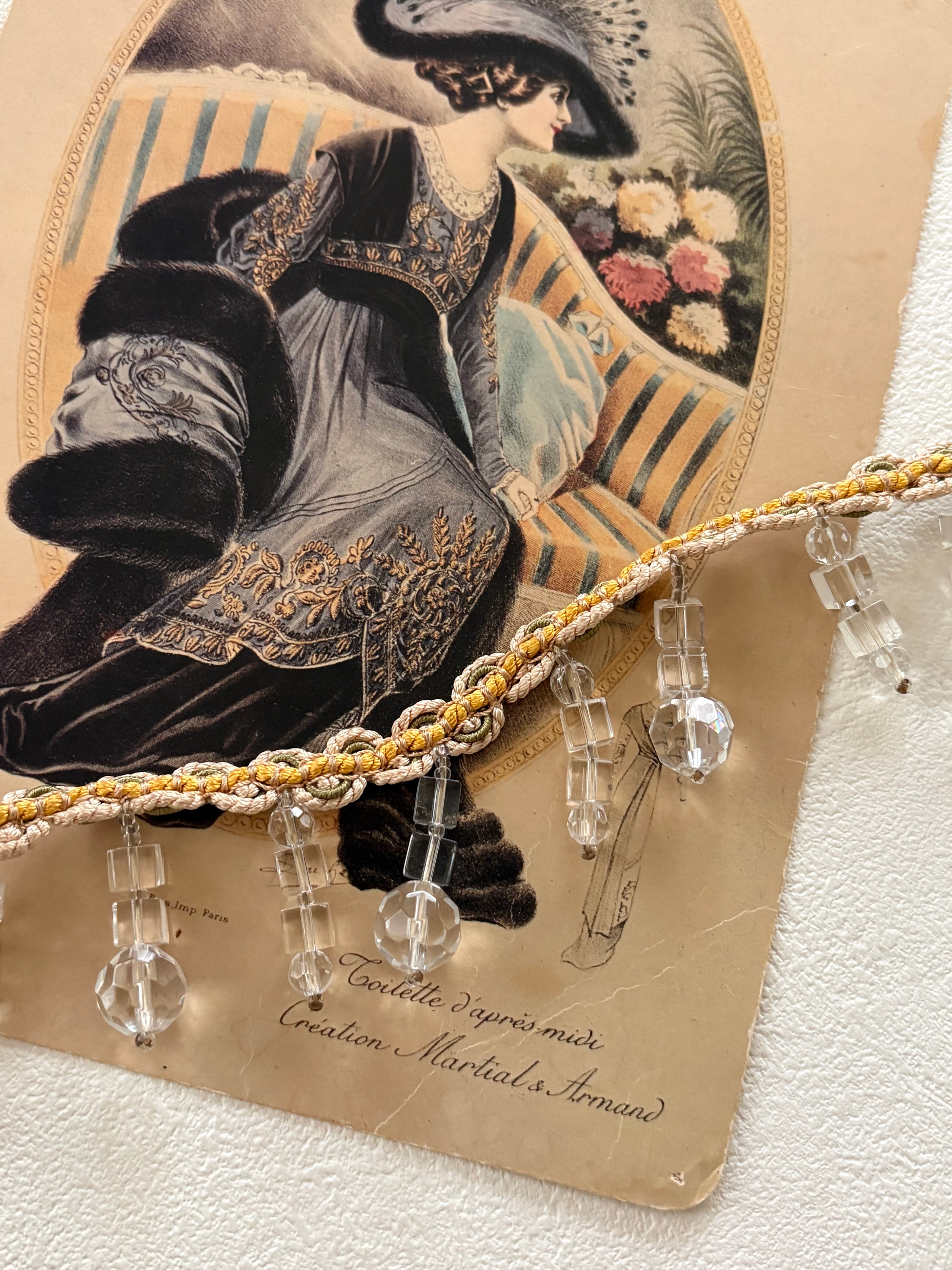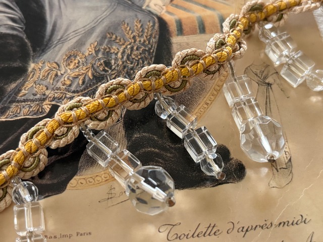 輸入デザインタッセルブレード 50cm/カット クリアビーズ カルトナージュ スツール デコレーション材