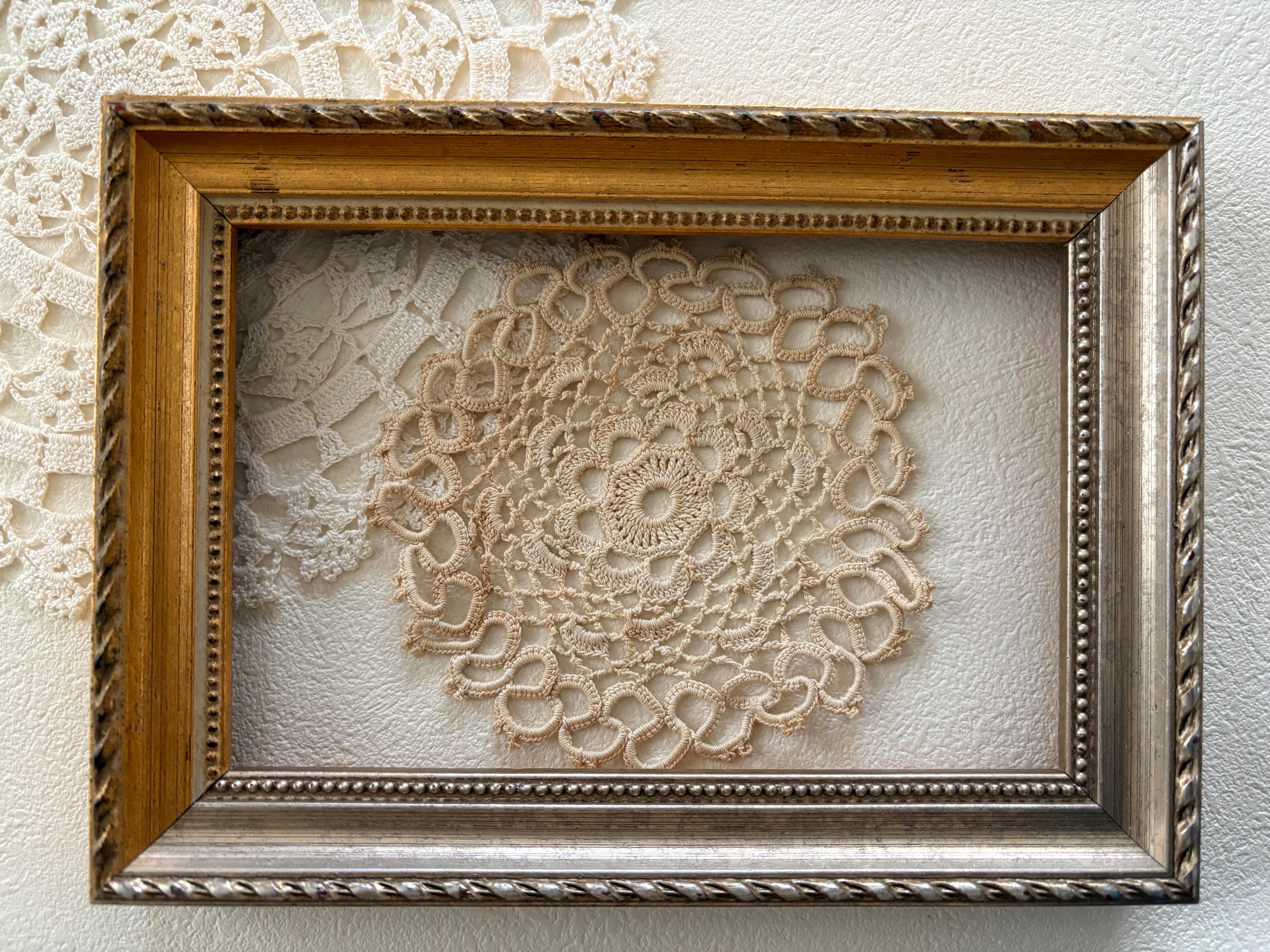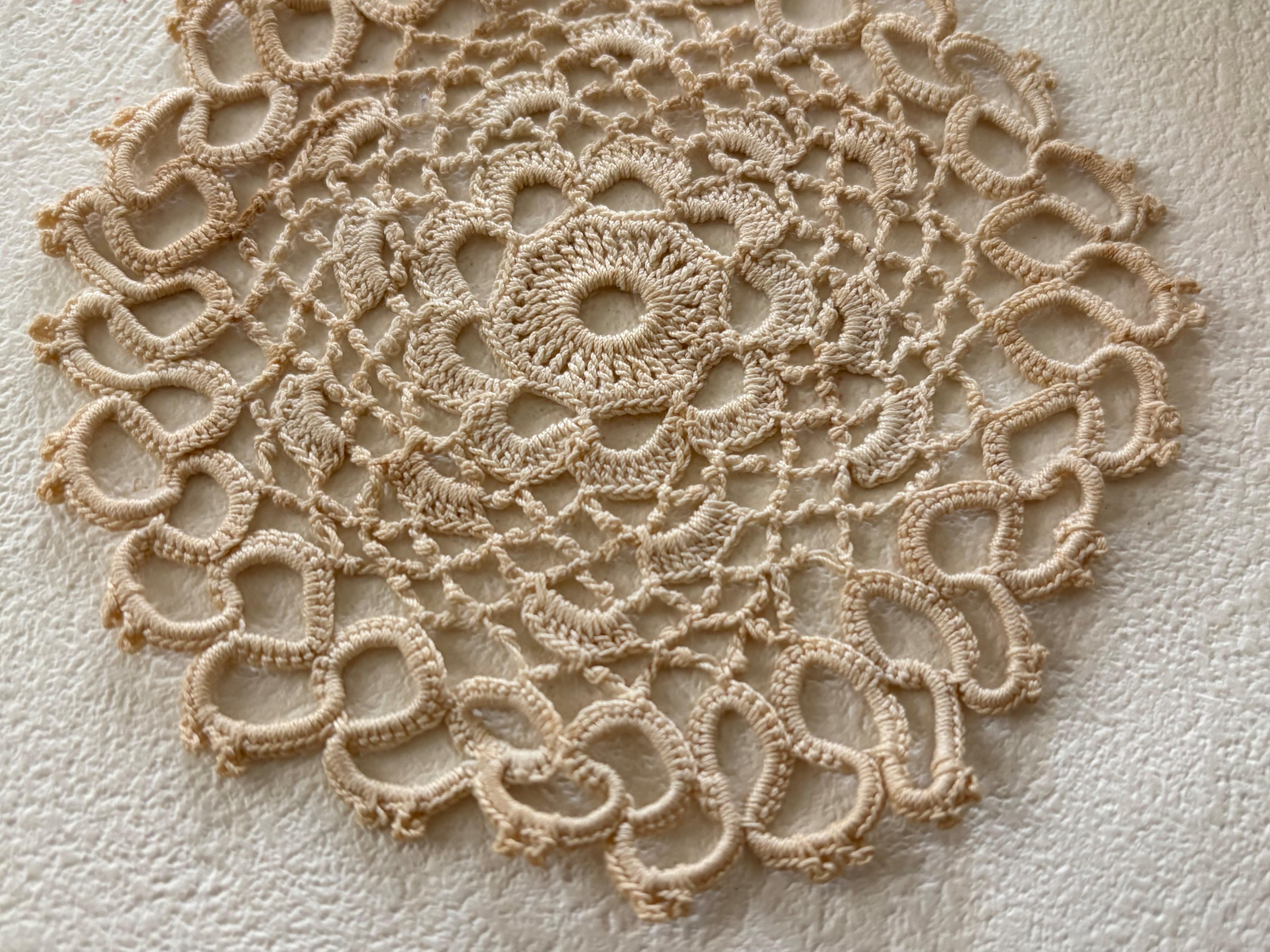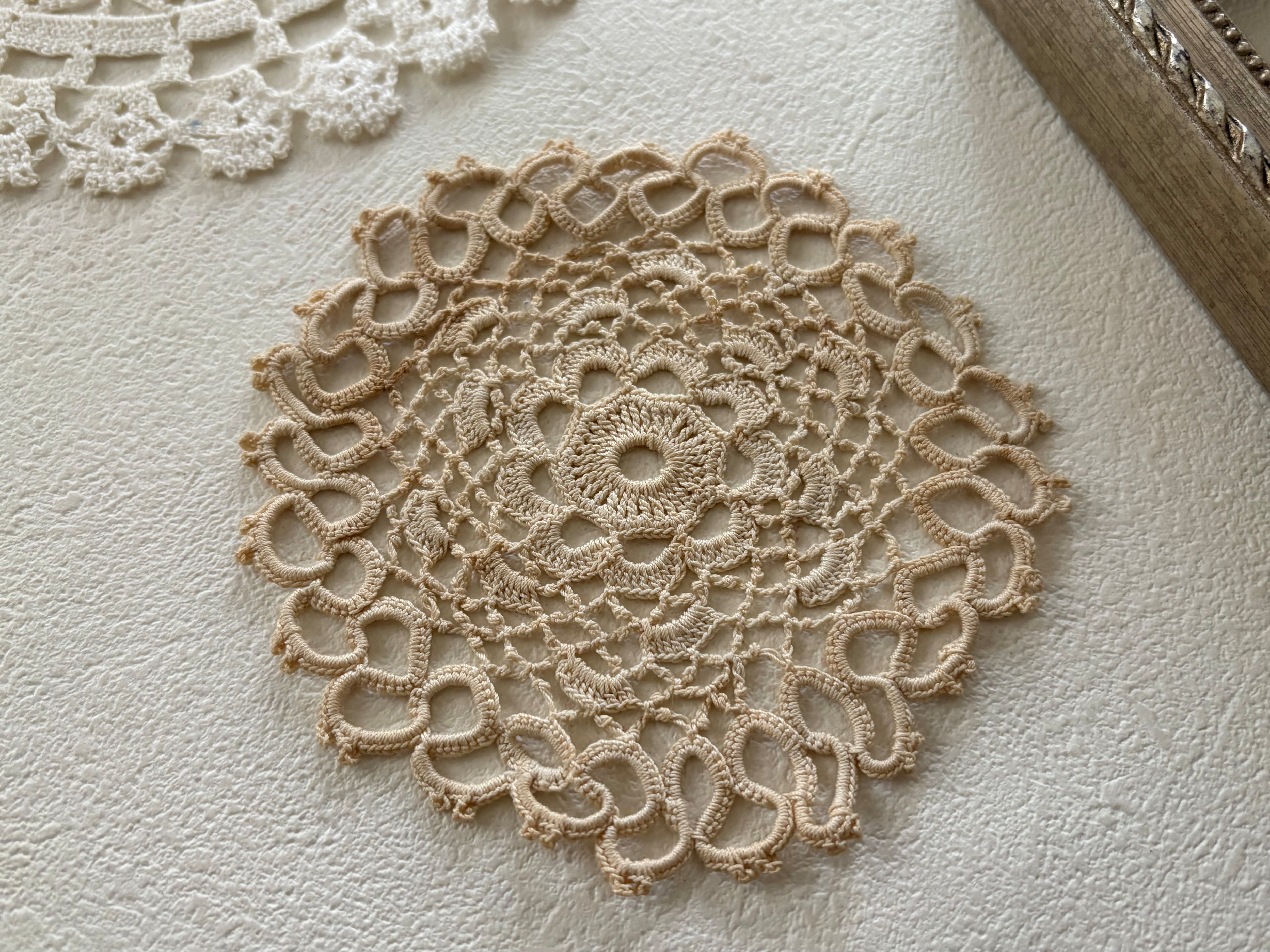 フランス Vintage ヴィンテージ ドイリー 約10cm クロッシェ ベージュ 敷物 インテリア小物 額装 ハンドメイドパーツ