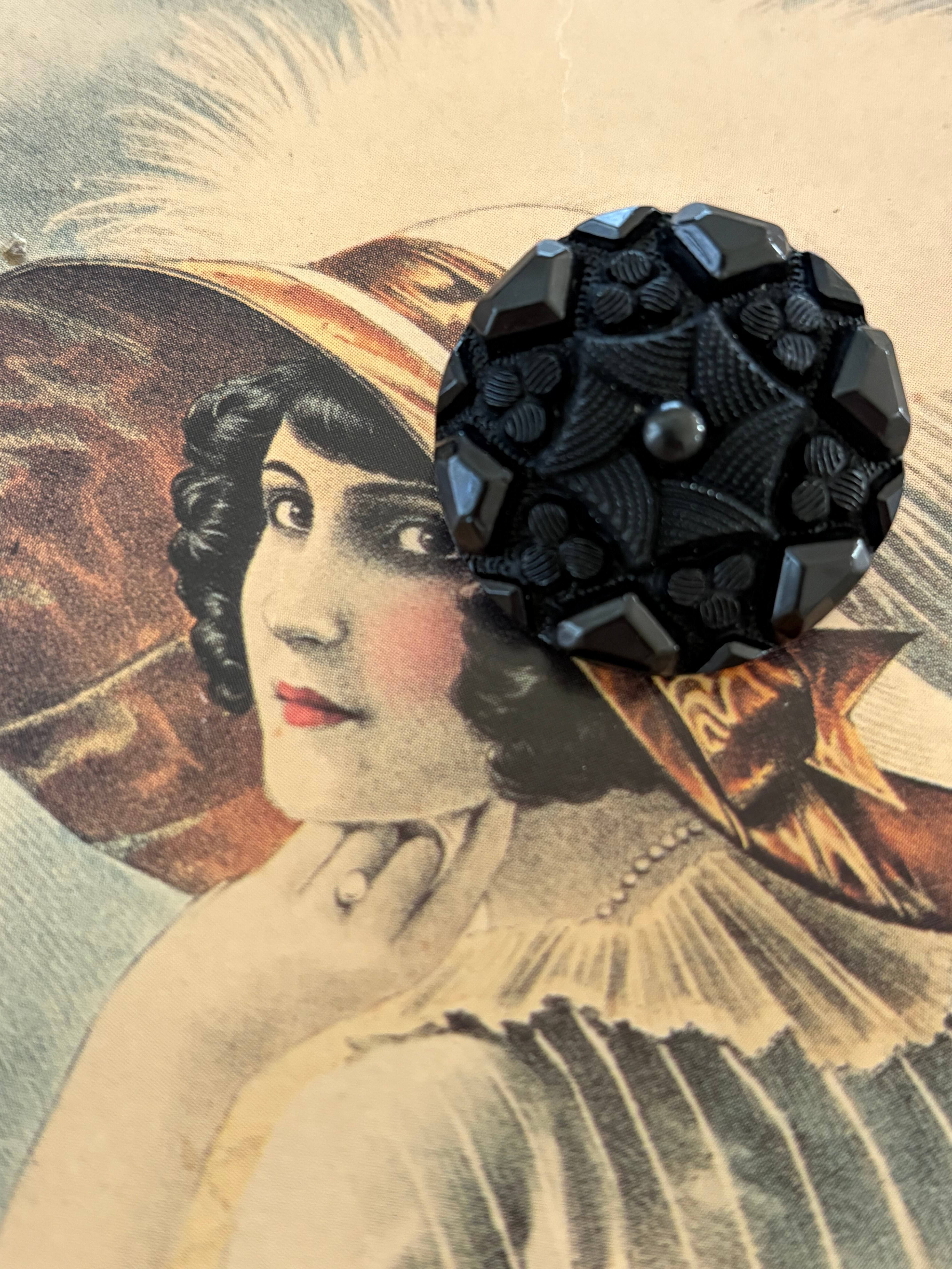 27mm ヴィンテージボタン プラスチックボタン ブラック アクセサリーパーツ 装飾材 カルトナージュ