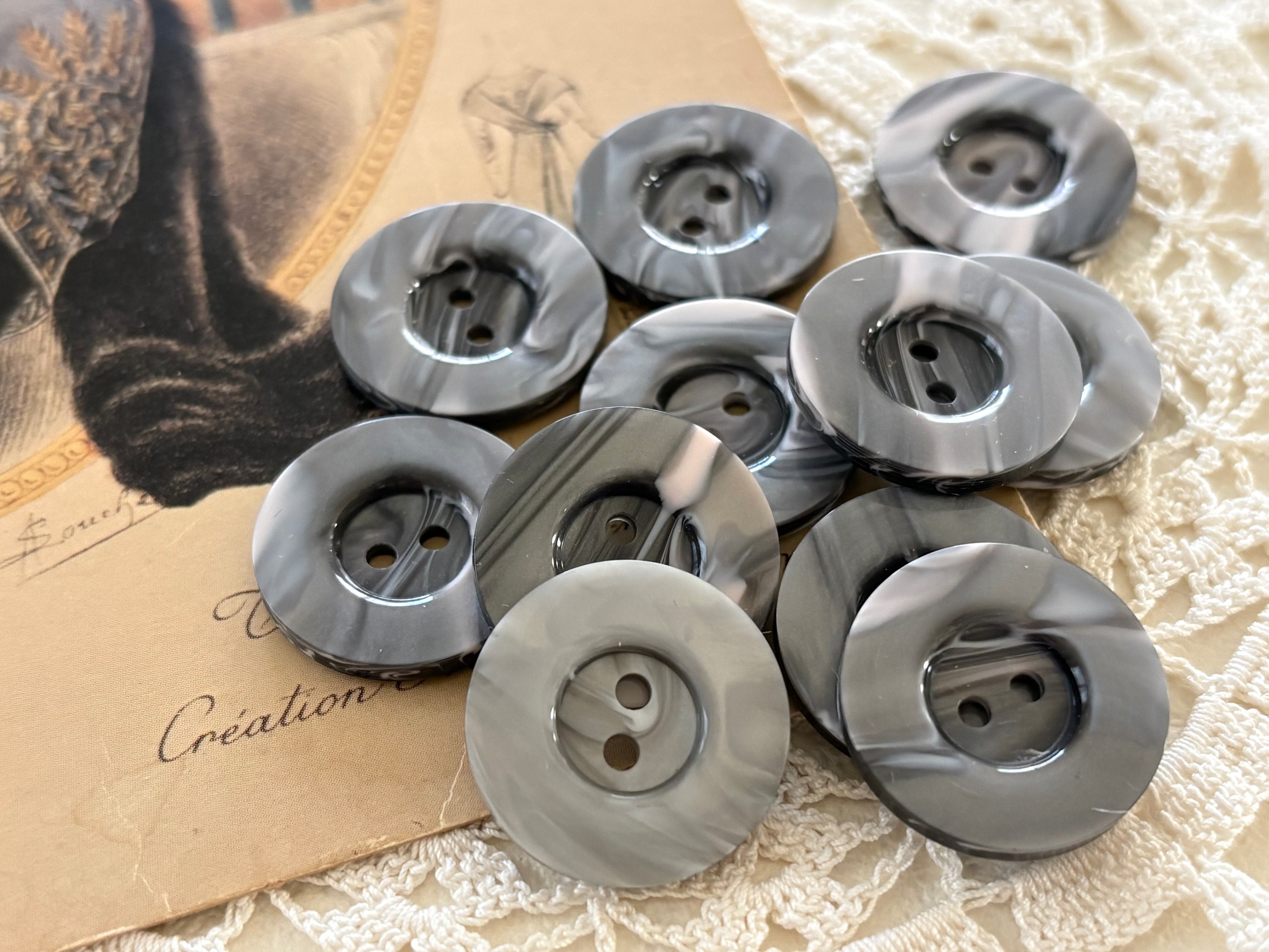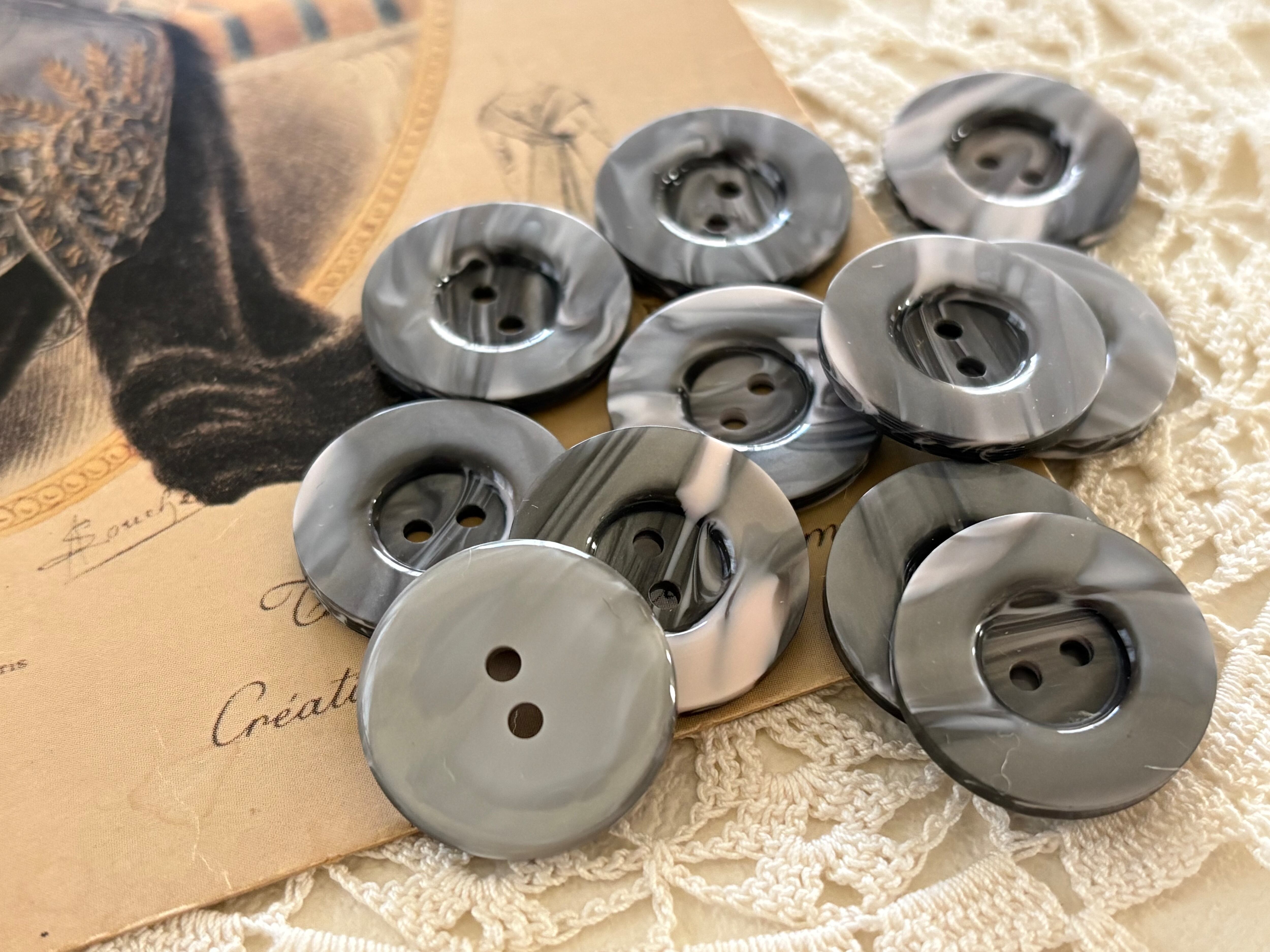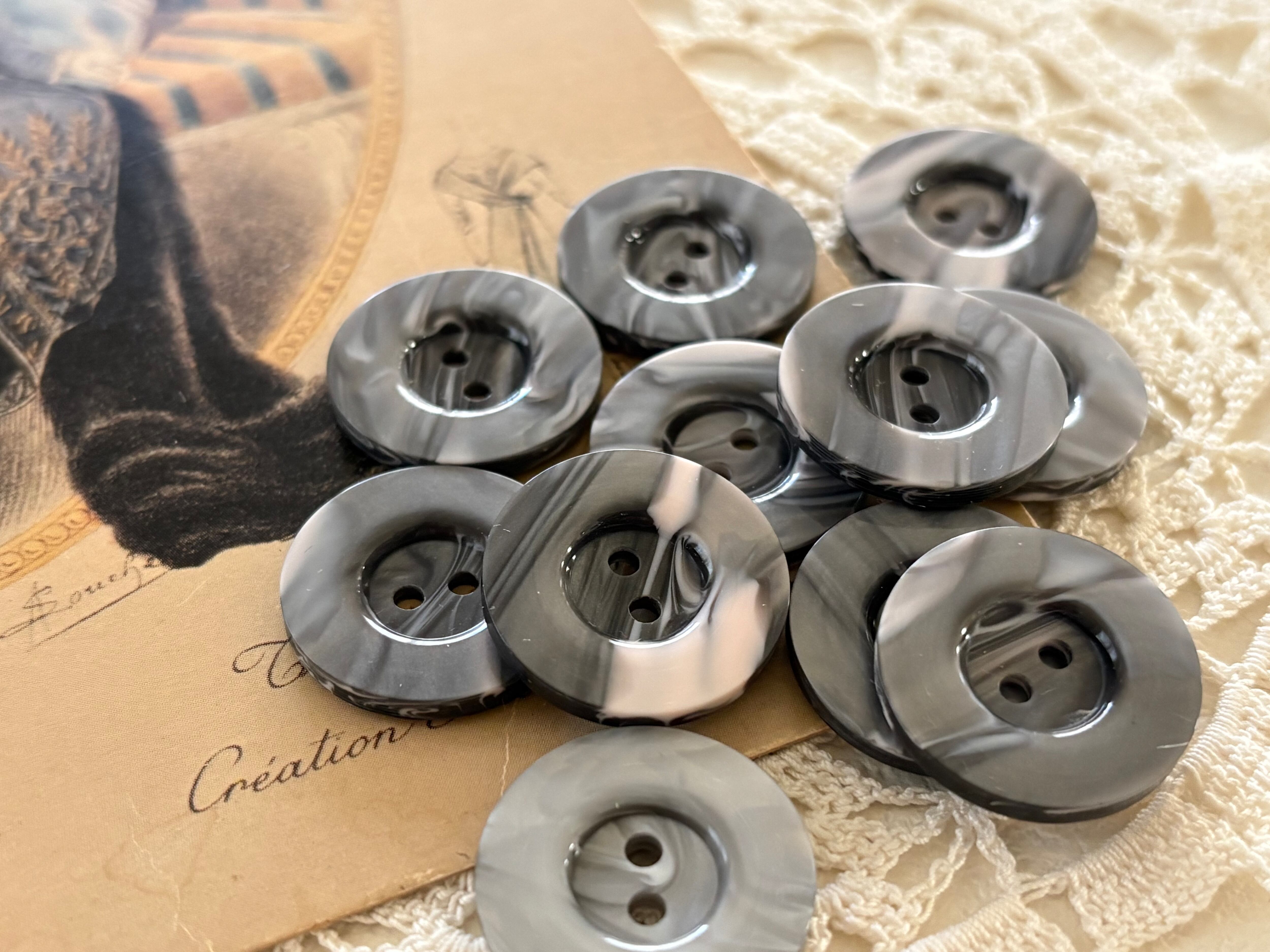 21mm 2個セット Japanese ヴィンテージボタン マーブル柄 グレー プラスチックボタン アクセサリーパーツ 装飾材 カルトナージュ