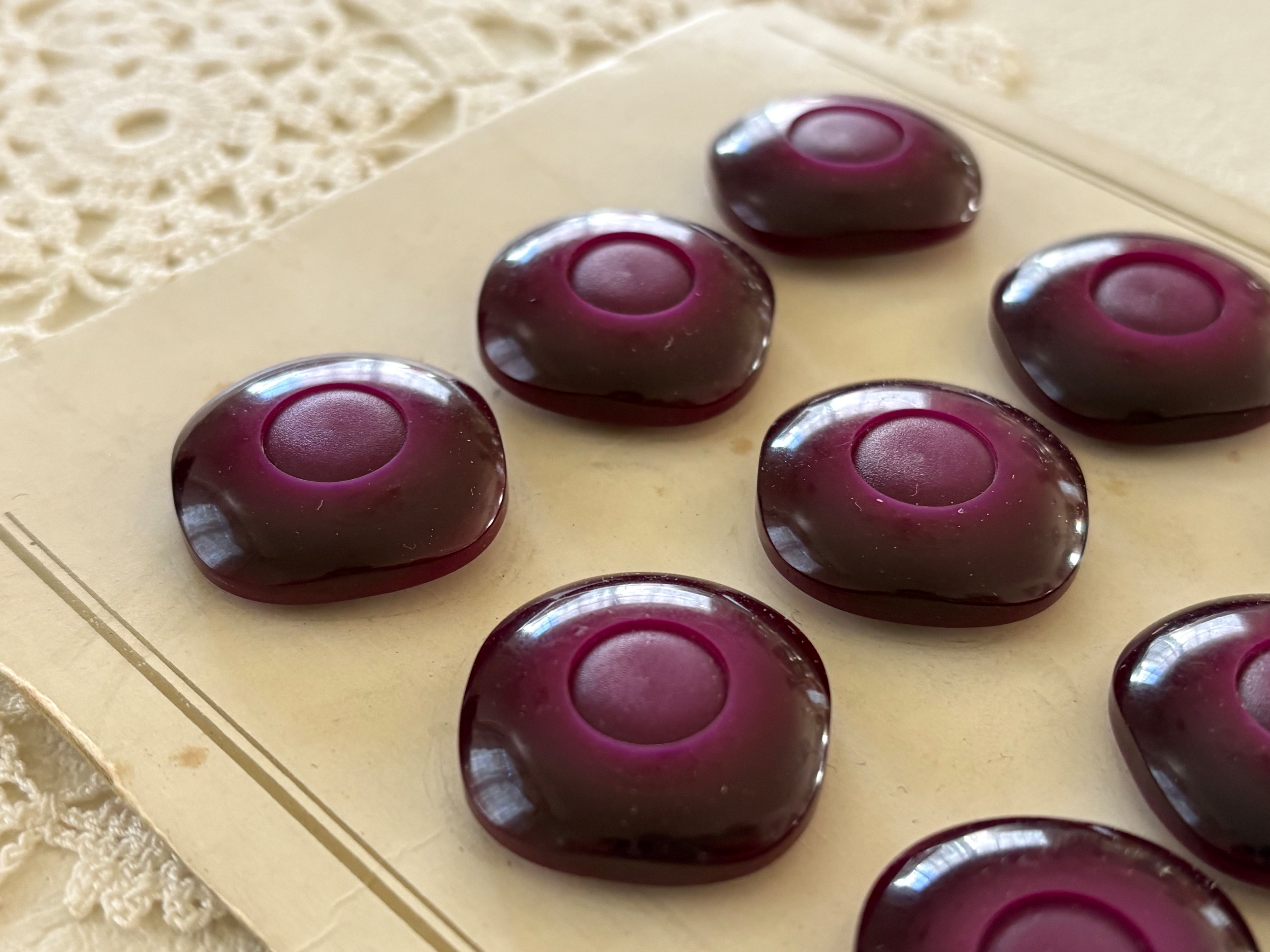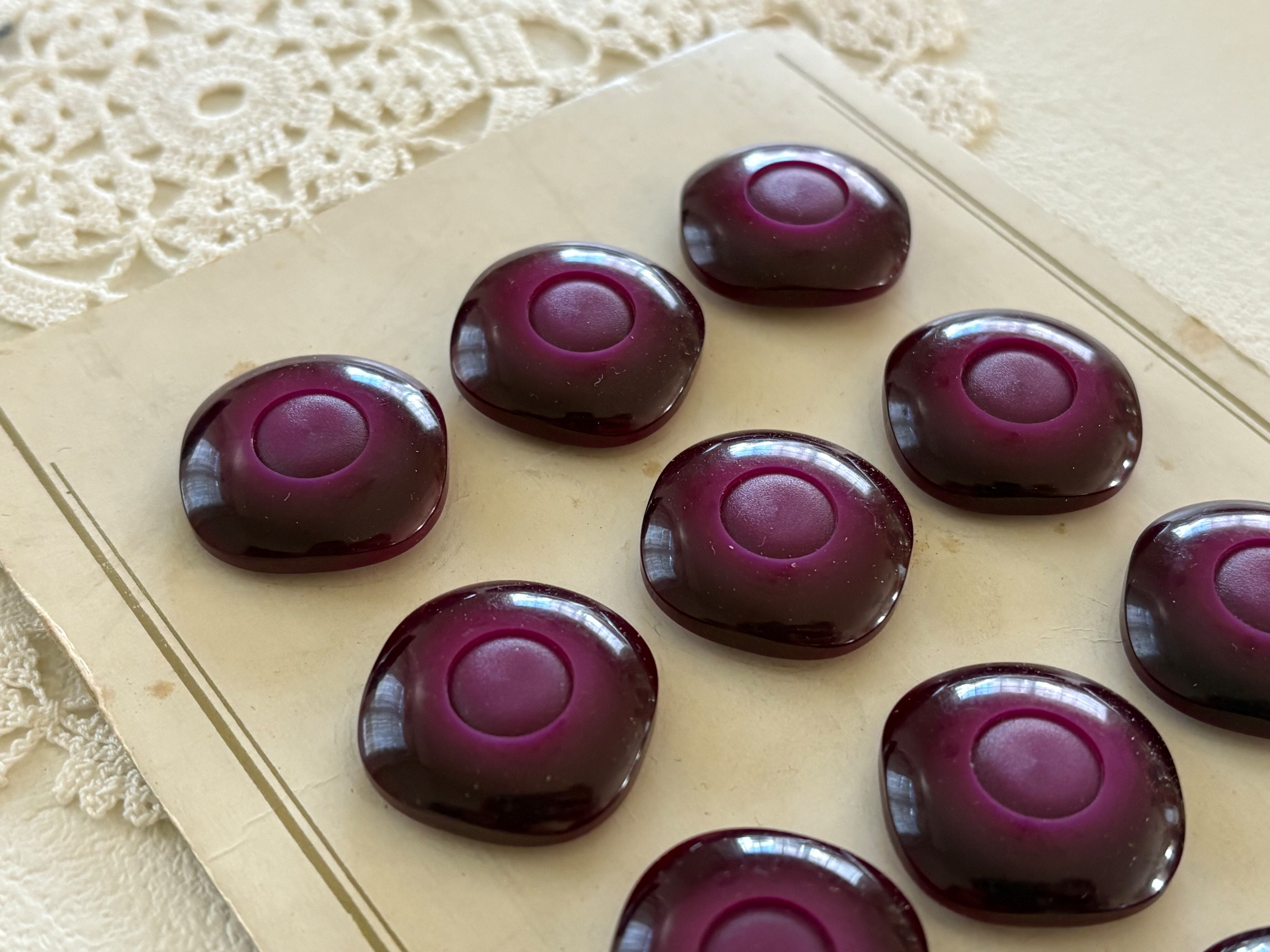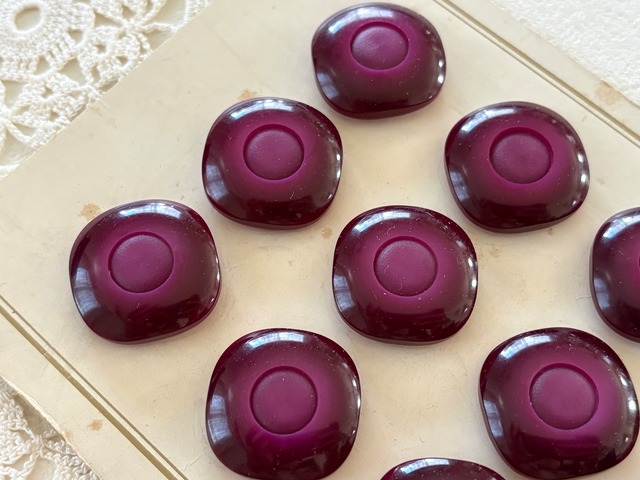 24mm フランス Vintage ヴィンテージボタン 赤紫 1970年代 プラスチック アクセサリーパーツ デコレーション材