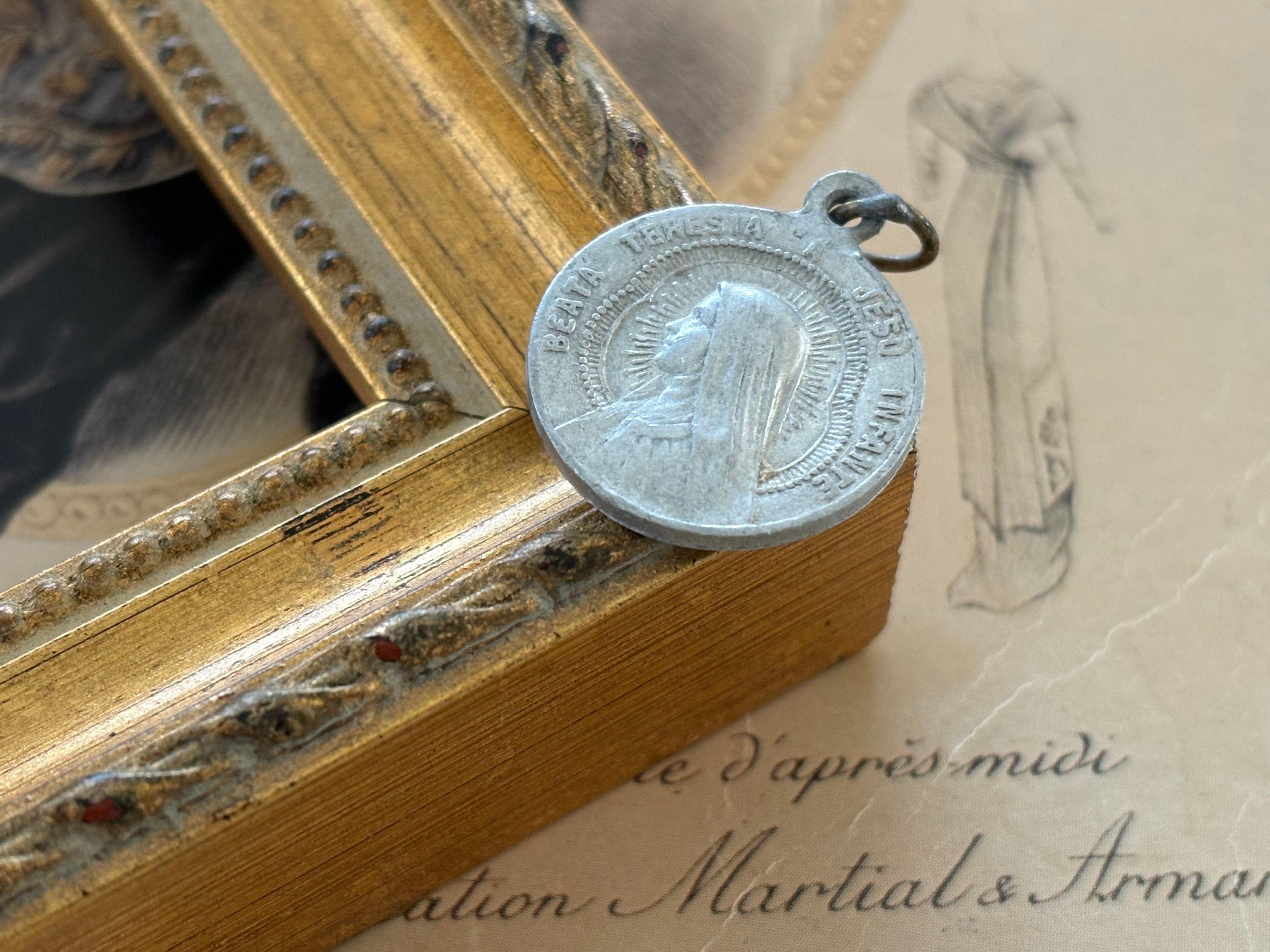 フランスアンティーク メダイ 幼きイエス 聖テレーズ アルミ チャーム 聖品 ペンダントトップ コレクション インテリア小物 撮影小物