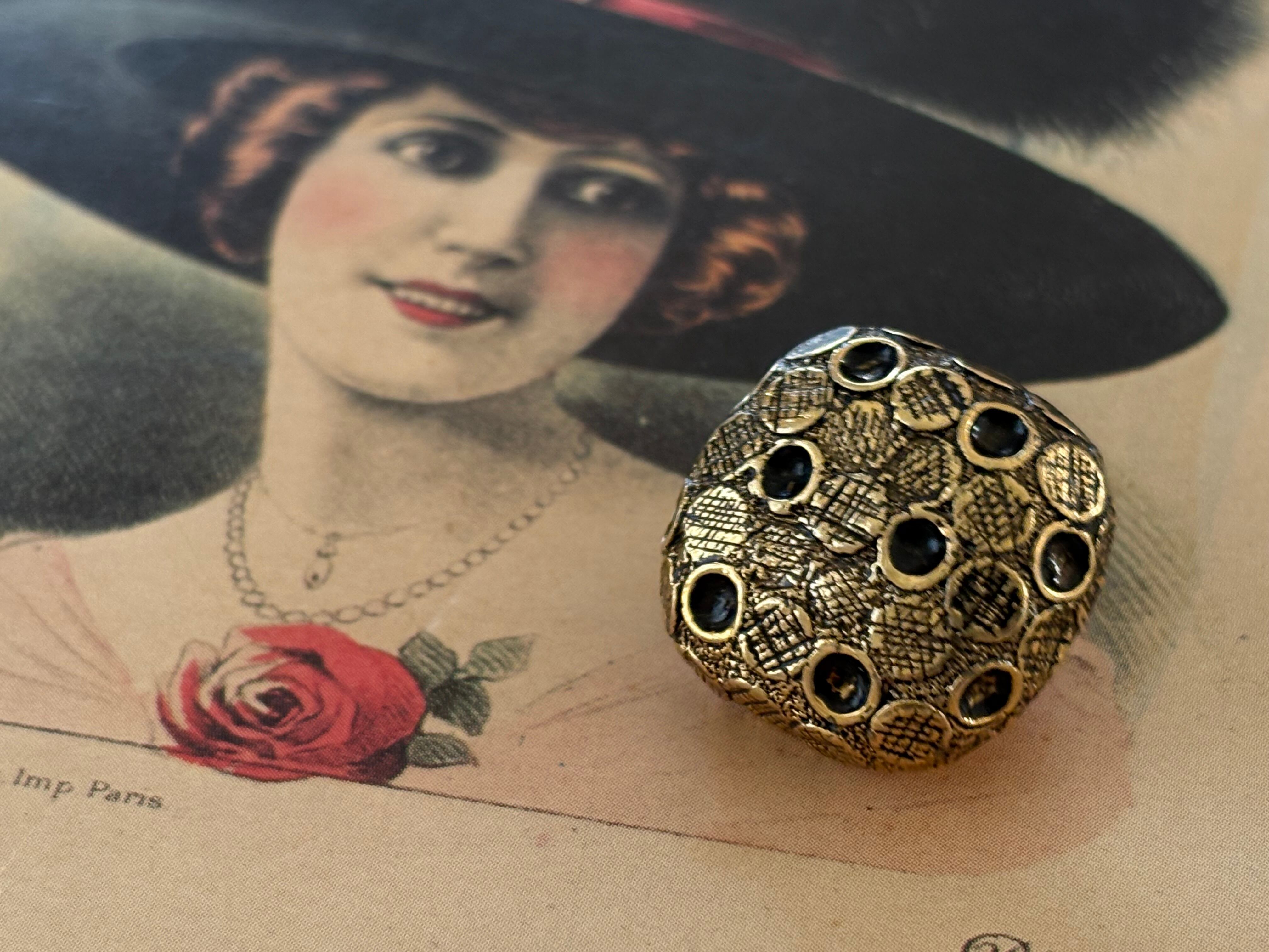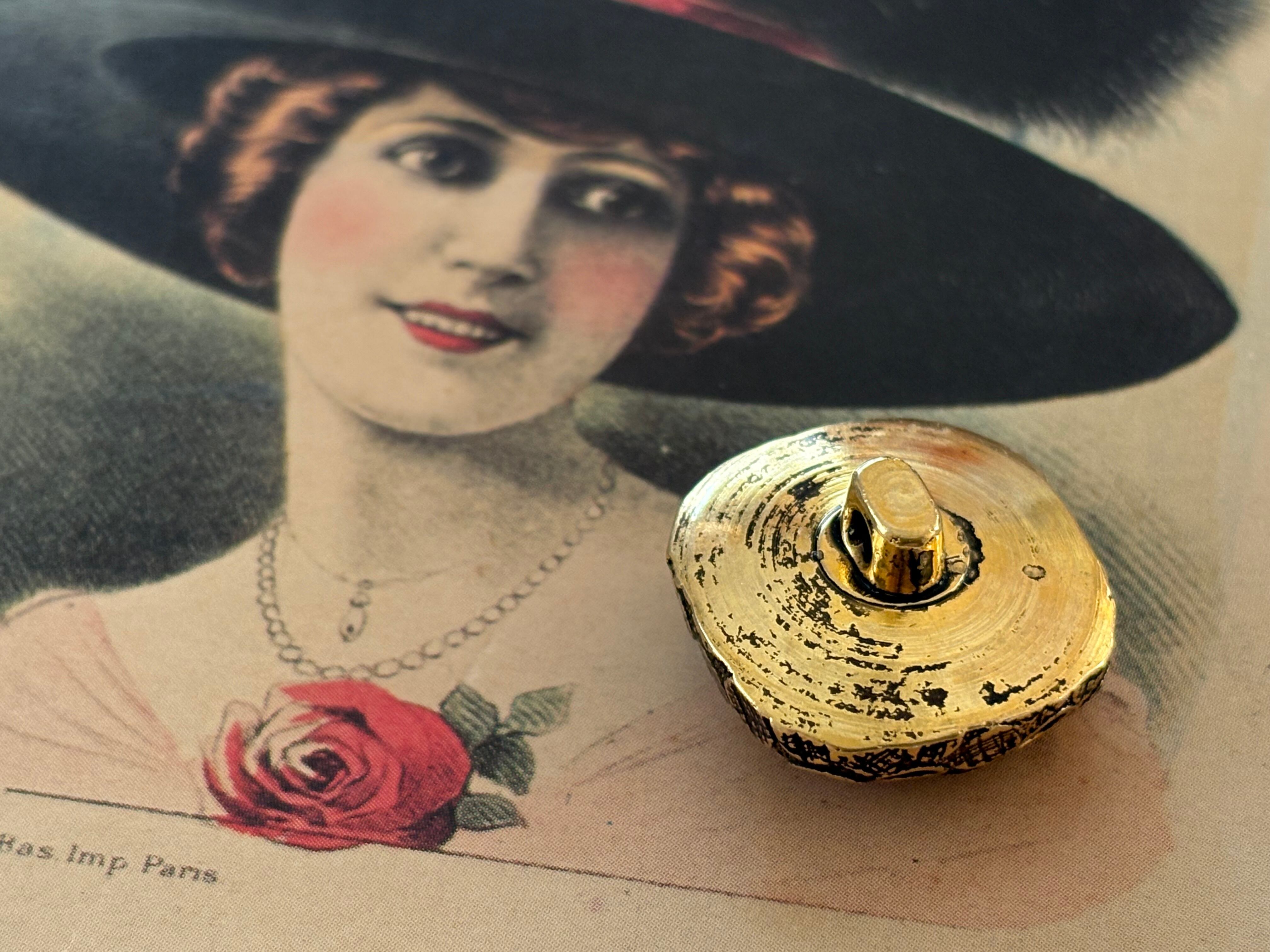 アンティークゴールドカラーのシックでクラシカルな味わい深いレトロボタンです。