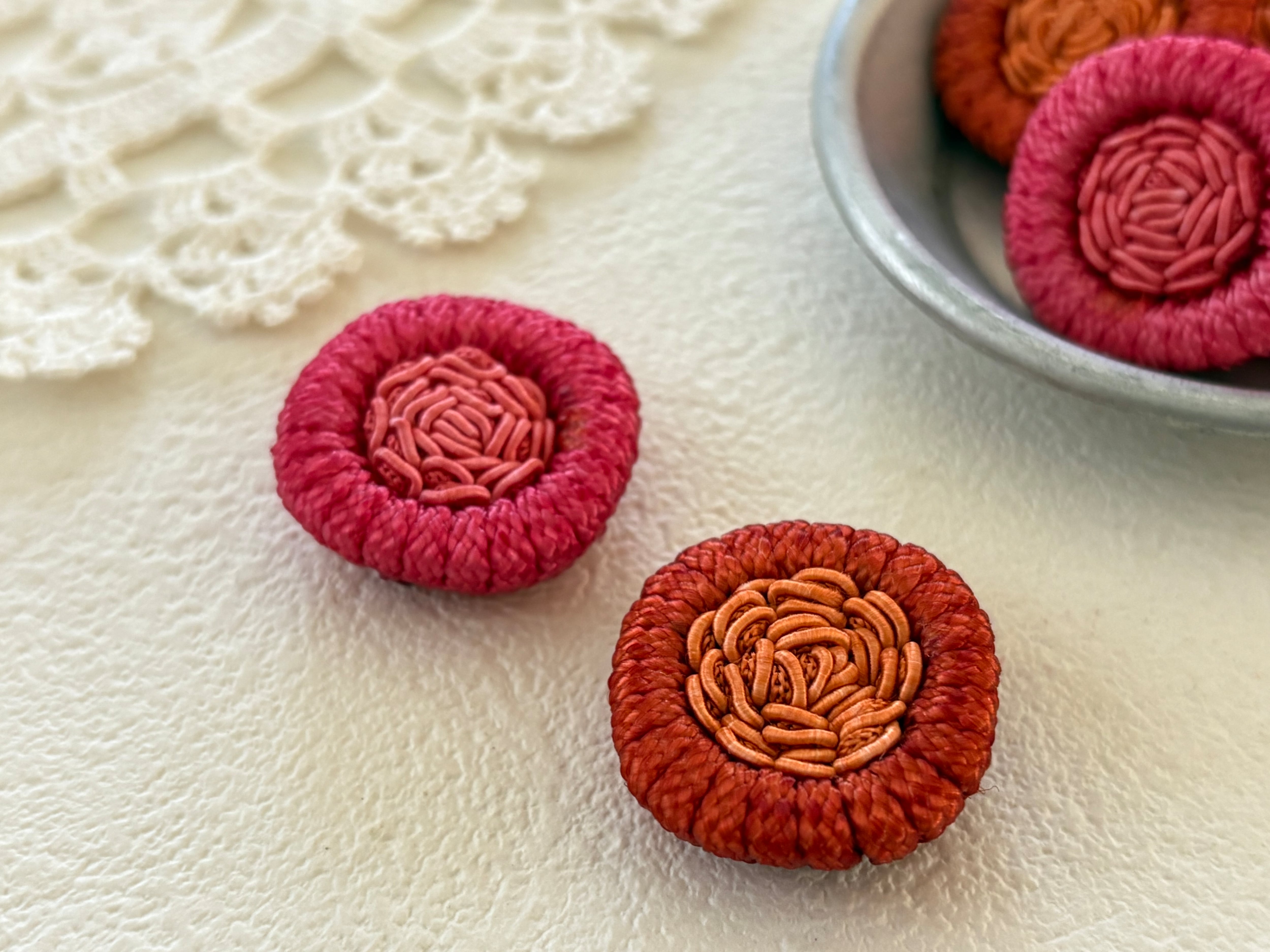 飾りボタンには勿論のことアクセサリーパーツとして、カルトナージュのデコレーション材になど様々な用途でお役立て下さいませ。