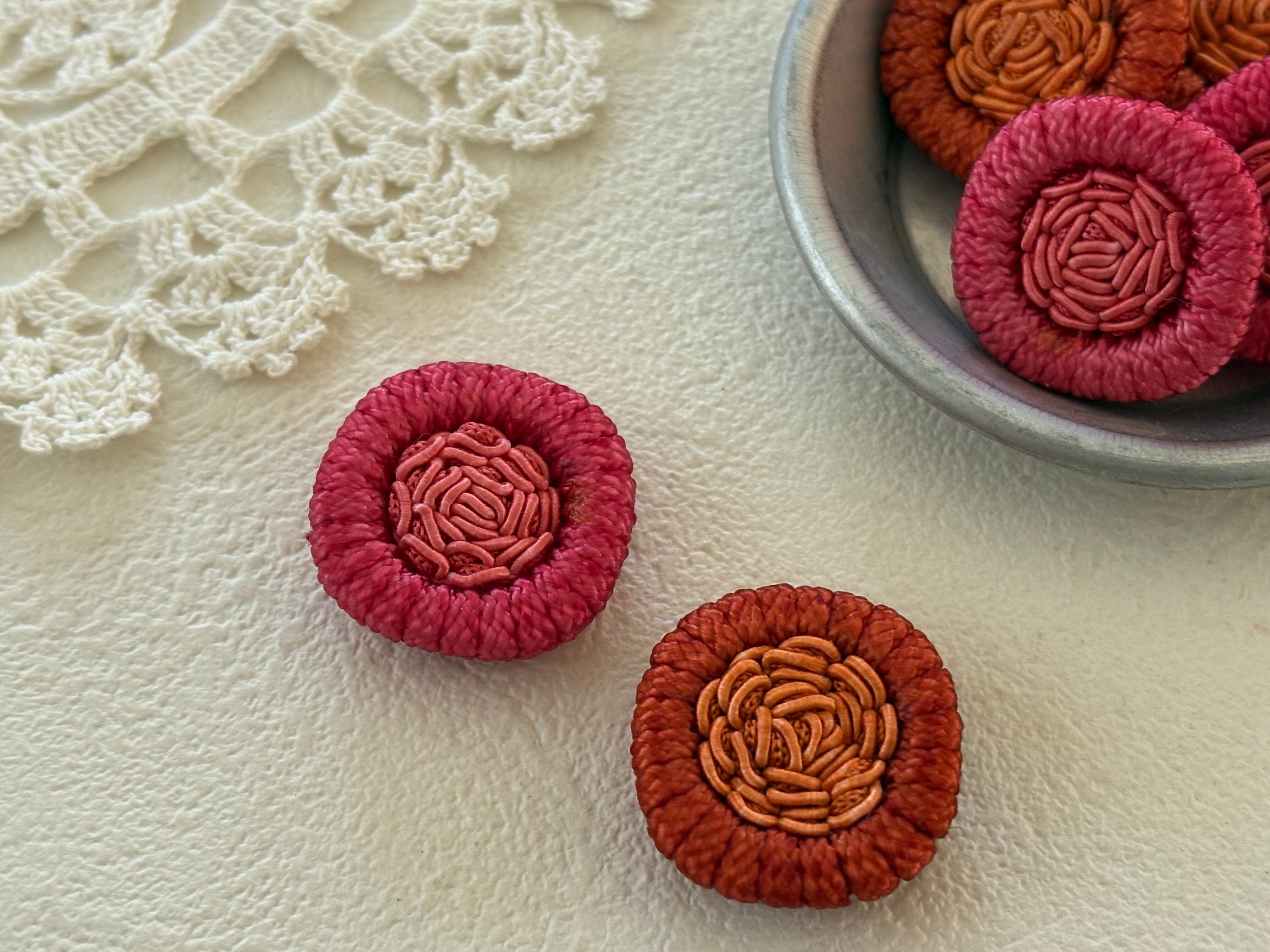 23mm Japanese ヴィンテージボタン コードボタン オレンジ/ピンク デッドストック アクセサリーパーツ 装飾材 カルトナージュ