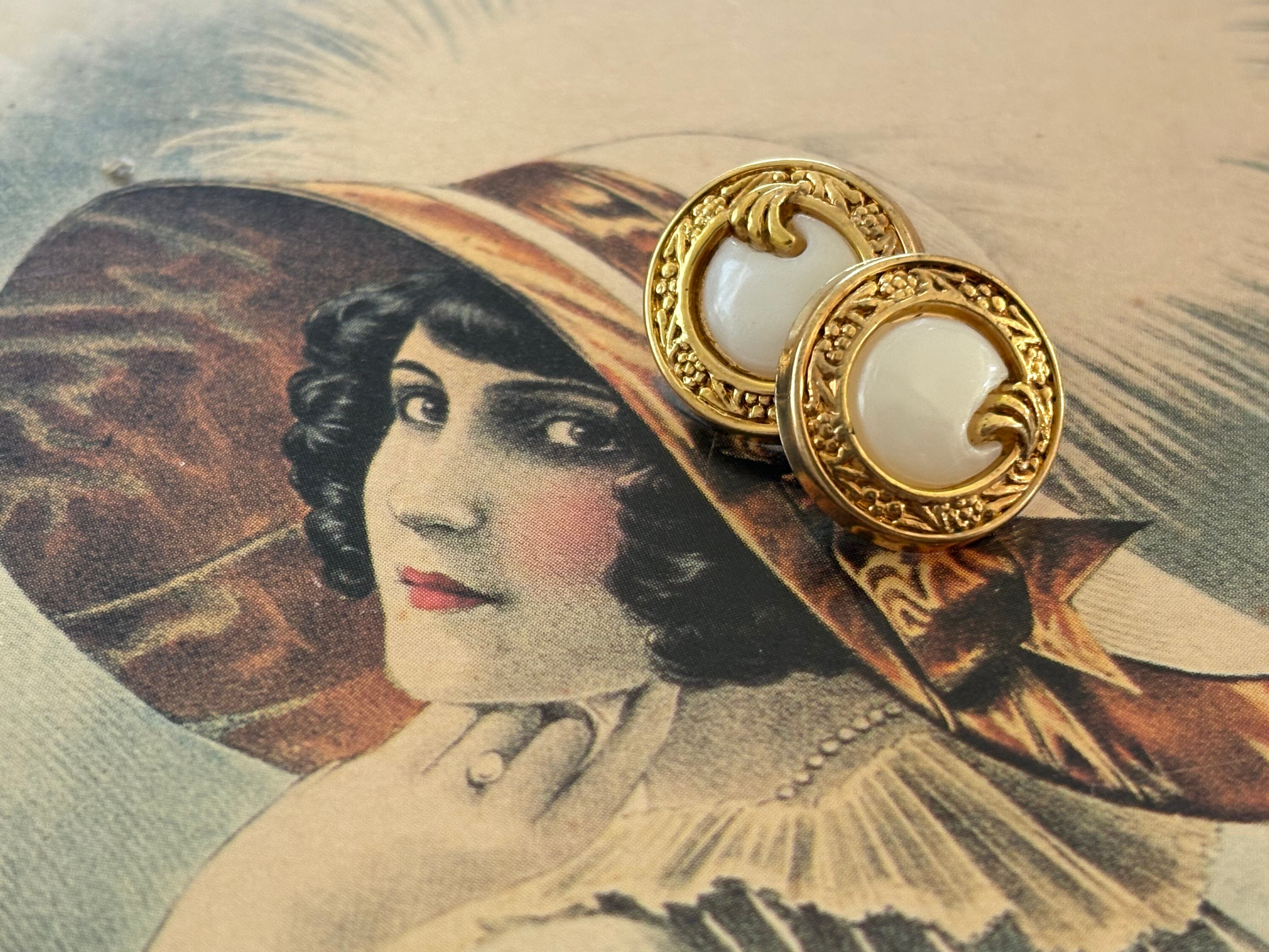 15mm フランス ヴィンテージボタン 1990年代 デッドストック ホワイト×ゴールド プラスチックボタン アクセサリーパーツ