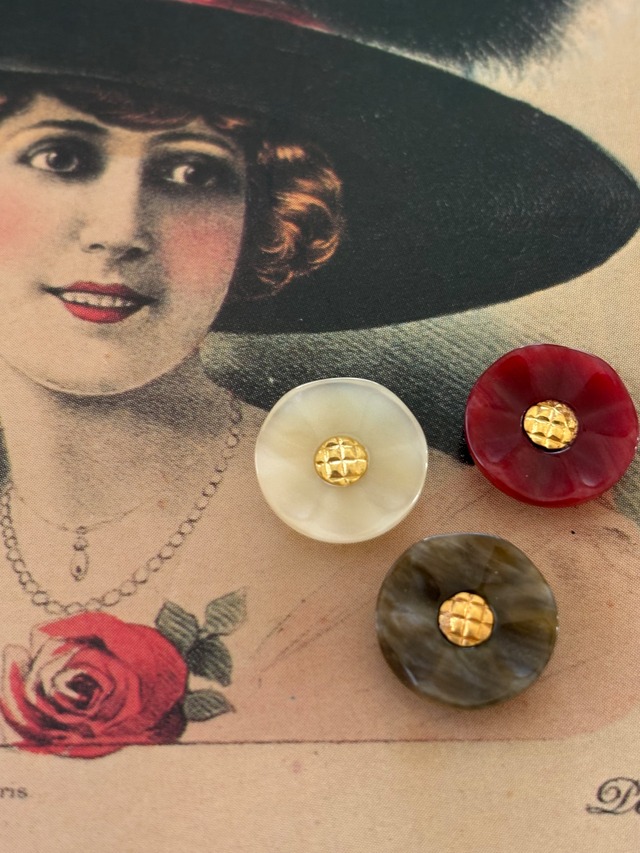 ※インポート、ヴィンテージボタンはもともとキズ、色むら、バリ、サイズの不揃い、多少の汚れなどが見られる場合があります。