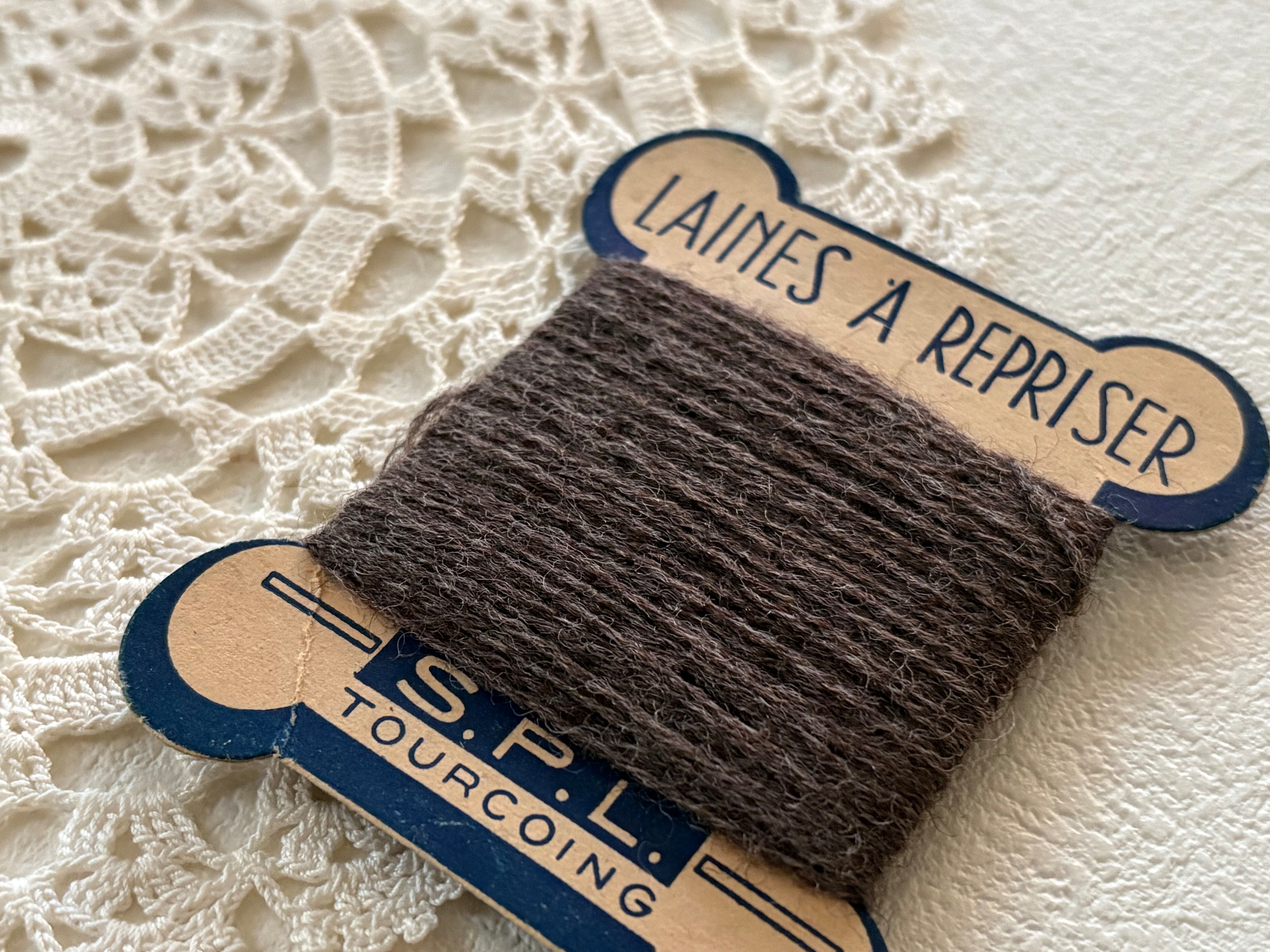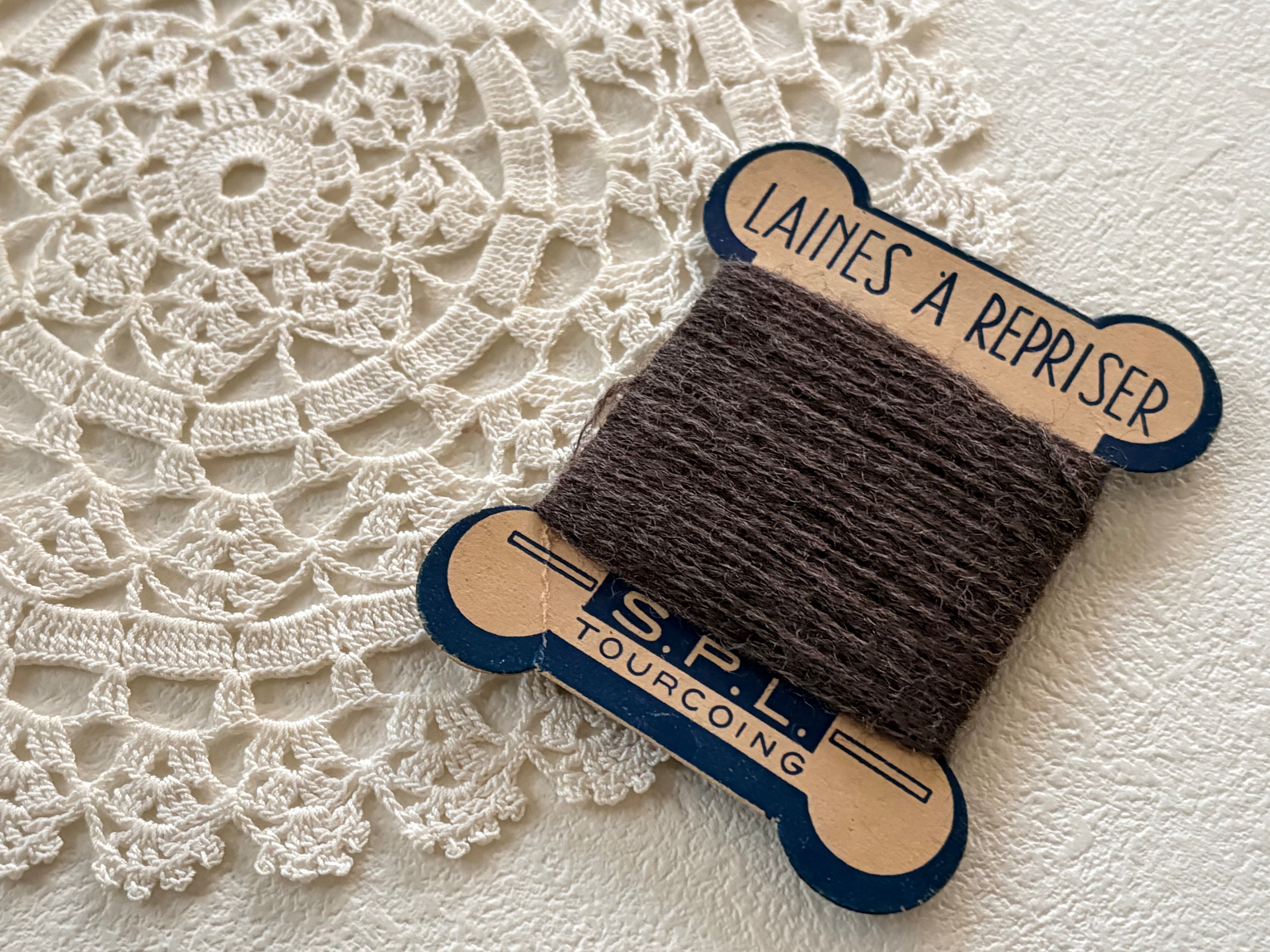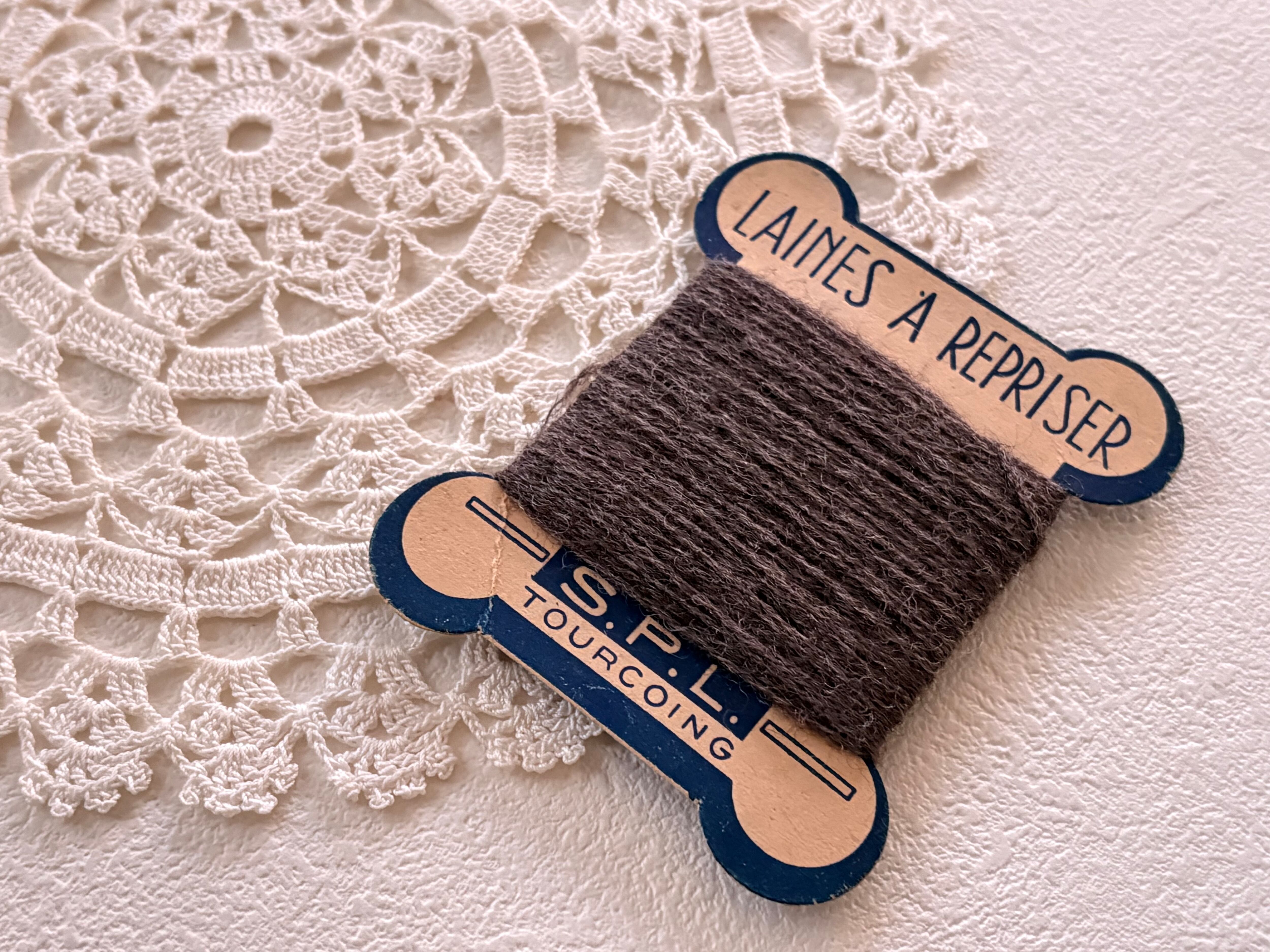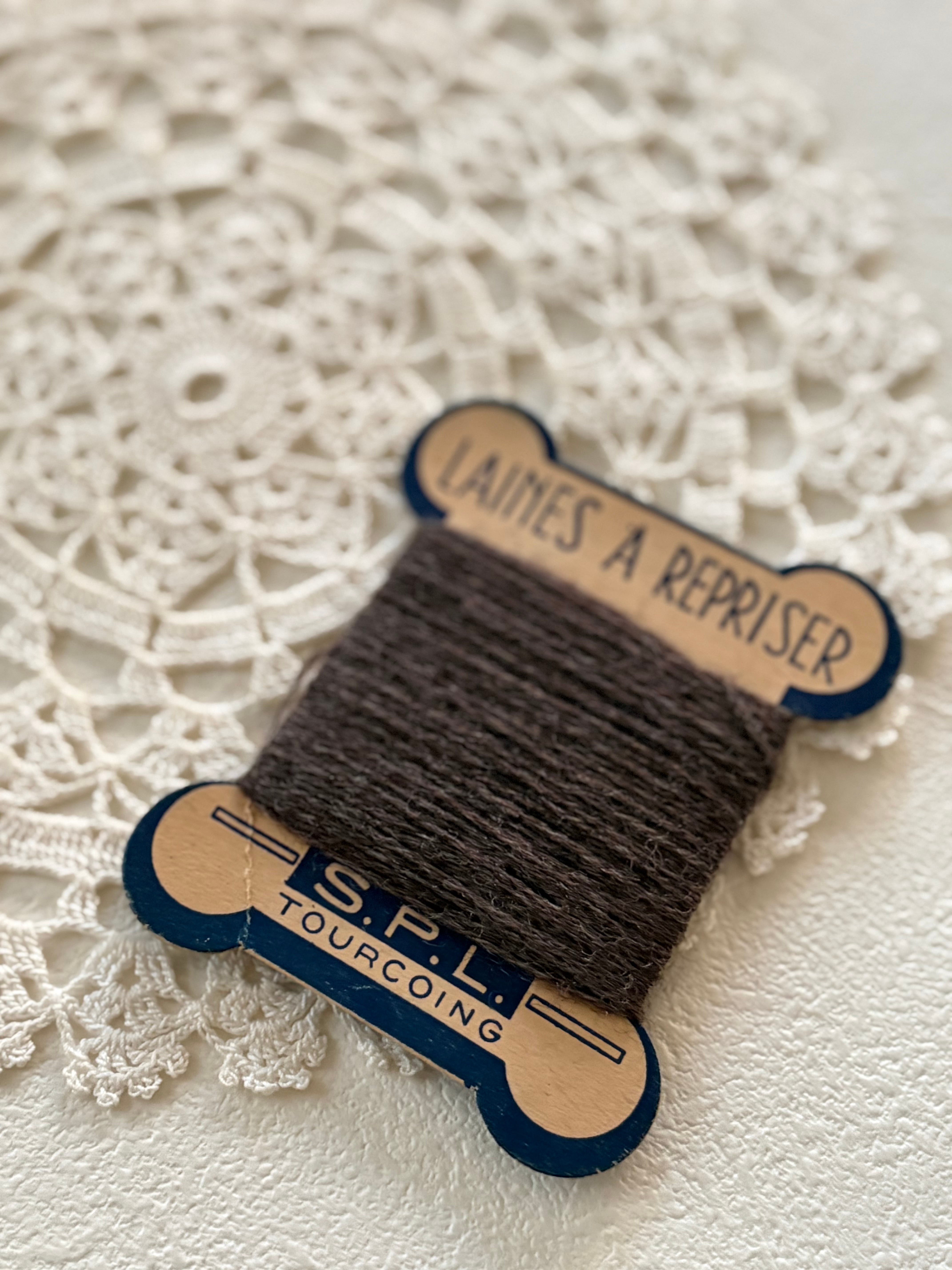 フランスアンティーク 糸巻き ウール糸 ブラウン フランス製 手芸小物 撮影小物 インテリア小物