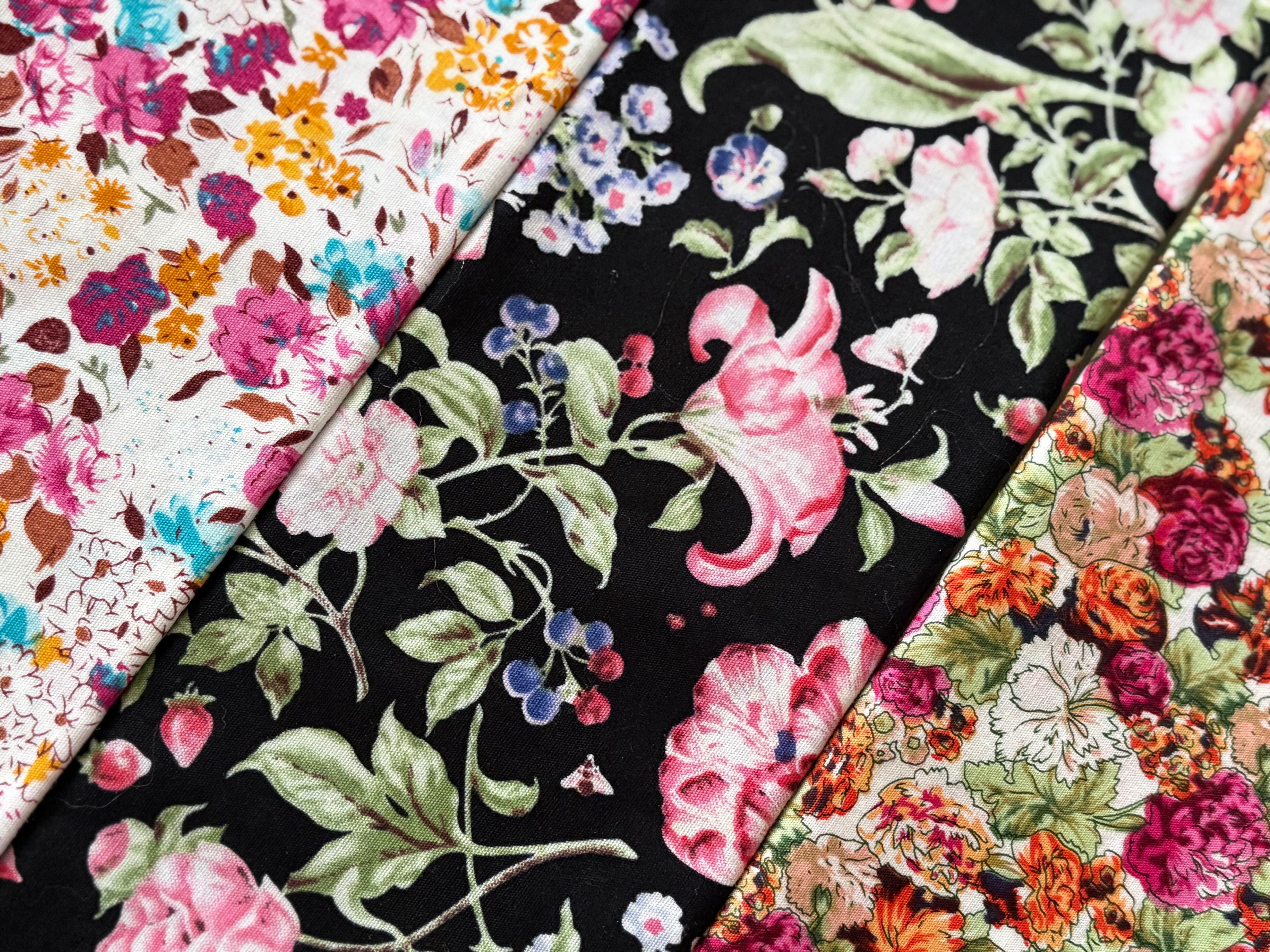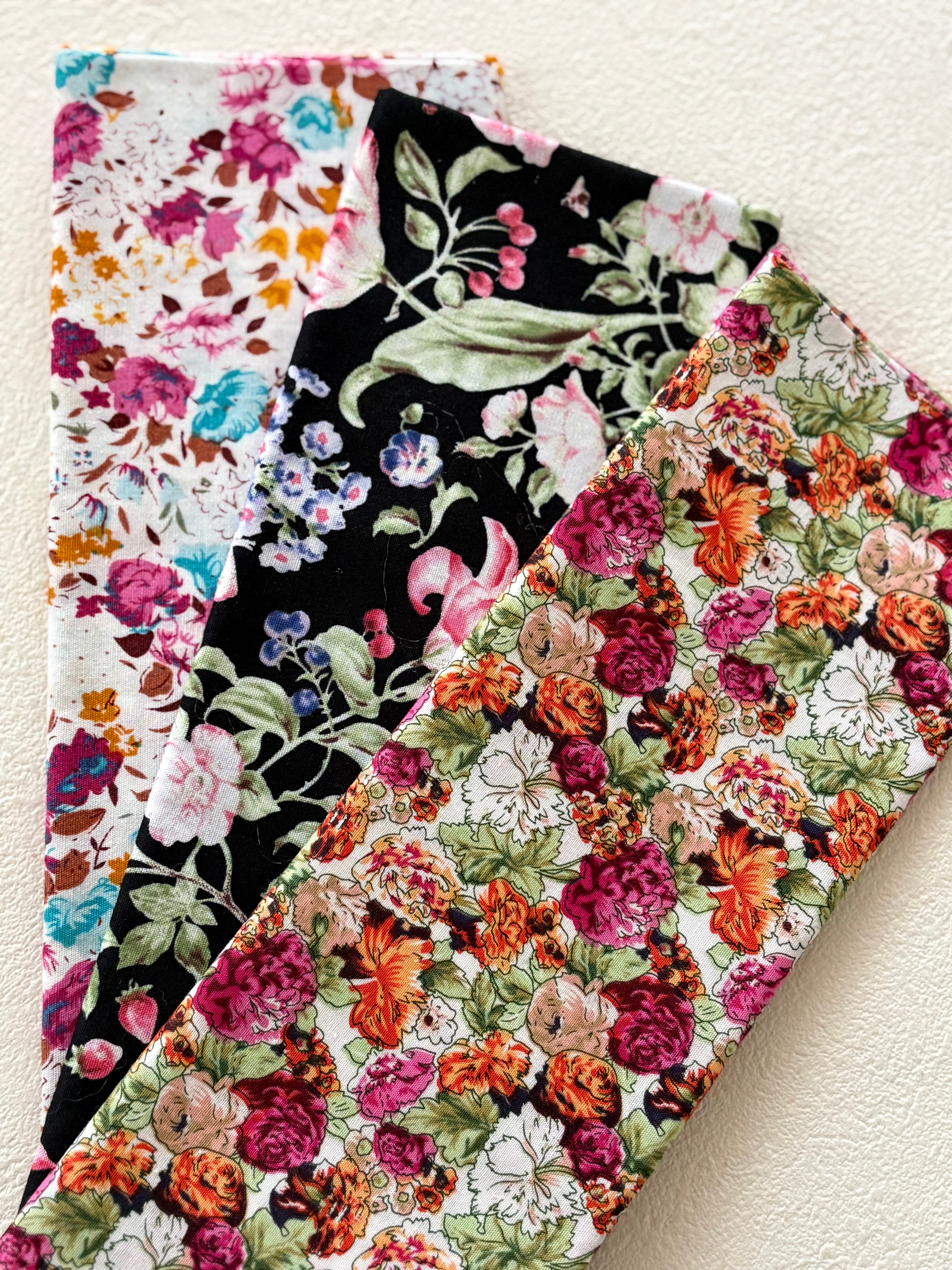 発色の良い鮮やかな花柄のカットファブリック3種のセットになります。