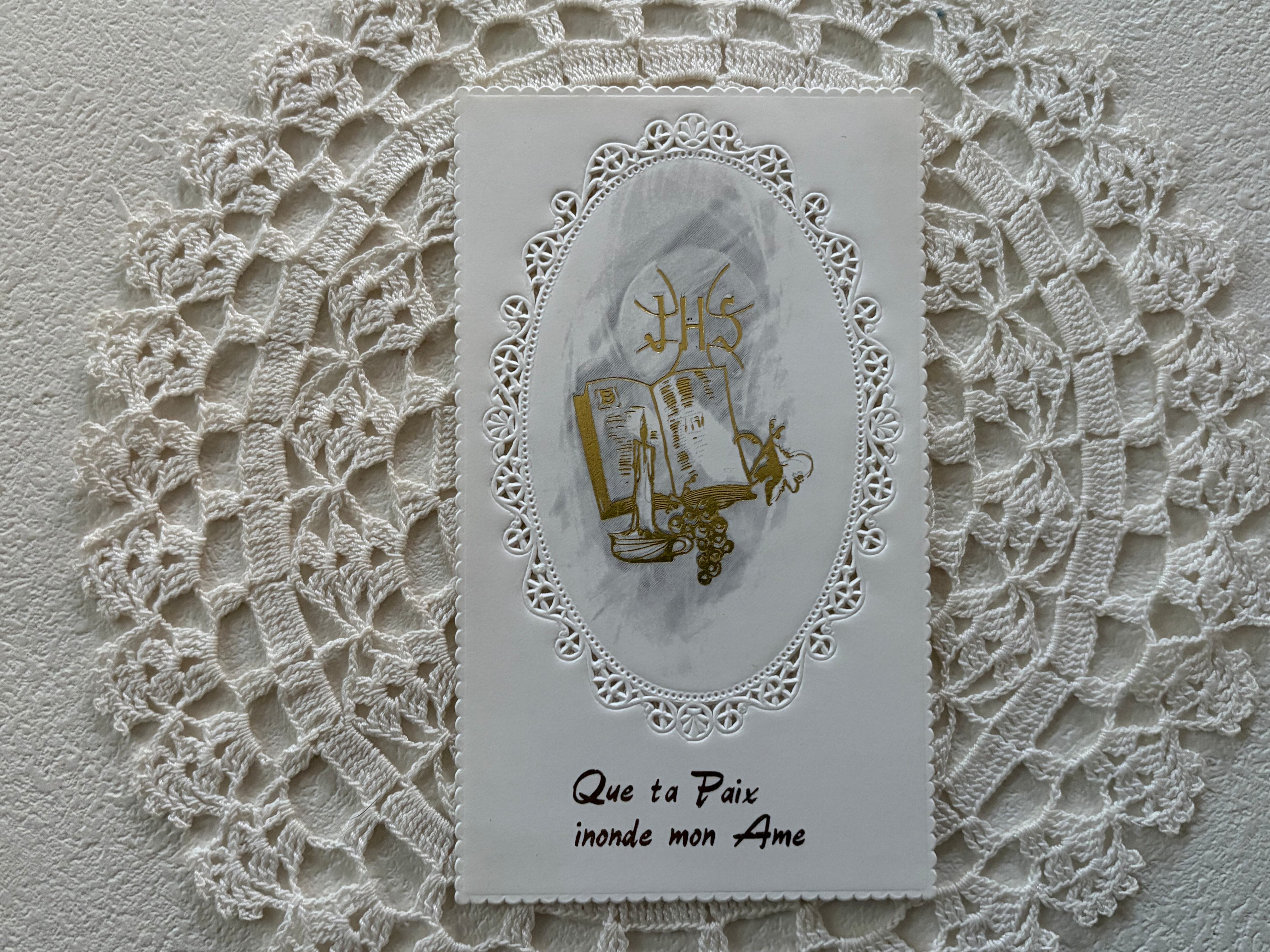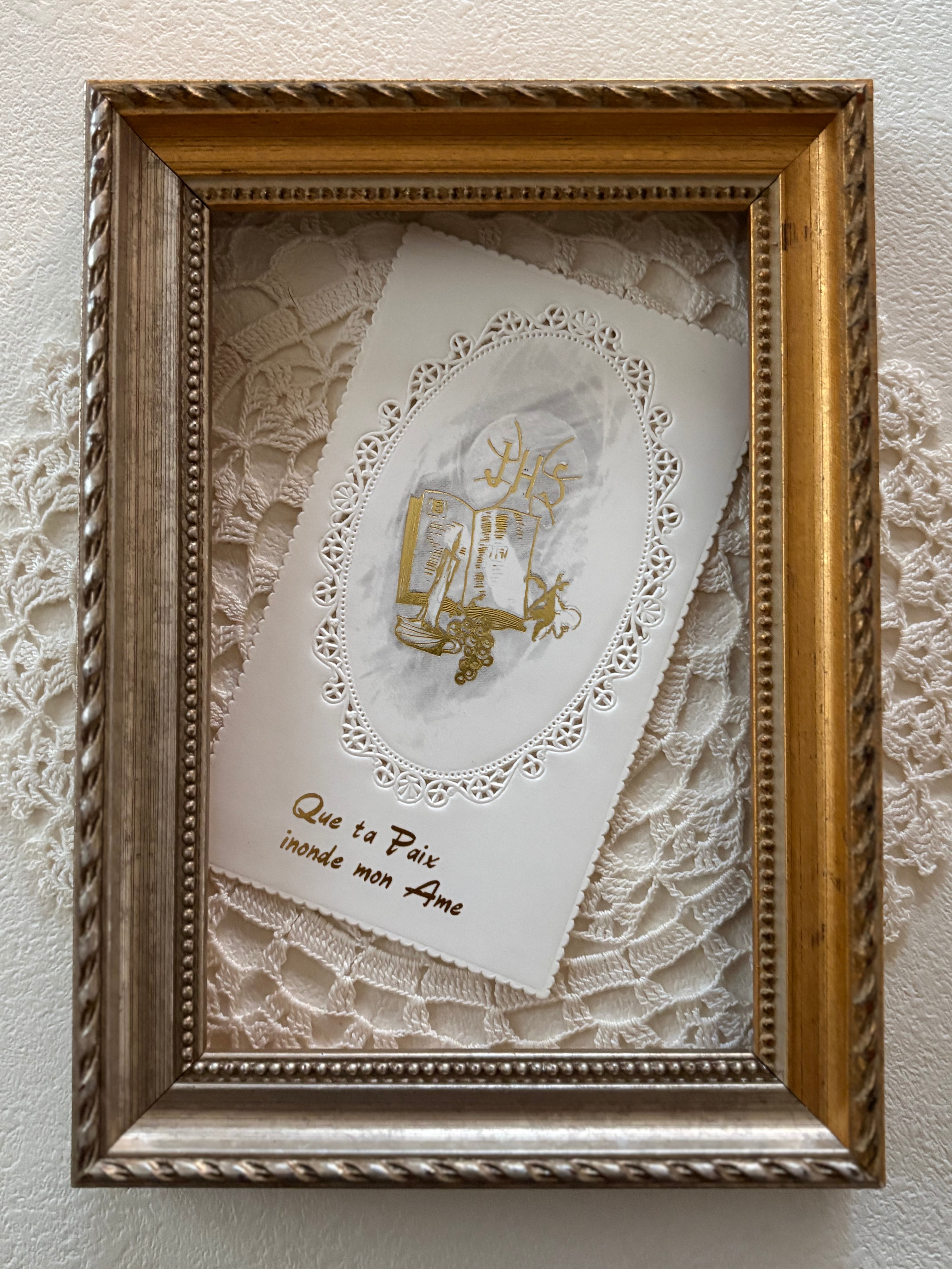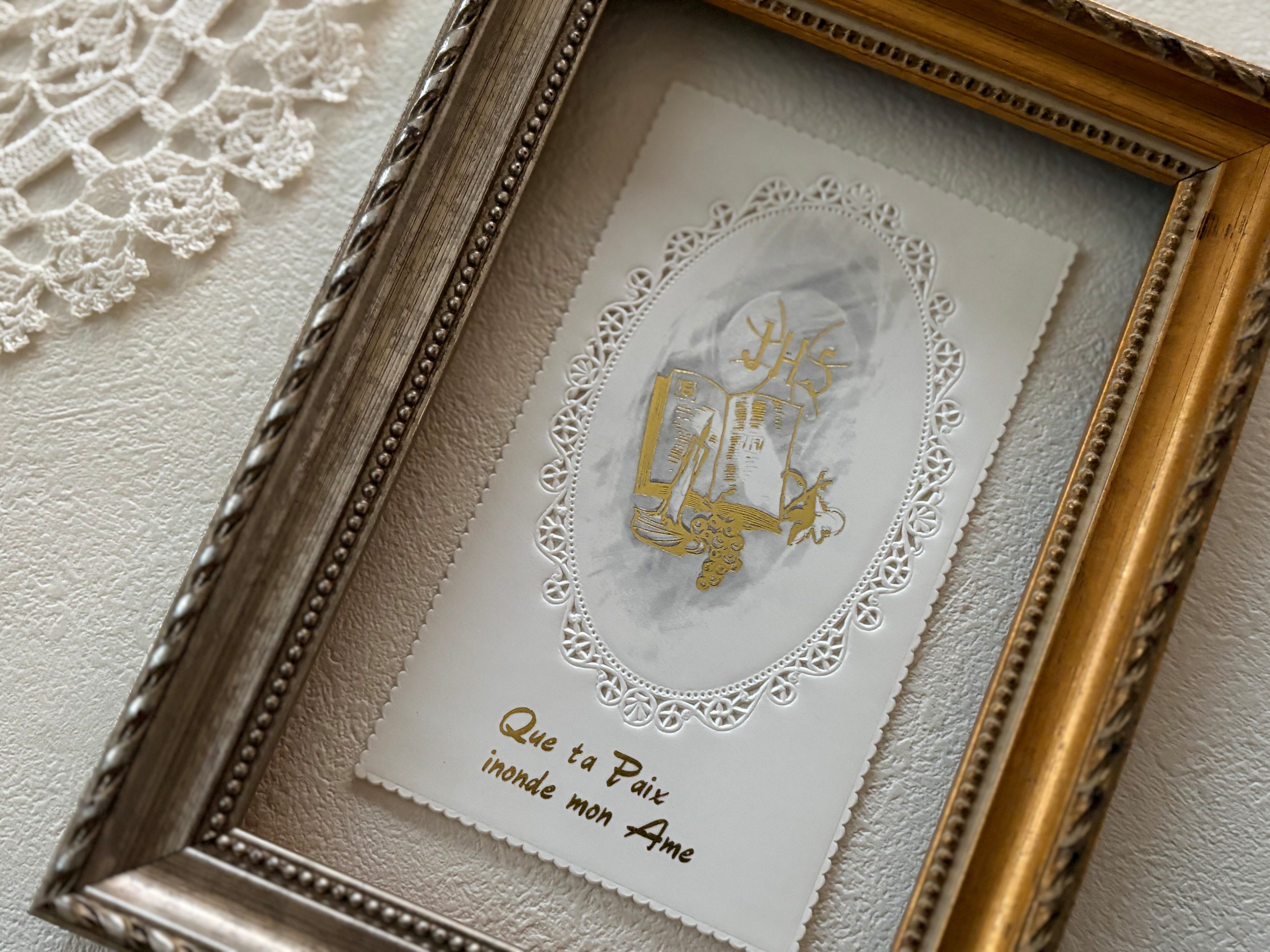 フランス Vintage ヴィンテージ Holy Card ホーリーカード 1975年 聖書 キャンドル 葡萄 額装 コレクション 撮影小物