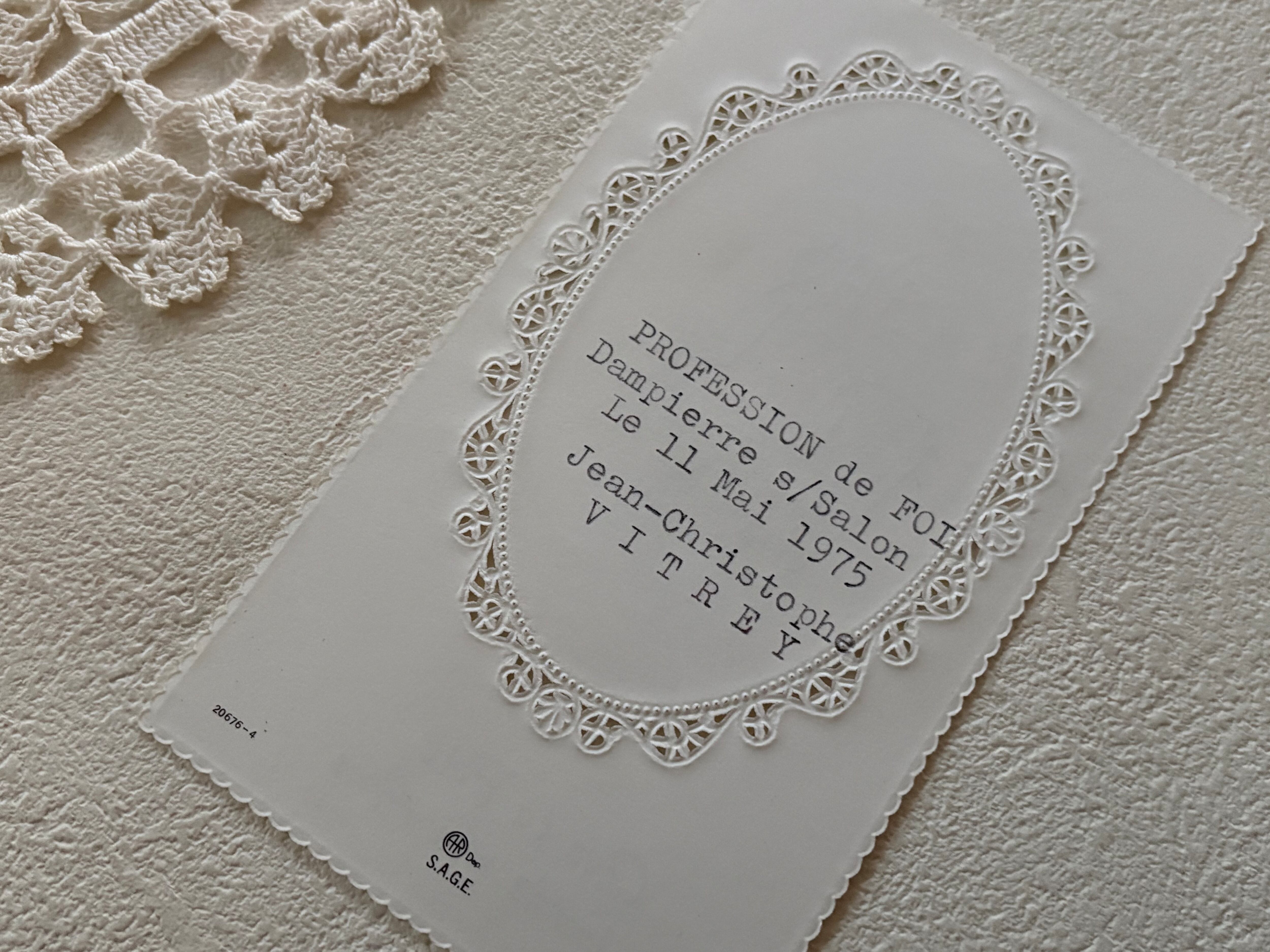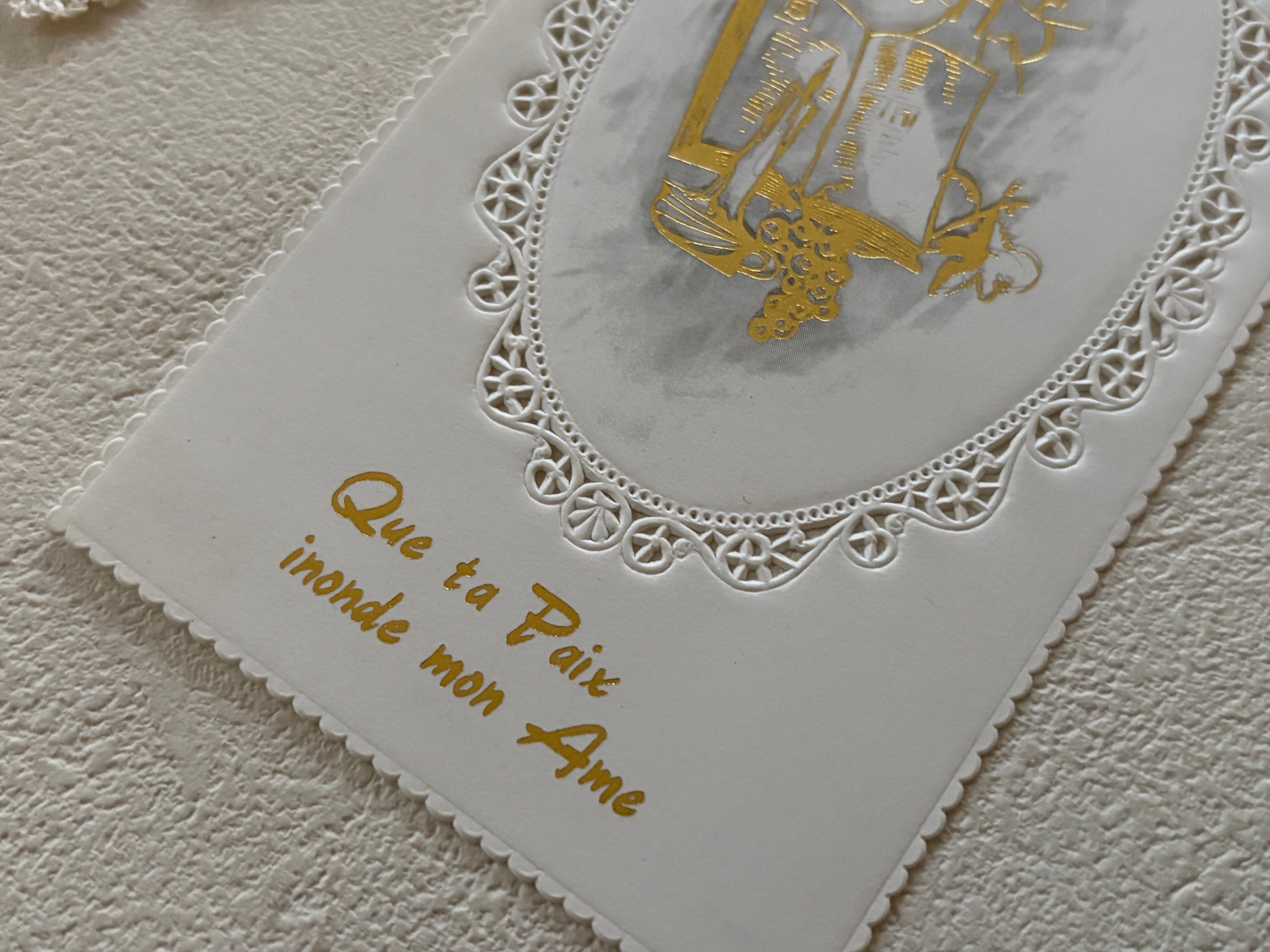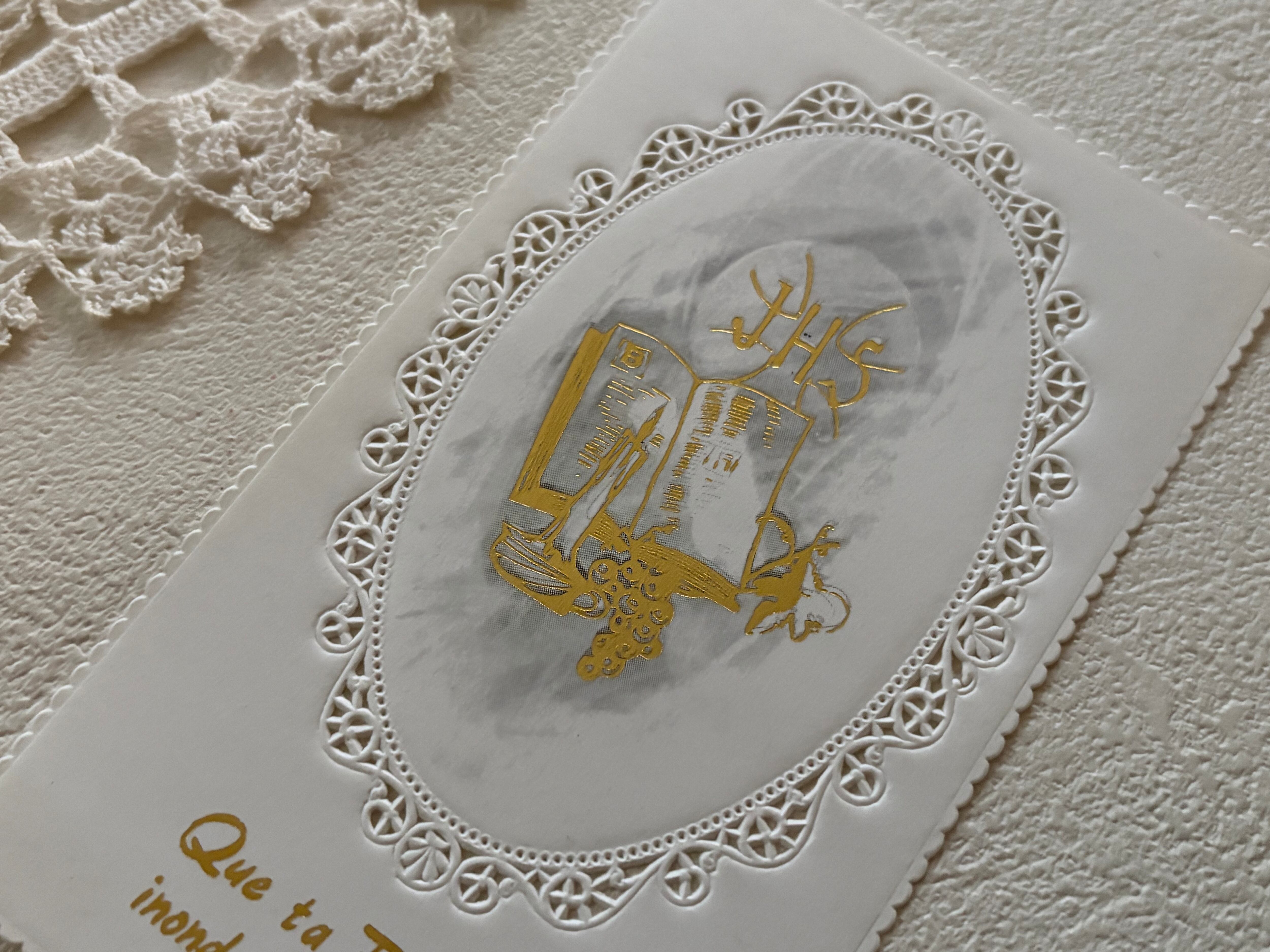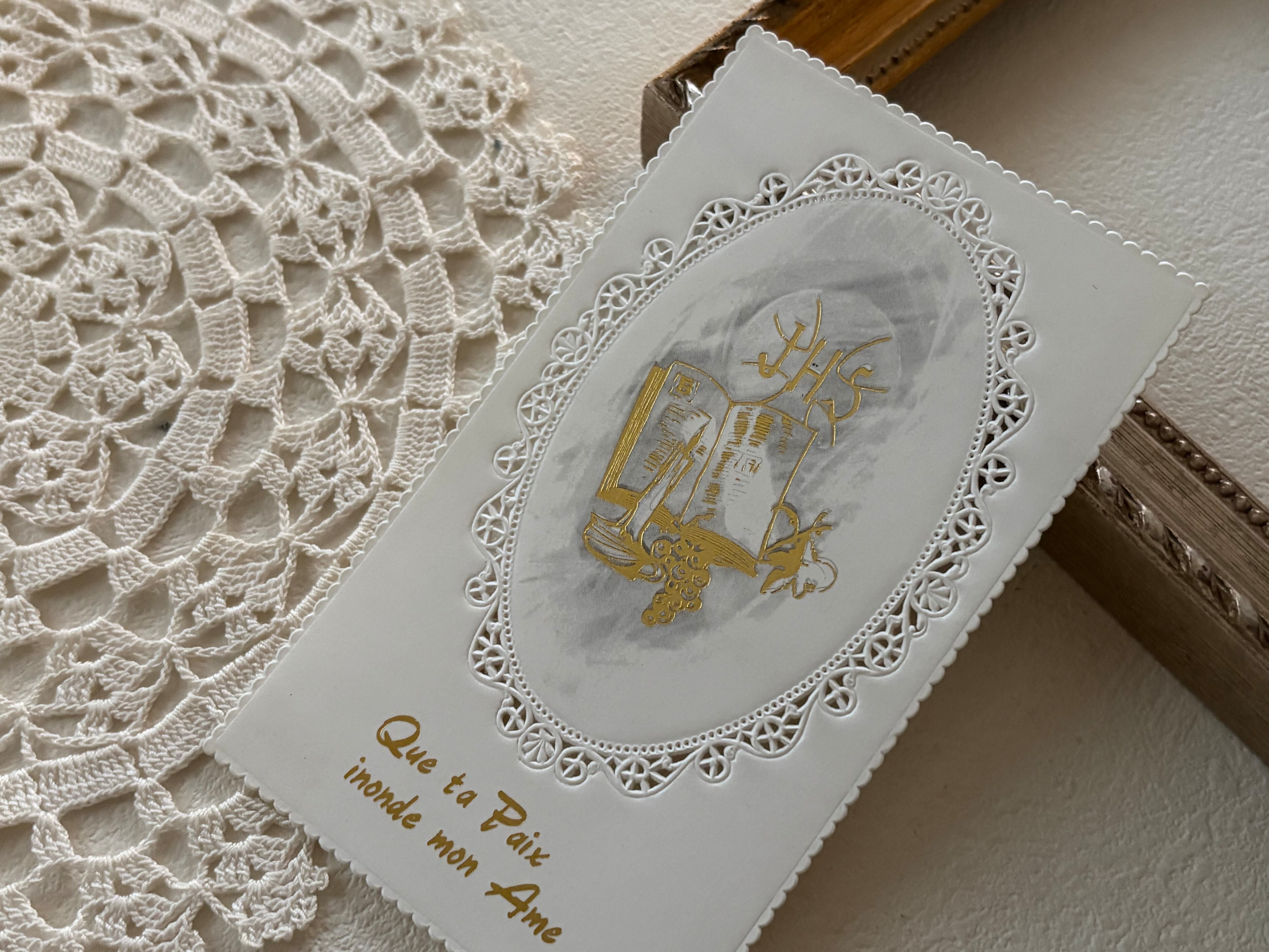 フランス Vintage ヴィンテージ Holy Card ホーリーカード 1975年 聖書 キャンドル 葡萄 額装 コレクション 撮影小物