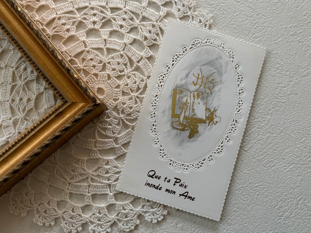 ホーリーカードはイエスキリスト、聖母マリアをはじめ、聖人たちや聖書の場面、祈りの言葉などが描かれた紙製のカードで教会を訪れた巡礼者に渡されたものです。