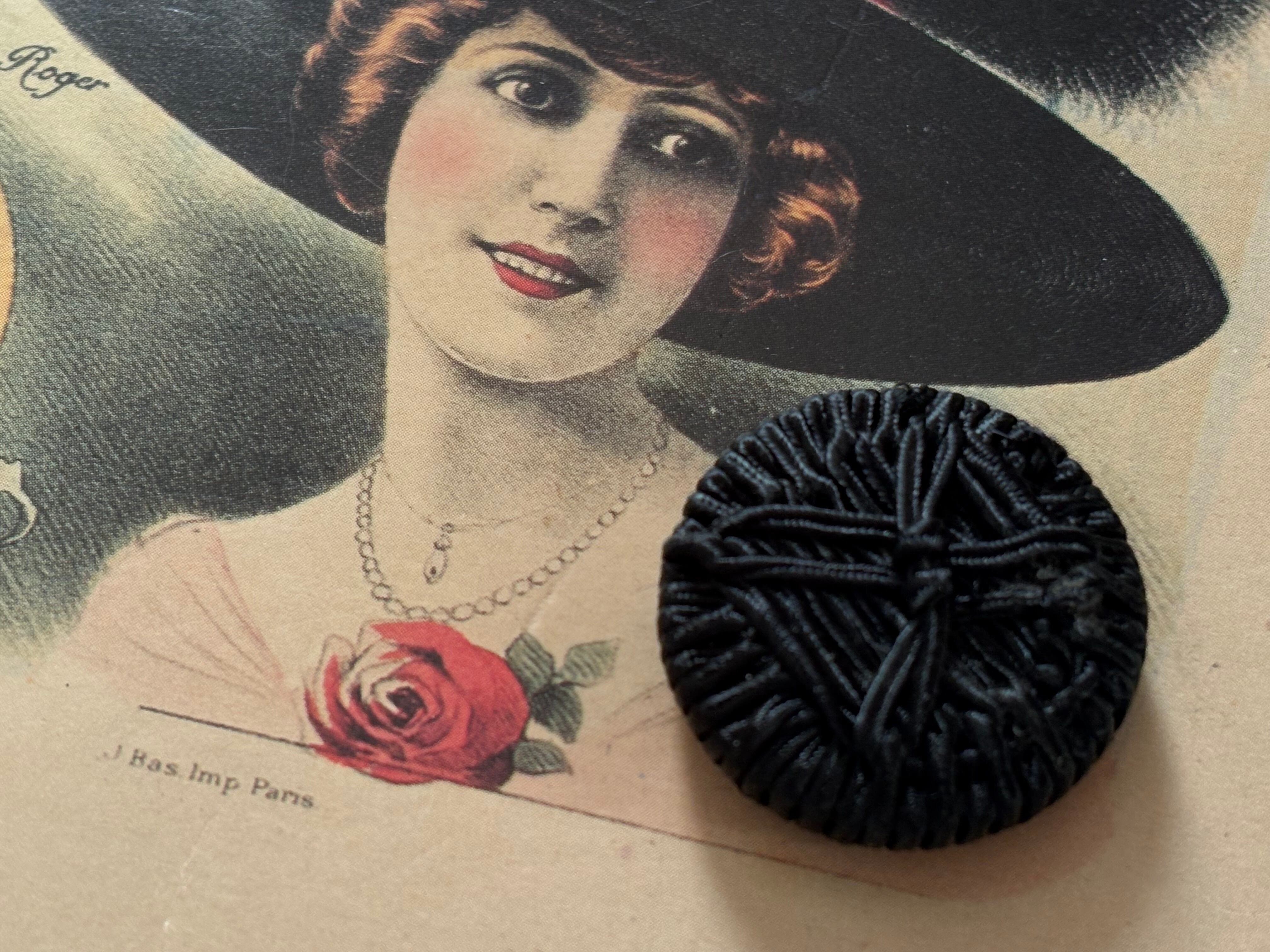 29mm Japanese ヴィンテージボタン コードボタン ブラック デッドストック アクセサリーパーツ 装飾材 カルトナージュ
