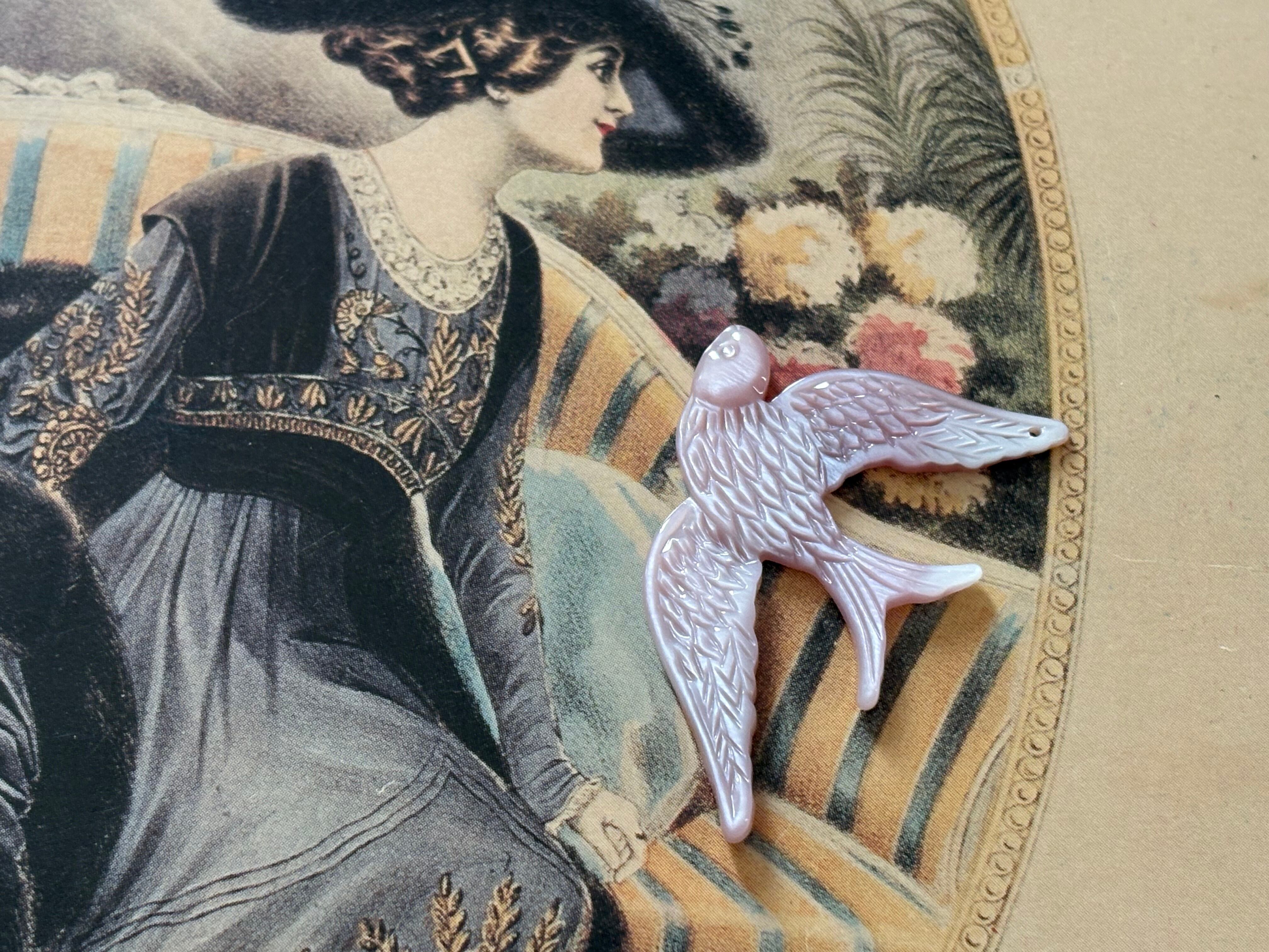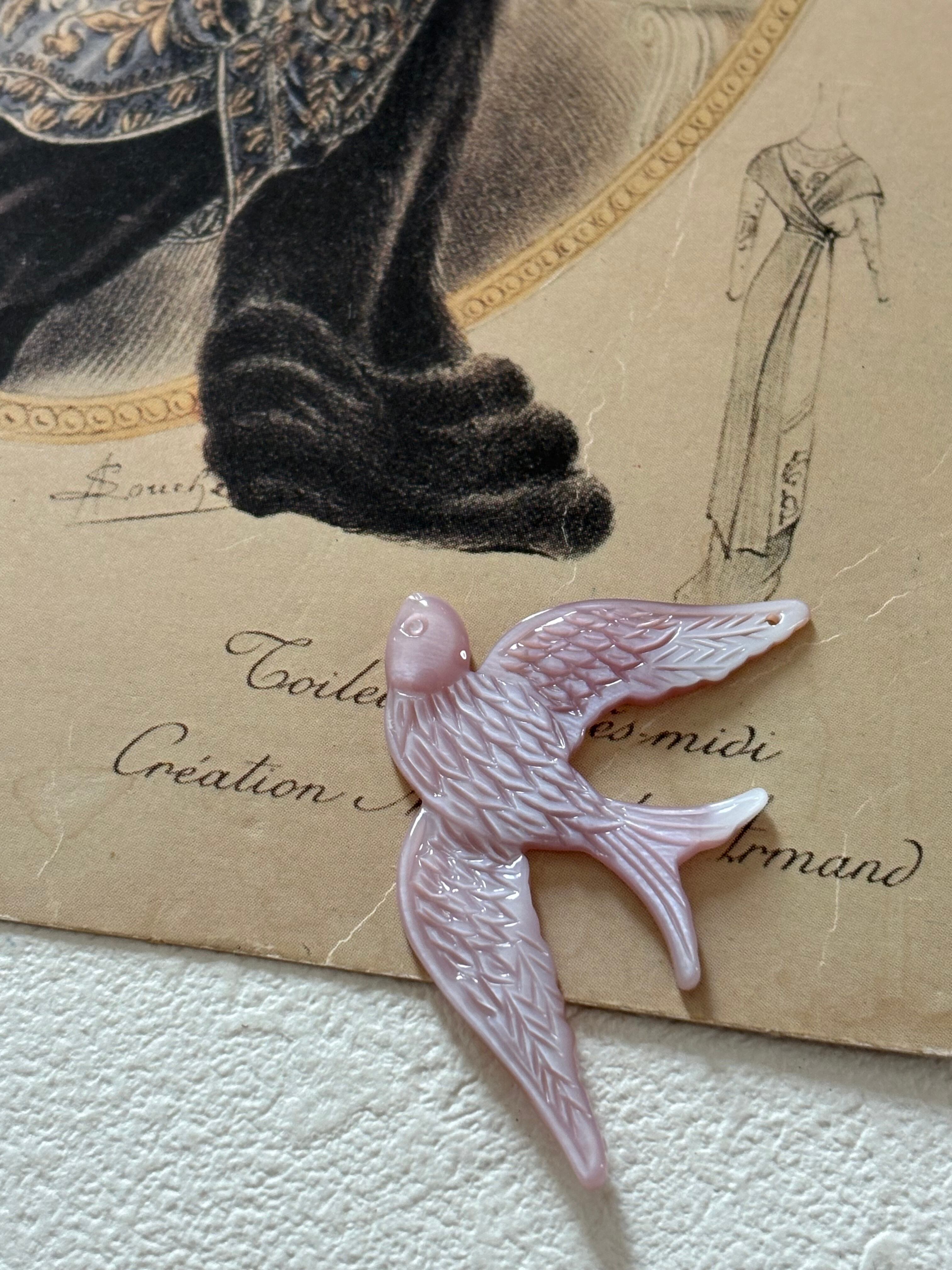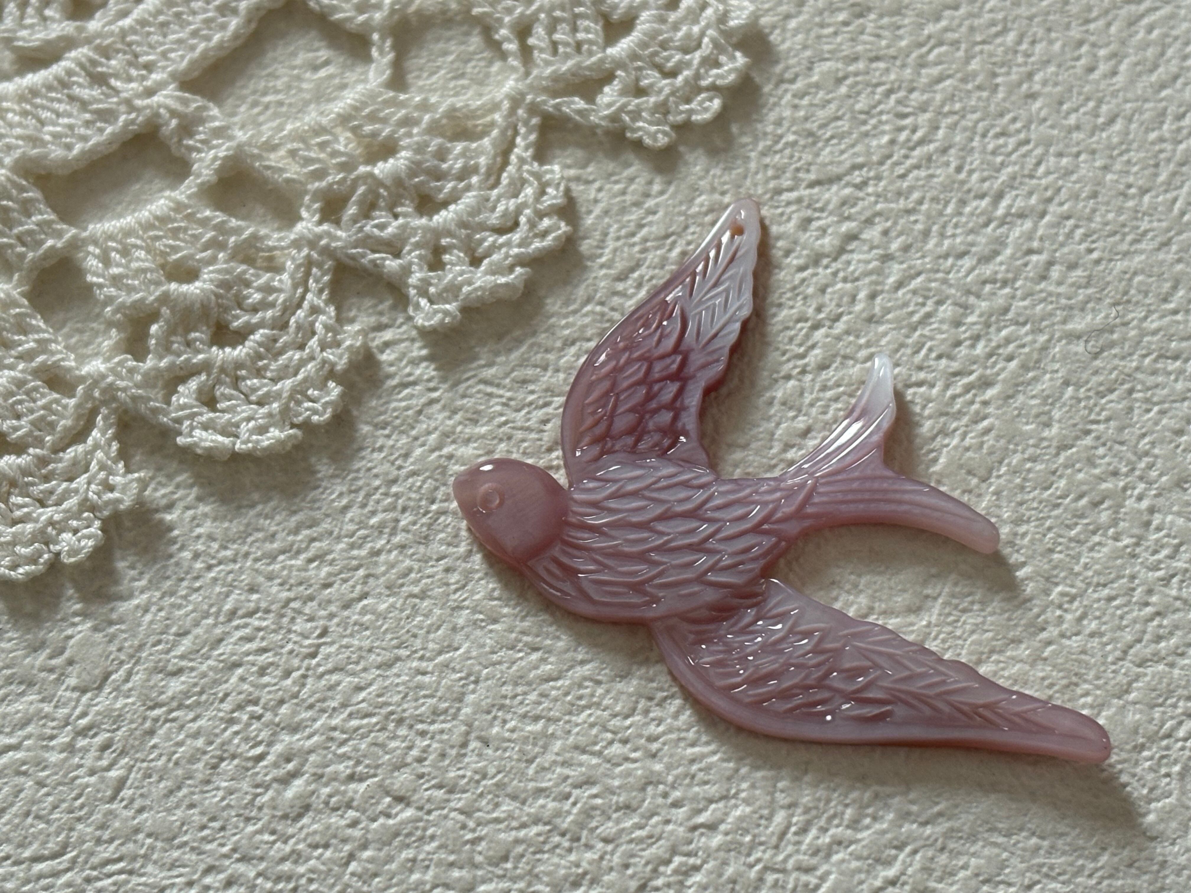 輸入デザインパーツマザーオブパール ピンクシェル ツバメ つばめ 42mm×35mm ピンク チャーム アクセサリーパーツ カルトナージュ デコレーション材