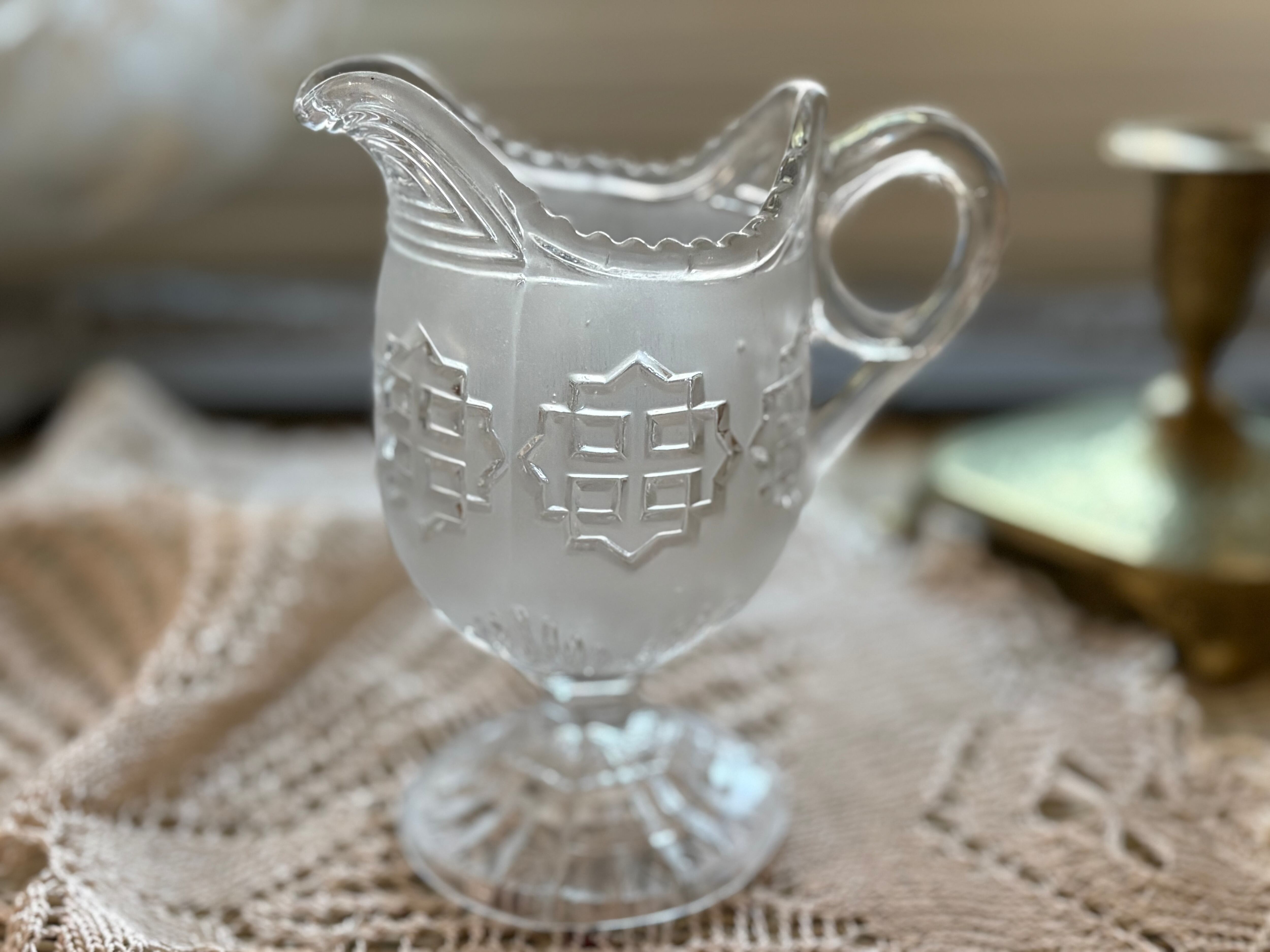 英国Vintage ガラスのミルクジャグ MILK JUG ピッチャー フラワーベース インテリア ガラス器