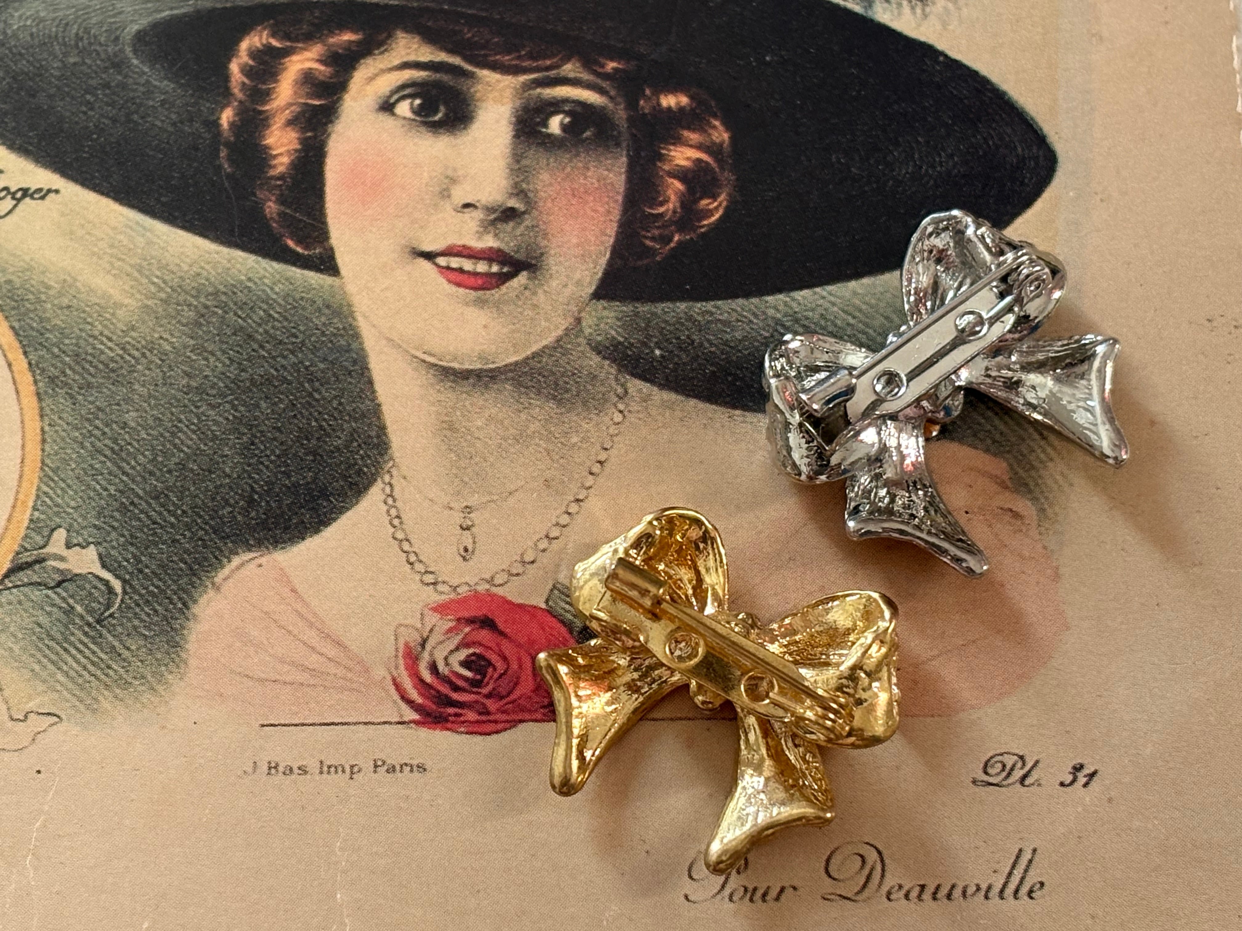 輸入デザインブローチ Ruban リボン シルバー/ゴールド 26mm×23mm アクセサリー ハンドメイドパーツ デコレーション材