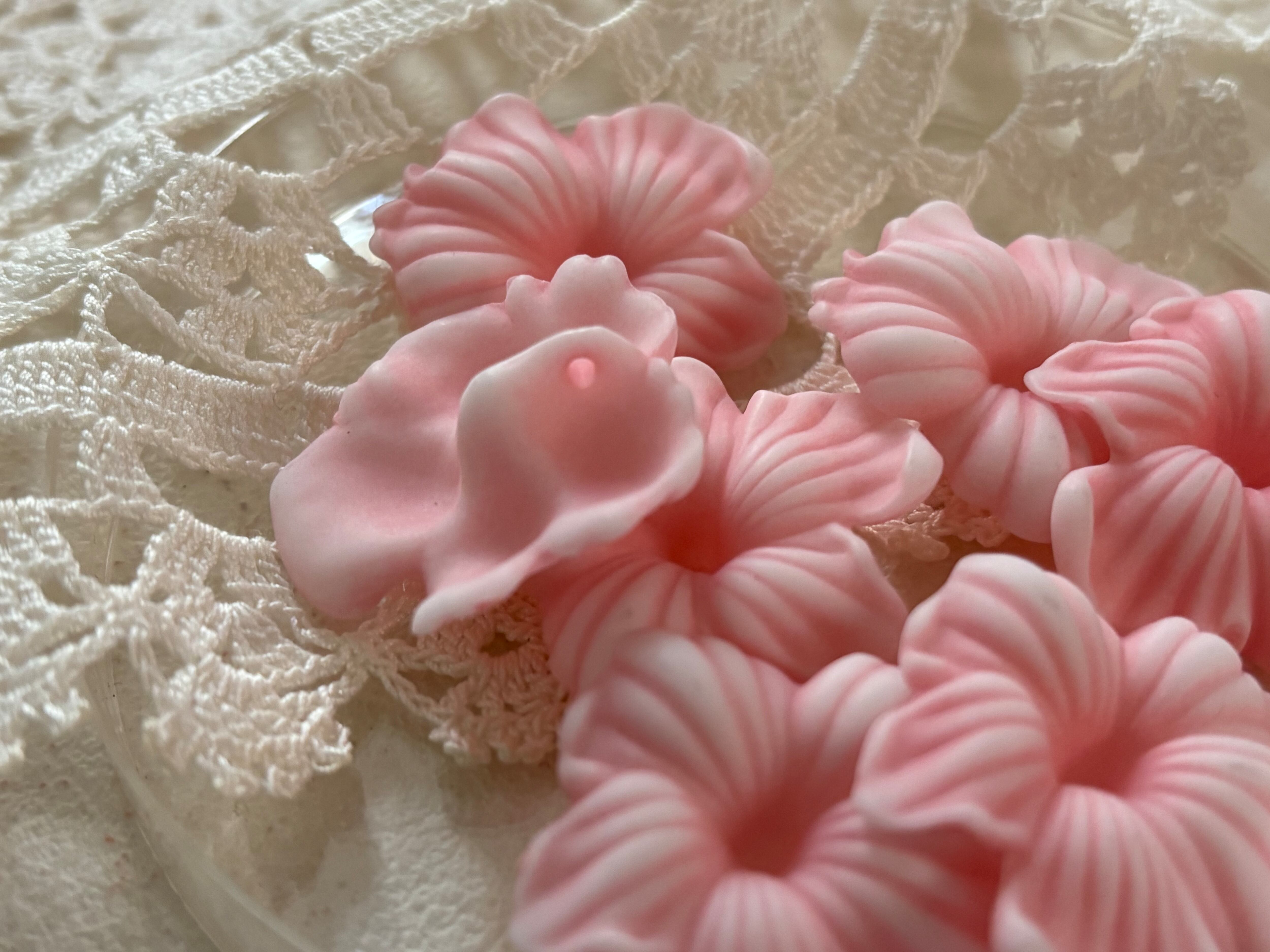 西ドイツVintage ルーサイト パンジーパーツ フラワー ピンク アクセサリーパーツ デコレーション材 カルトナージュ