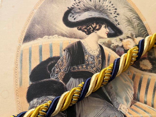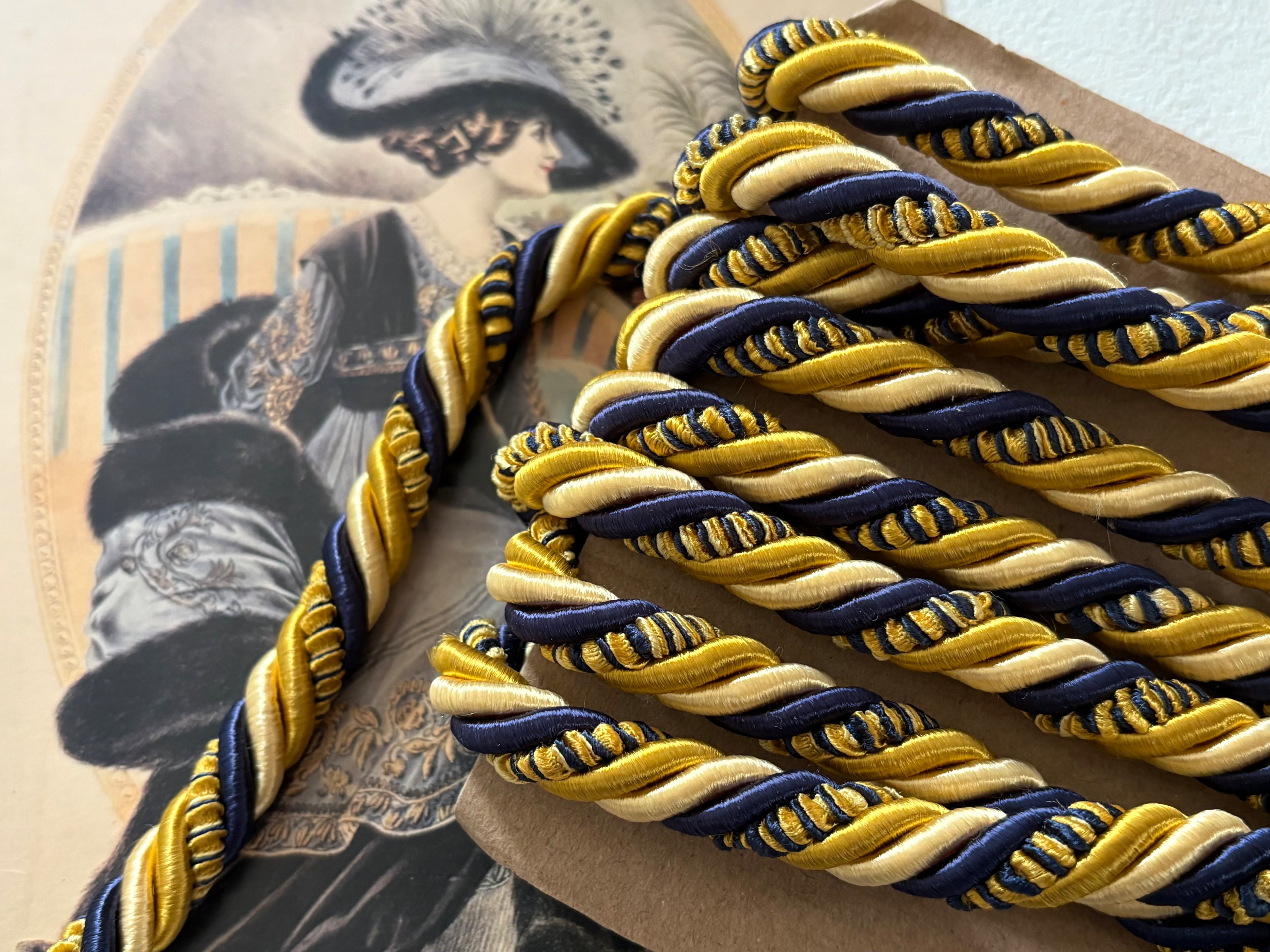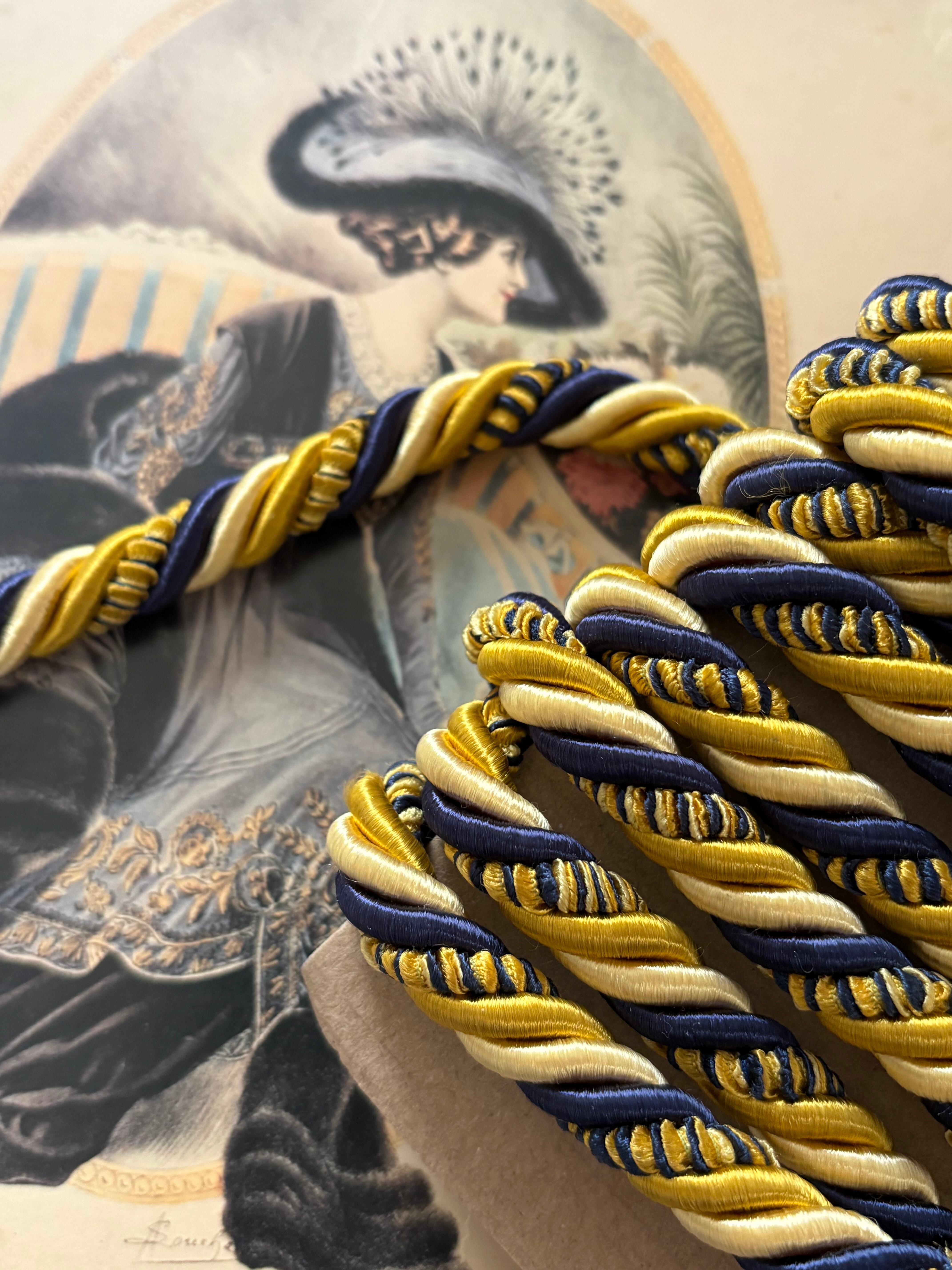 フランス 輸入デザインロープ ゴールド×ネイビー 幅10mm 100cm /カット カルトナージュ デコレーション材