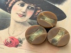ブラウンカラーの樹脂ボタンの中央にゴールドのグリッター、パウダーがかった神秘的なデザイン。