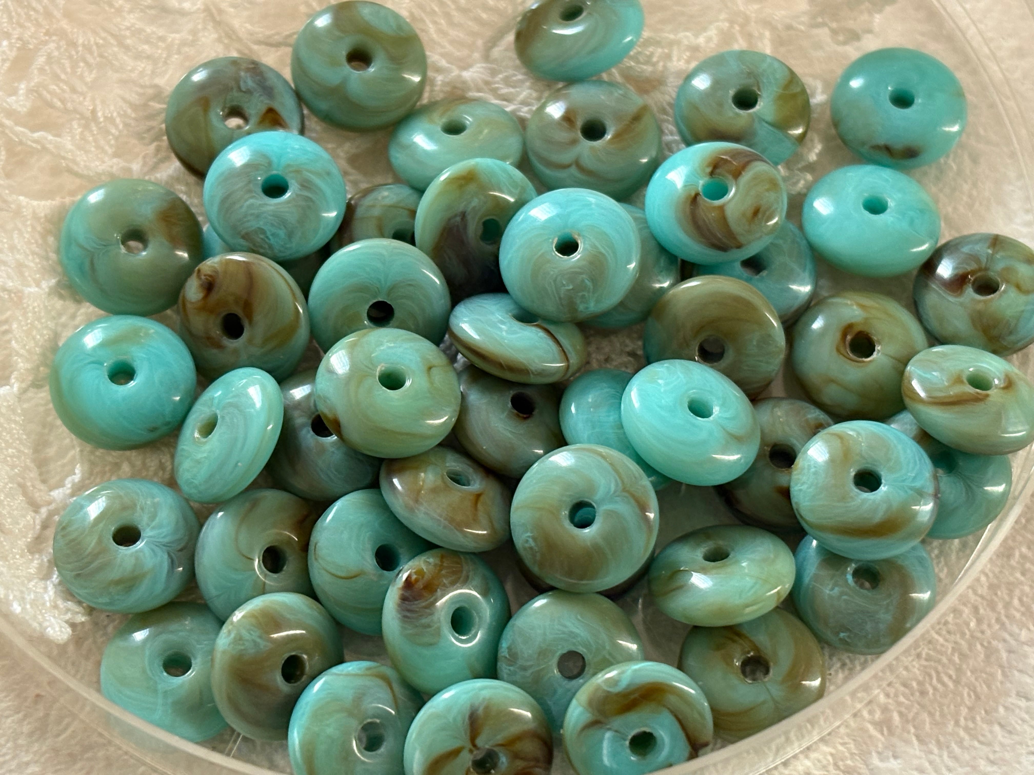 西ドイツVintage ルーサイトビーズ スペーサービーズ ターコイズ系他MIX 10mm 15個セット デッドストック アクセサリーパーツ