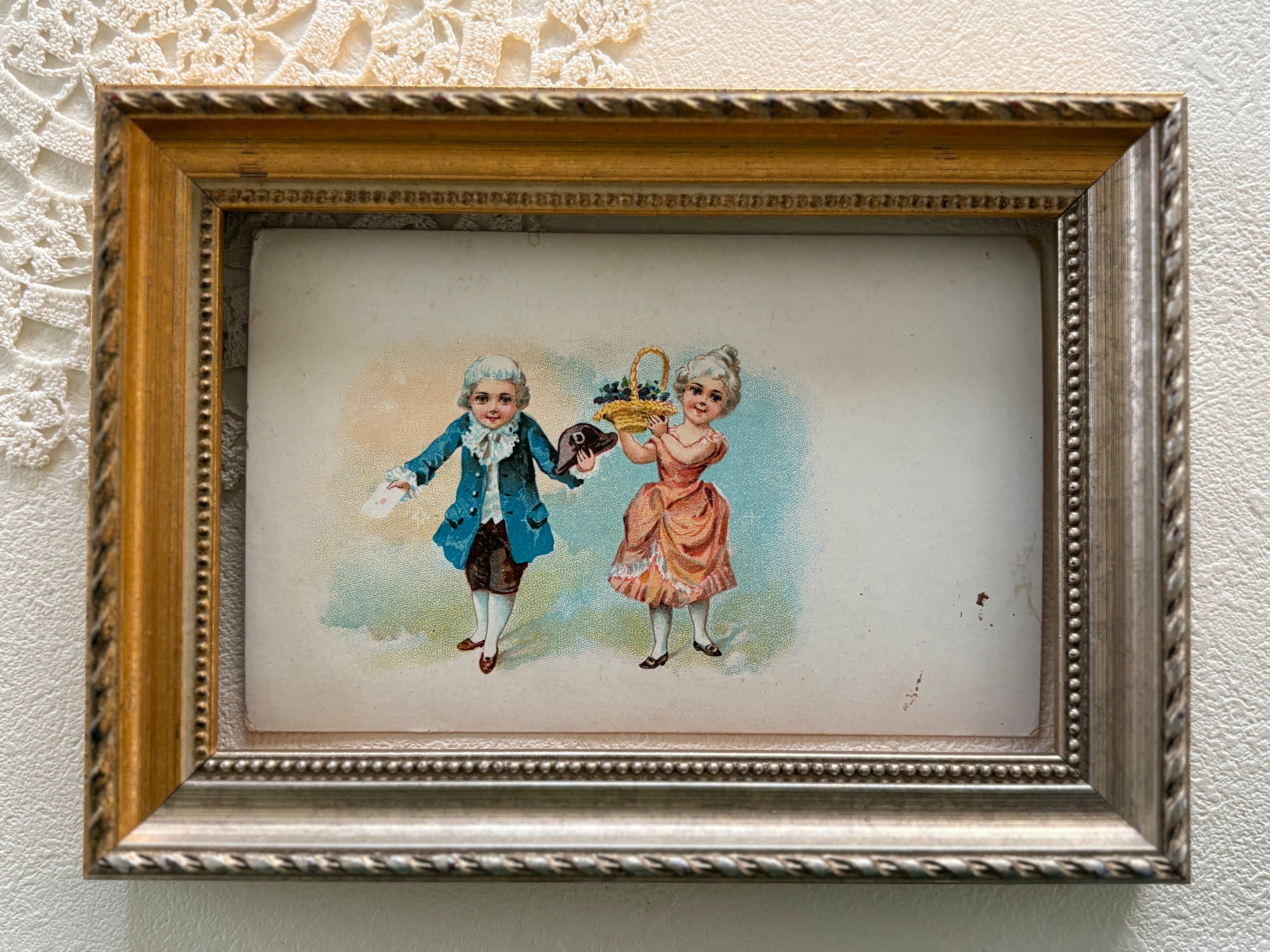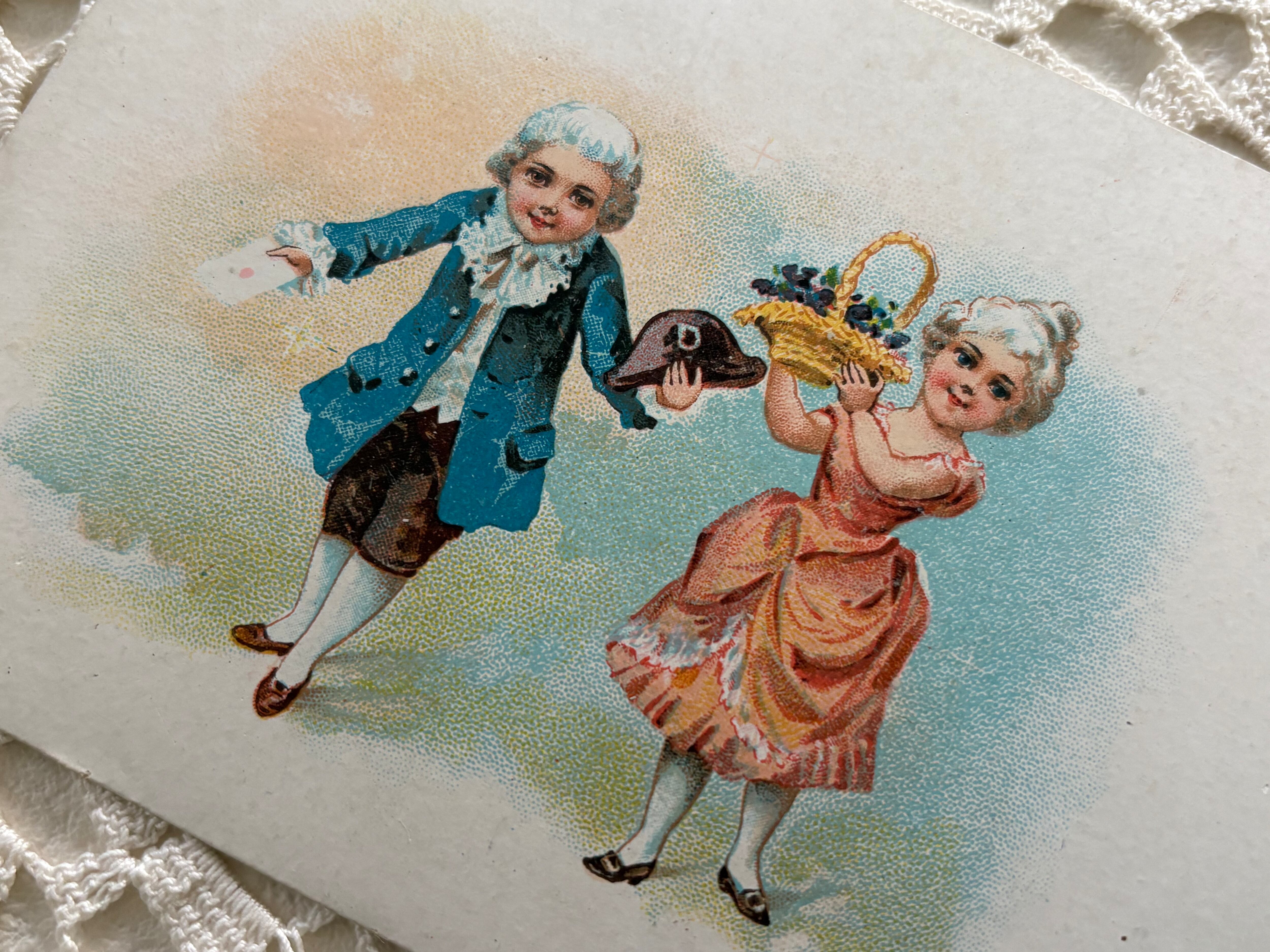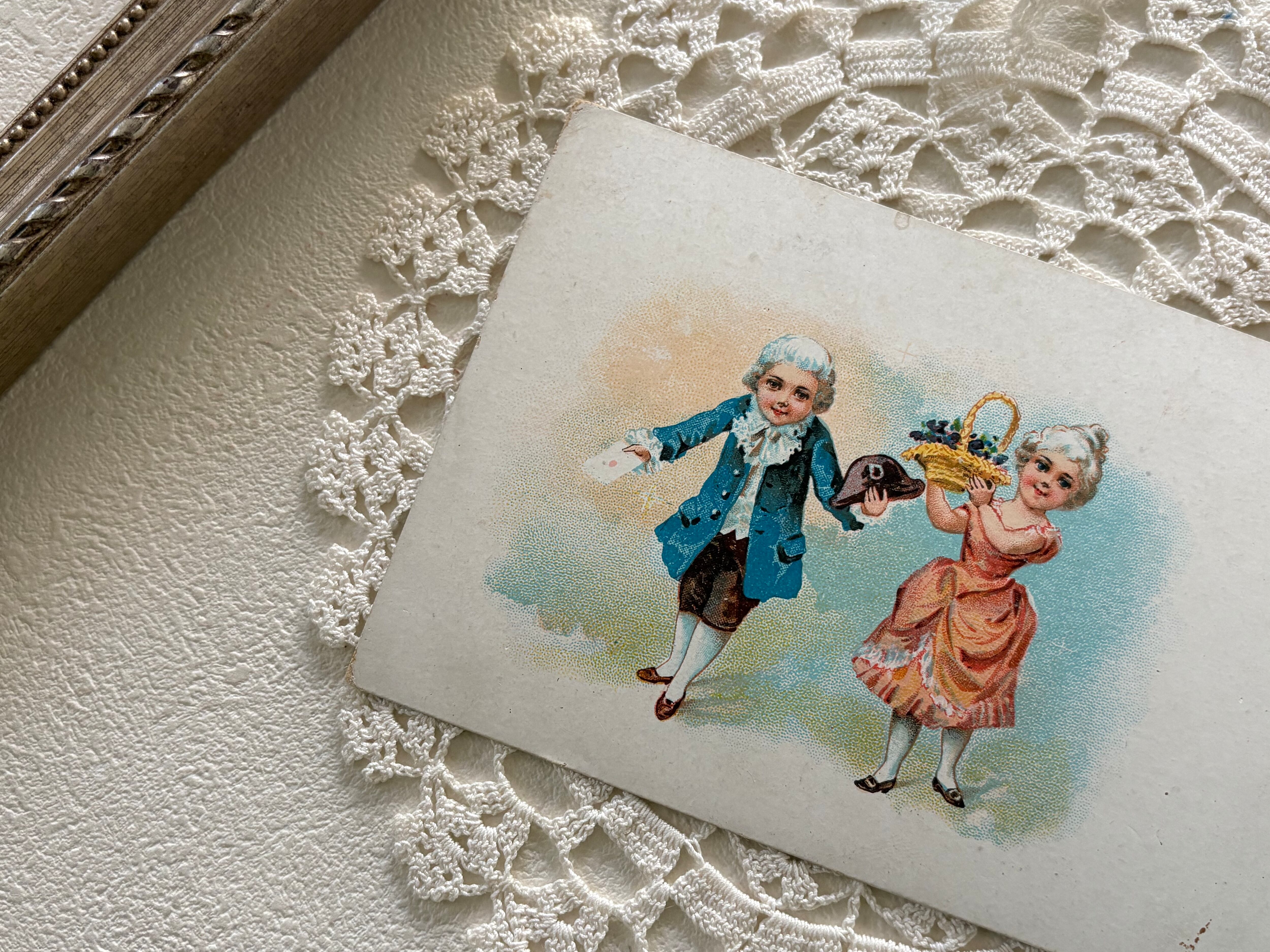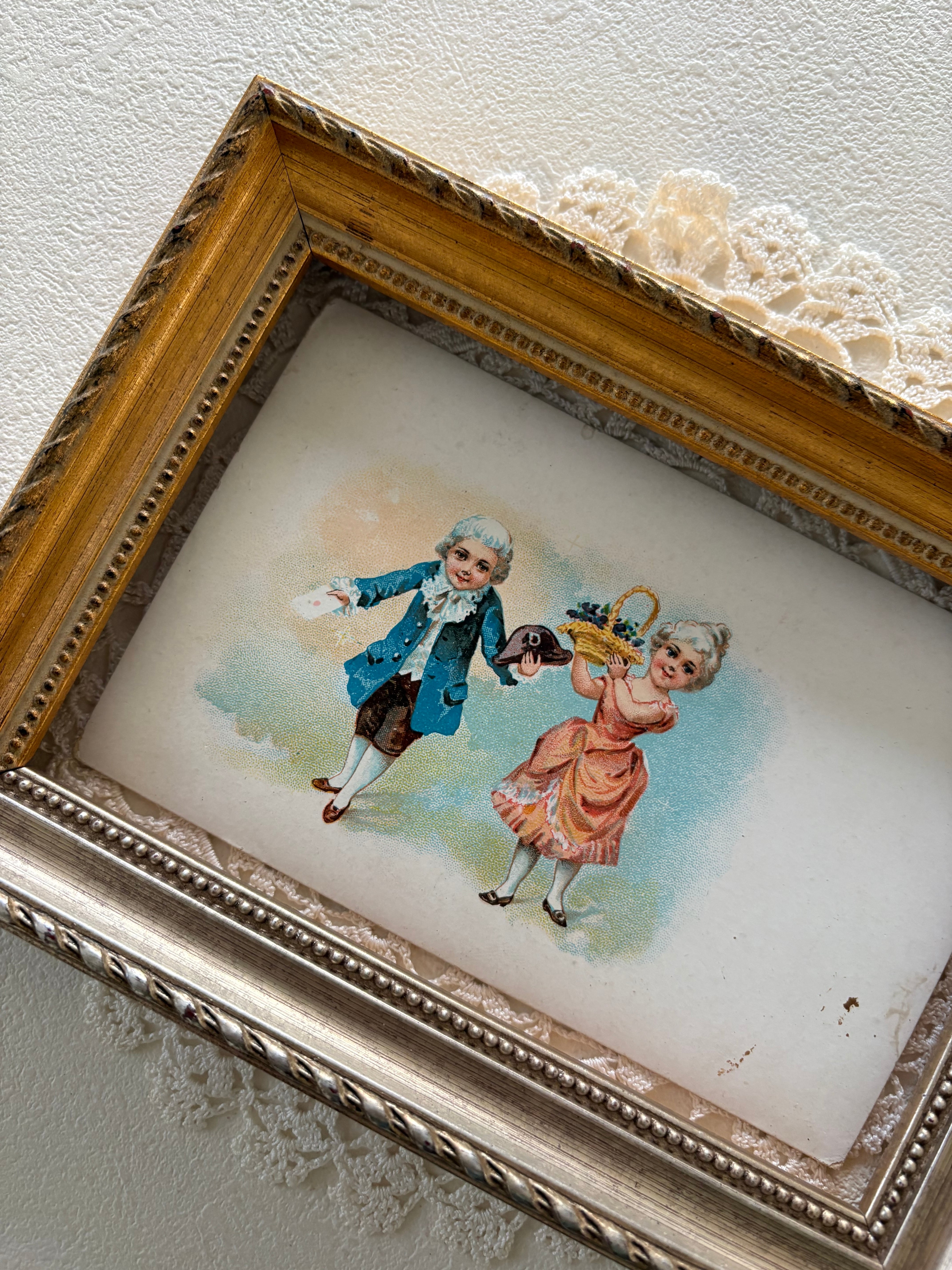 アンティークポストカード 小さな可愛いカップル 貴族柄 フランス 額装 インテリア コレクション コラージュ