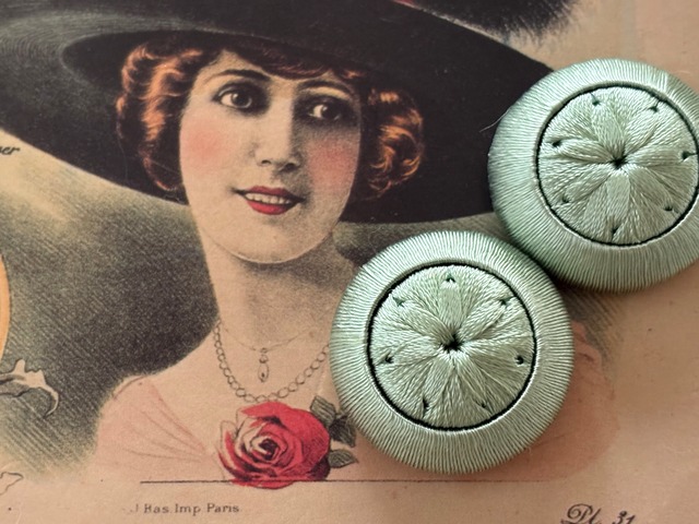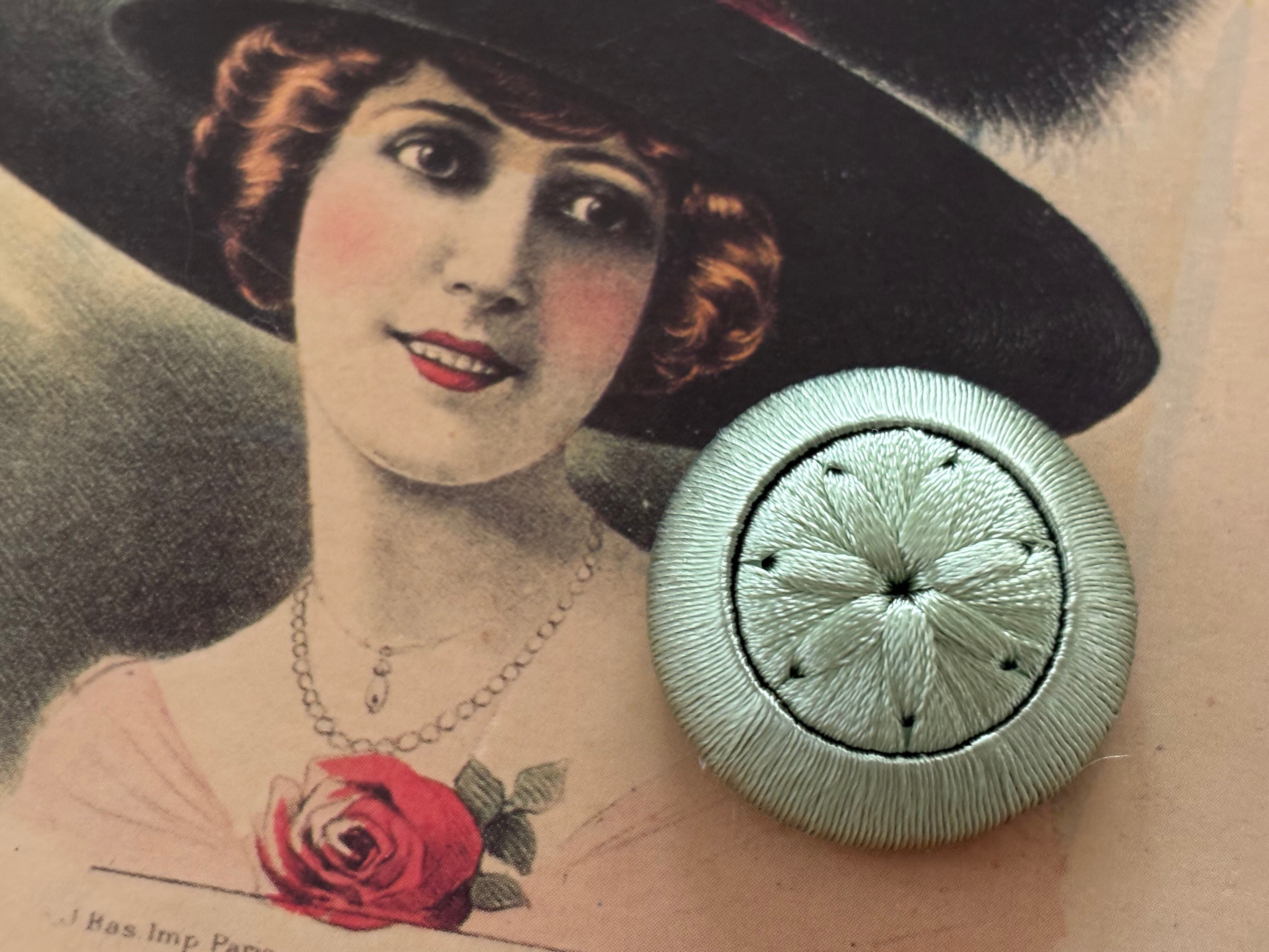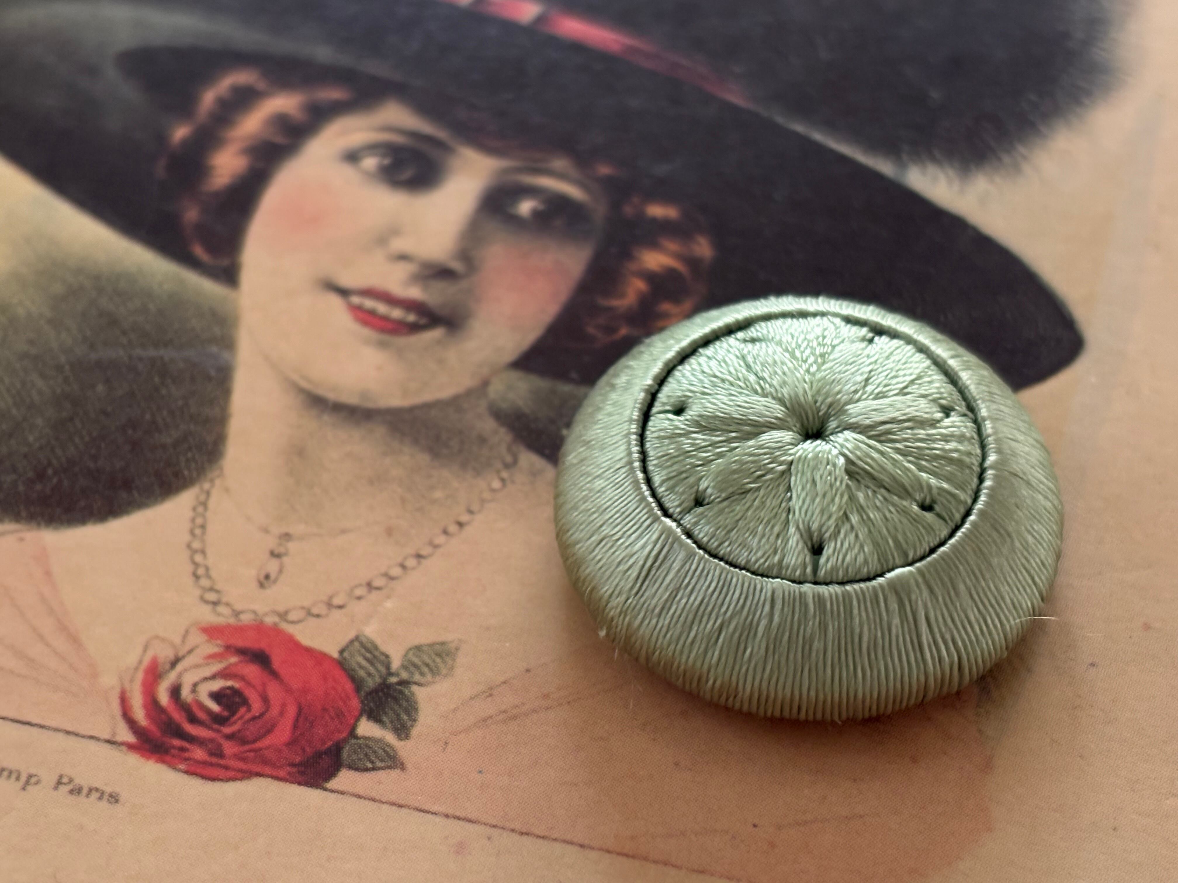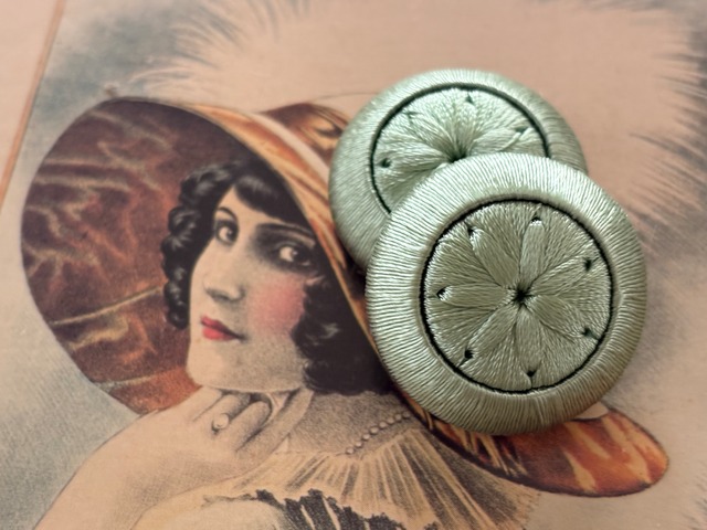 艶やかでエレガントな淡いグリーンカラーのコードボタン。