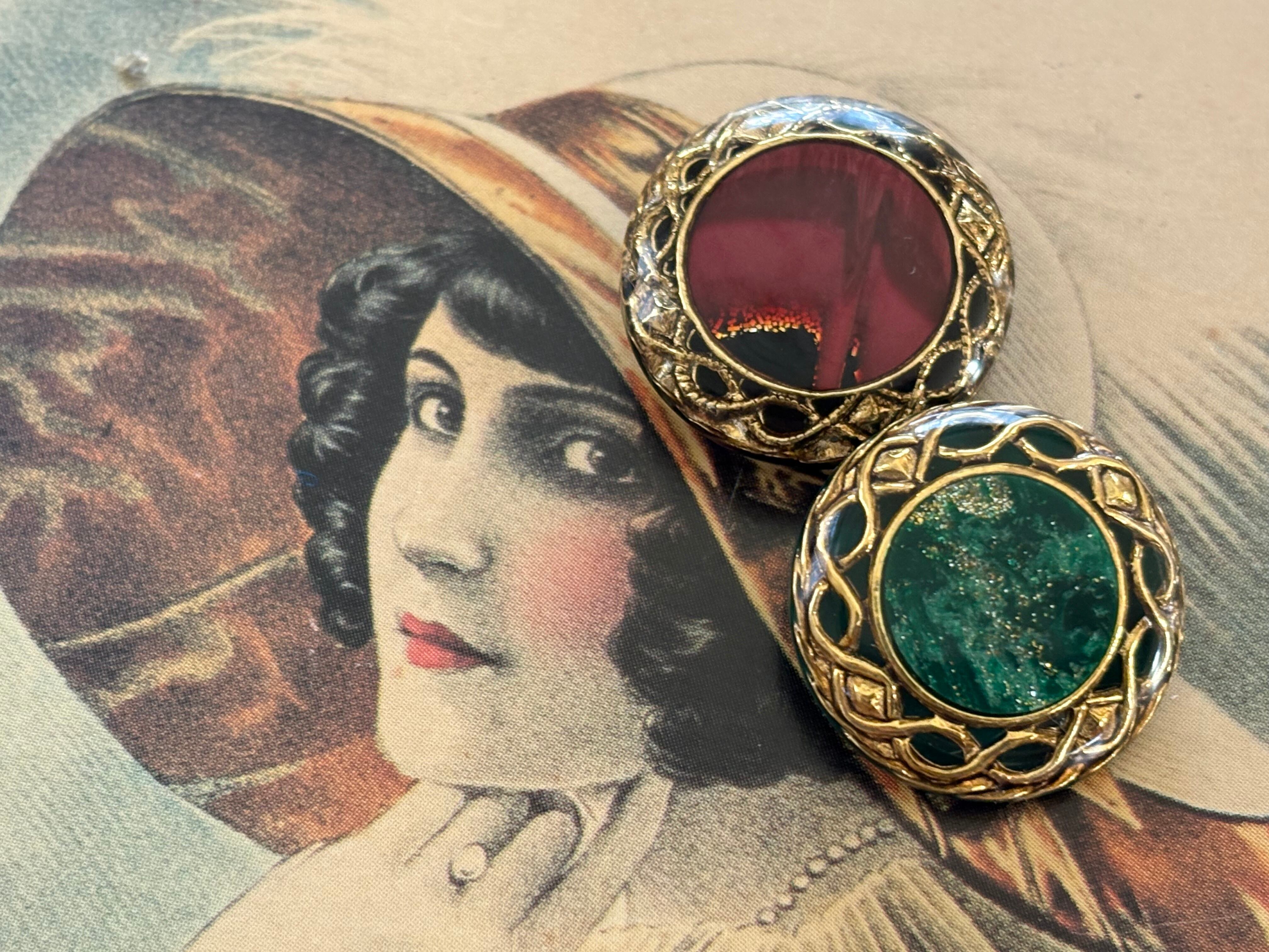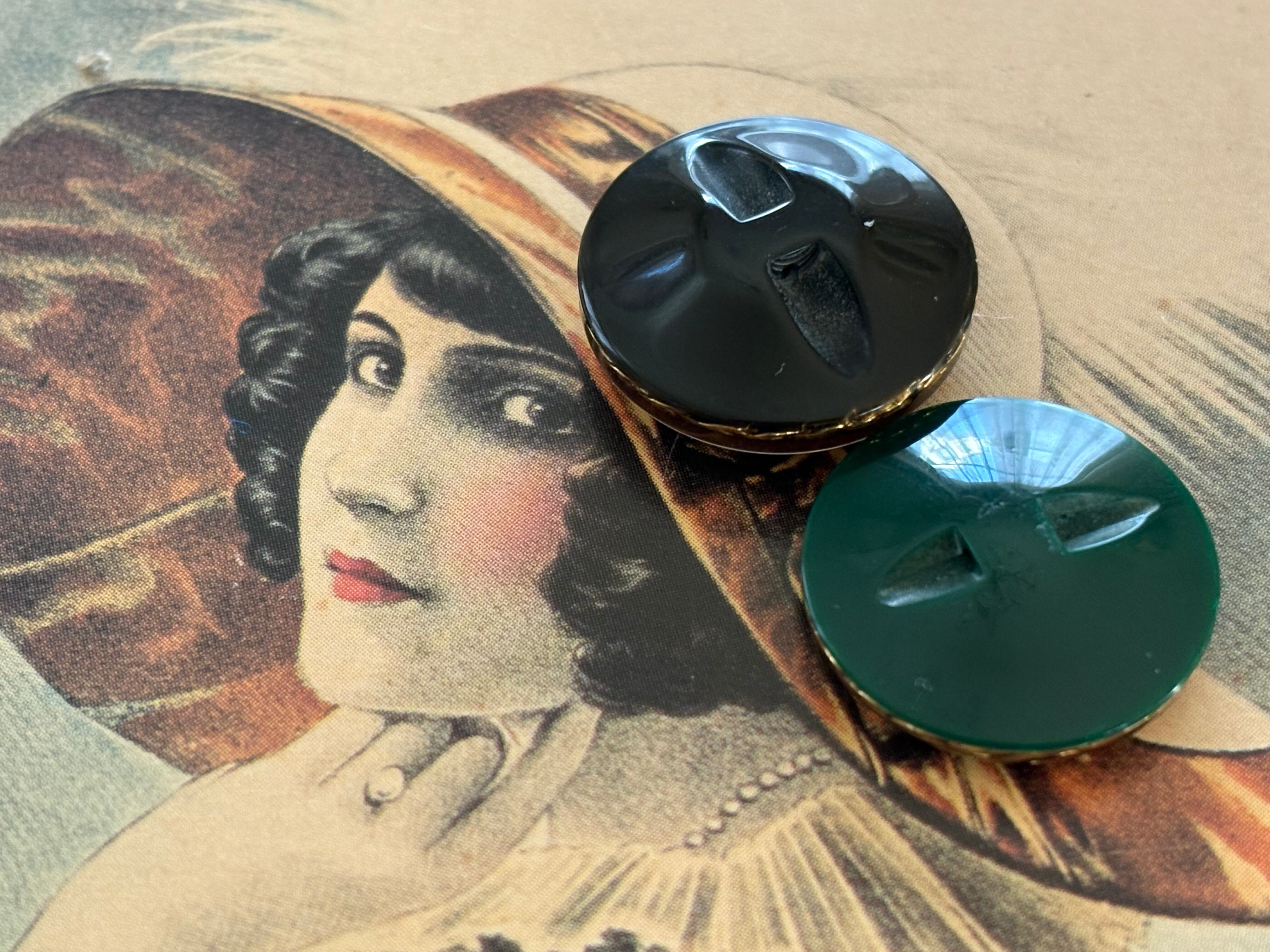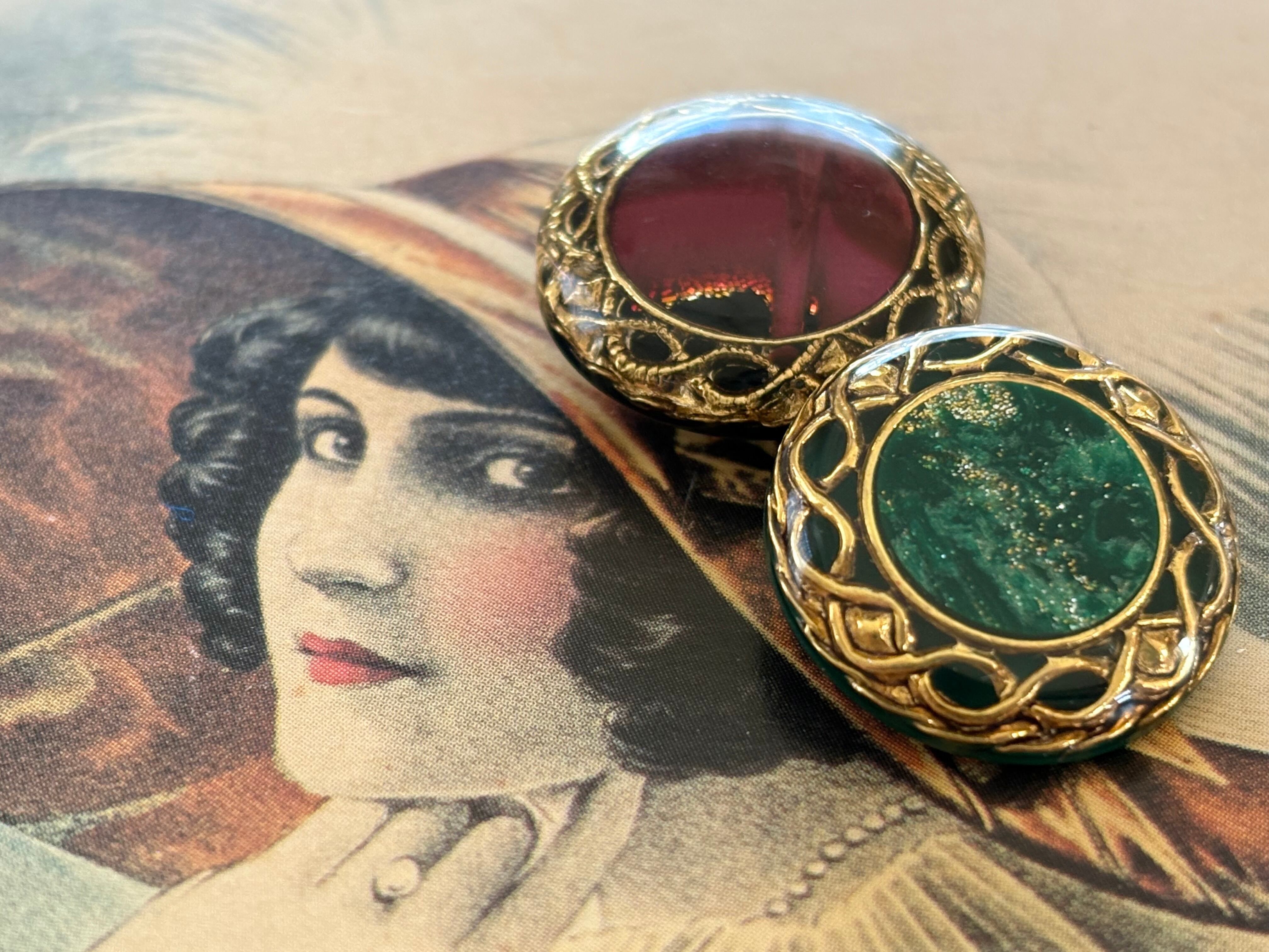 20mm Japanese ヴィンテージボタン グリーン/レッド ×ゴールド グリッター 樹脂クボタン レトロ アクセサリーパーツ 装飾材 カルトナージュ
