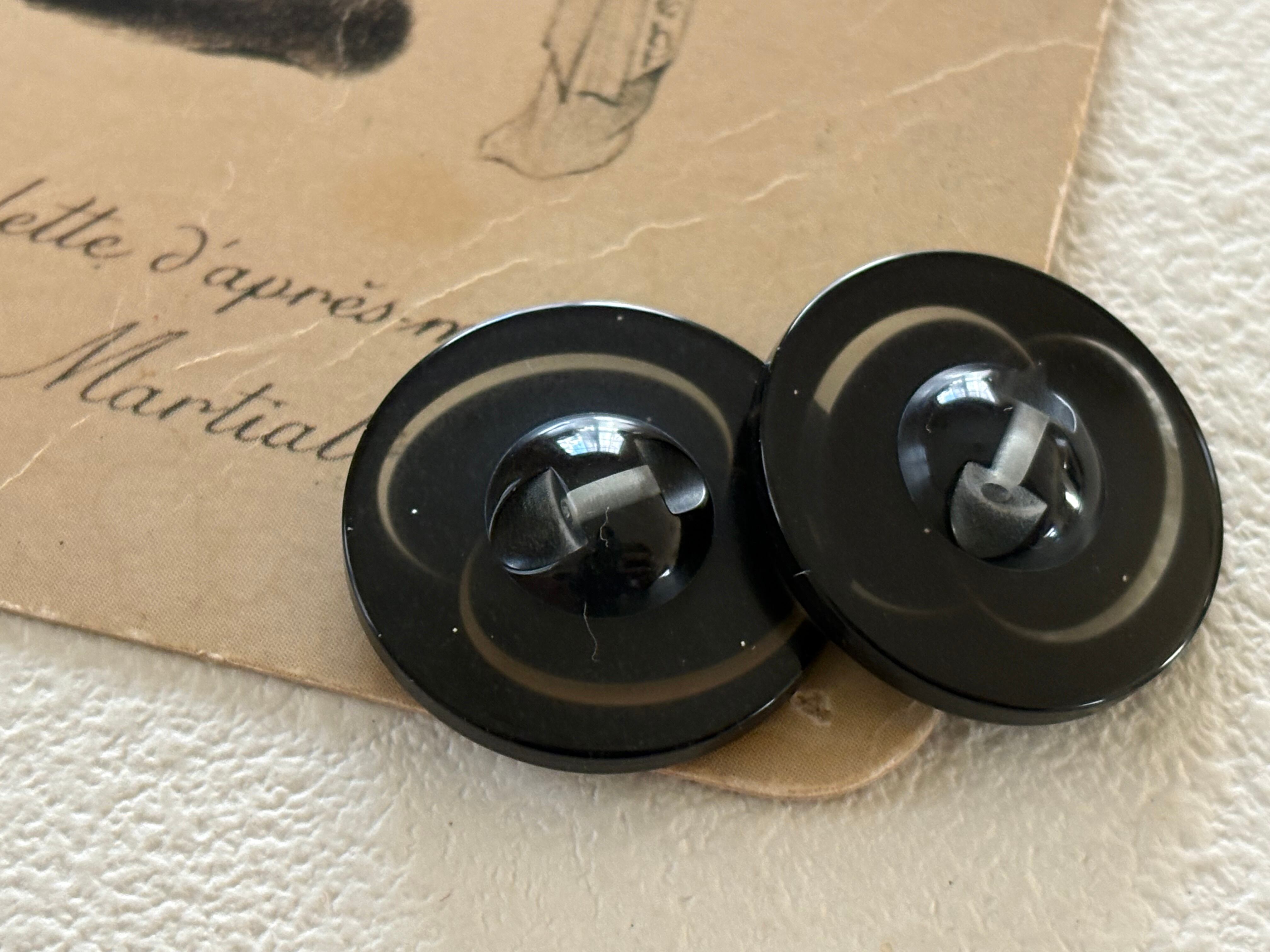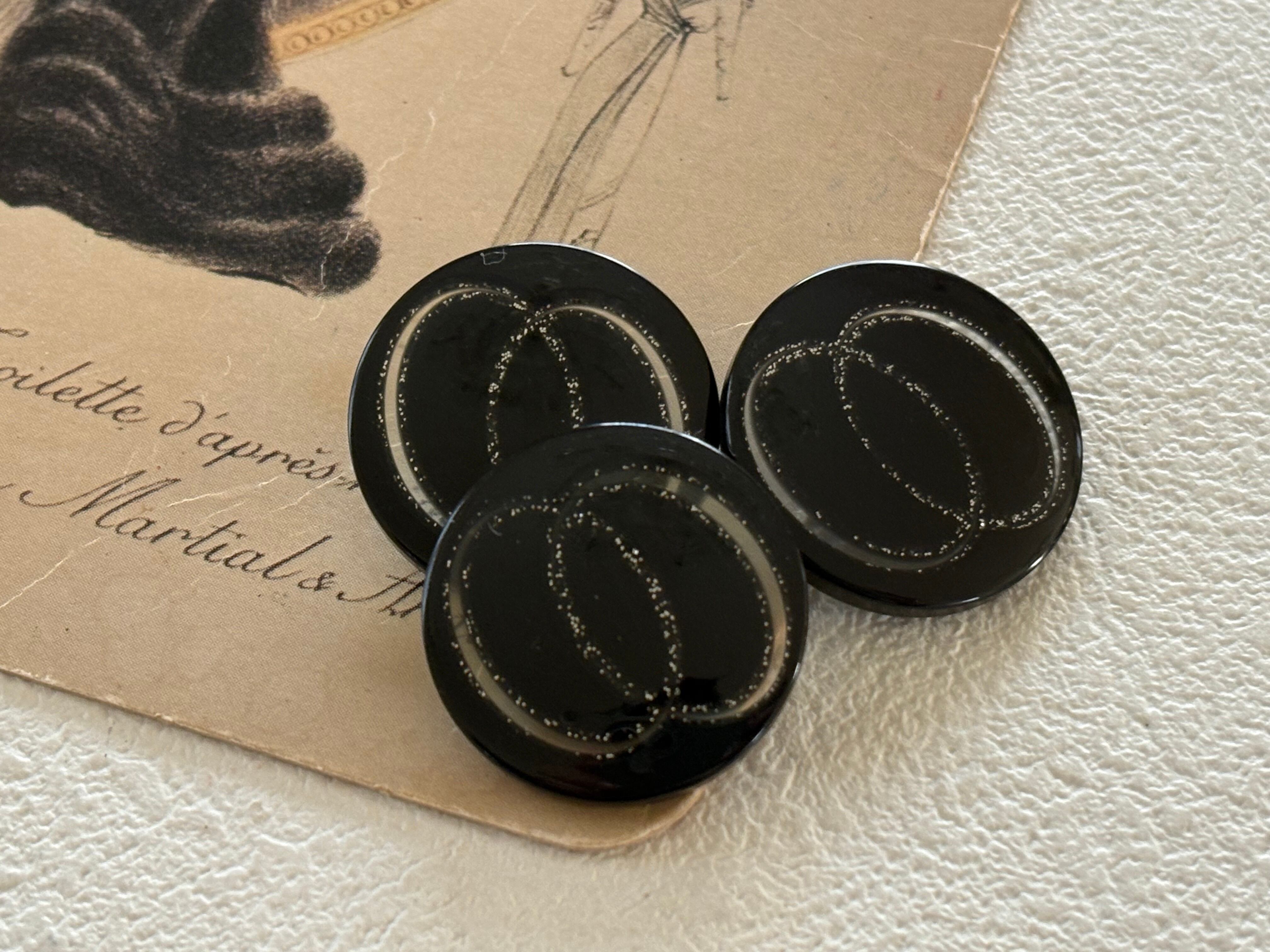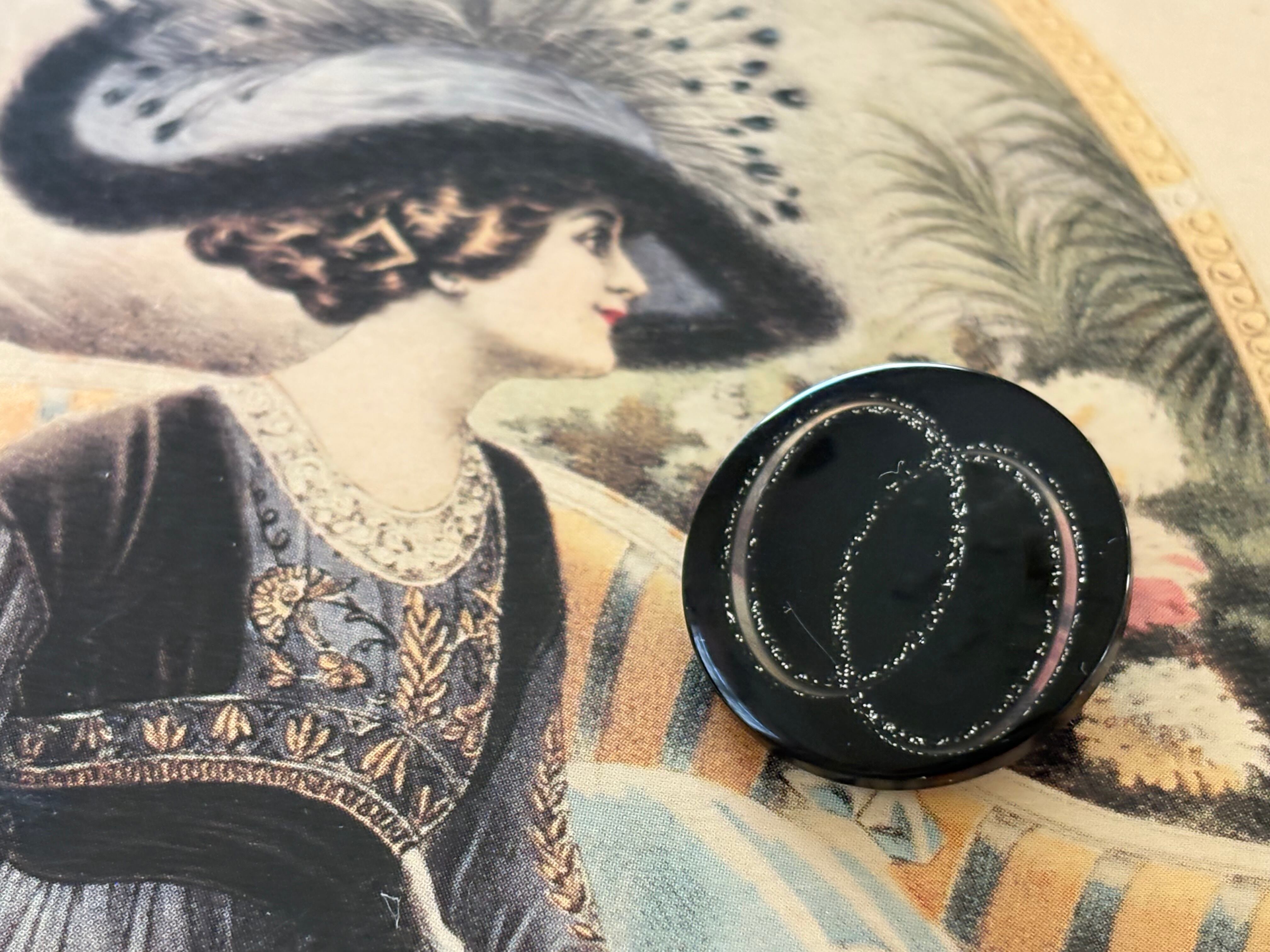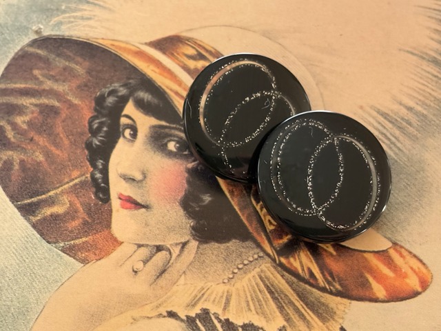 22mm Japanese ヴィンテージボタン ブラック×シルバー 樹脂ボタン レトロ アクセサリーパーツ 装飾材 カルトナージュ