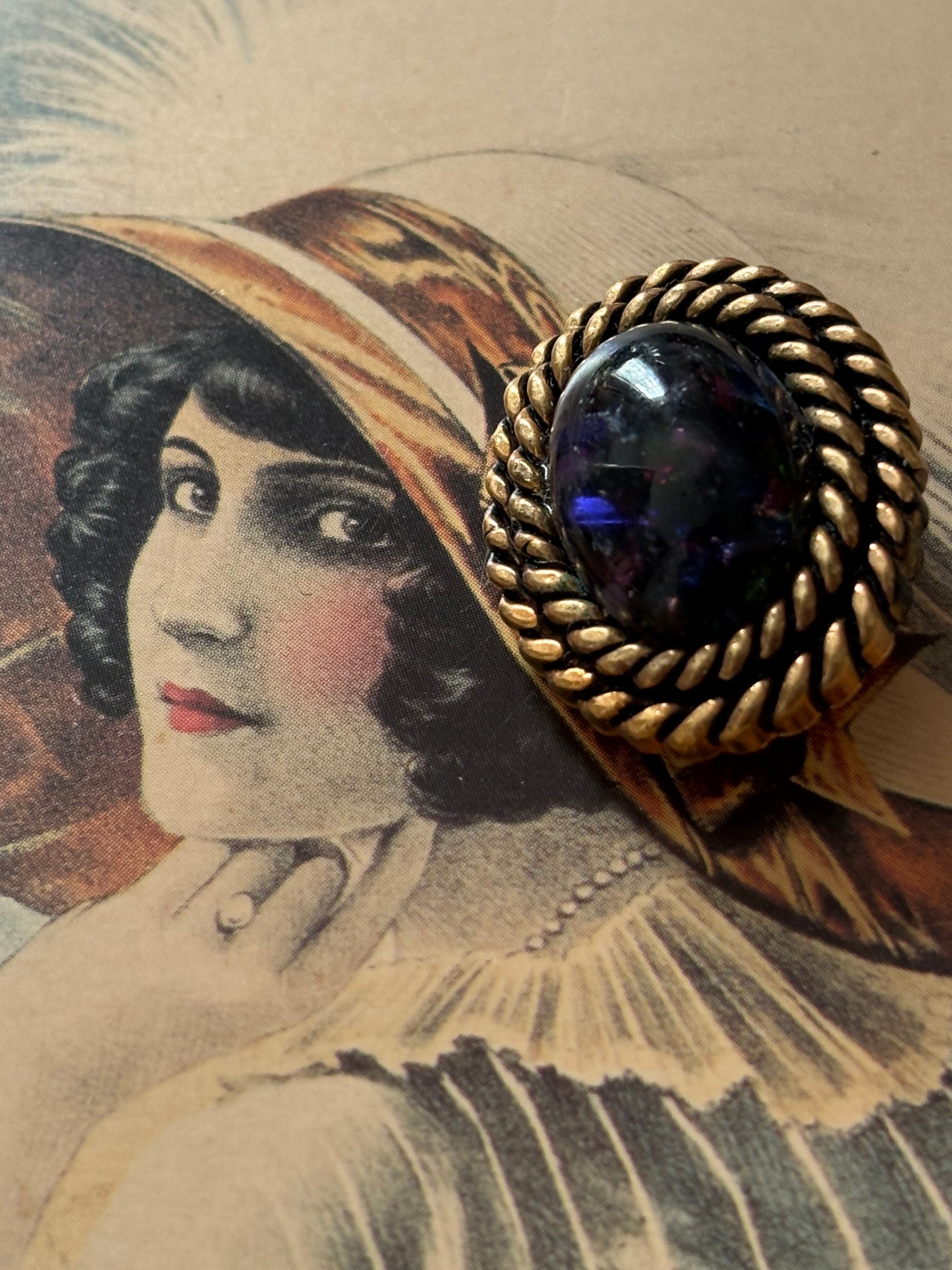 内側にホログラムの入ったパープル系のシックな雰囲気あるカボション、周りをロープのようなデザイン。