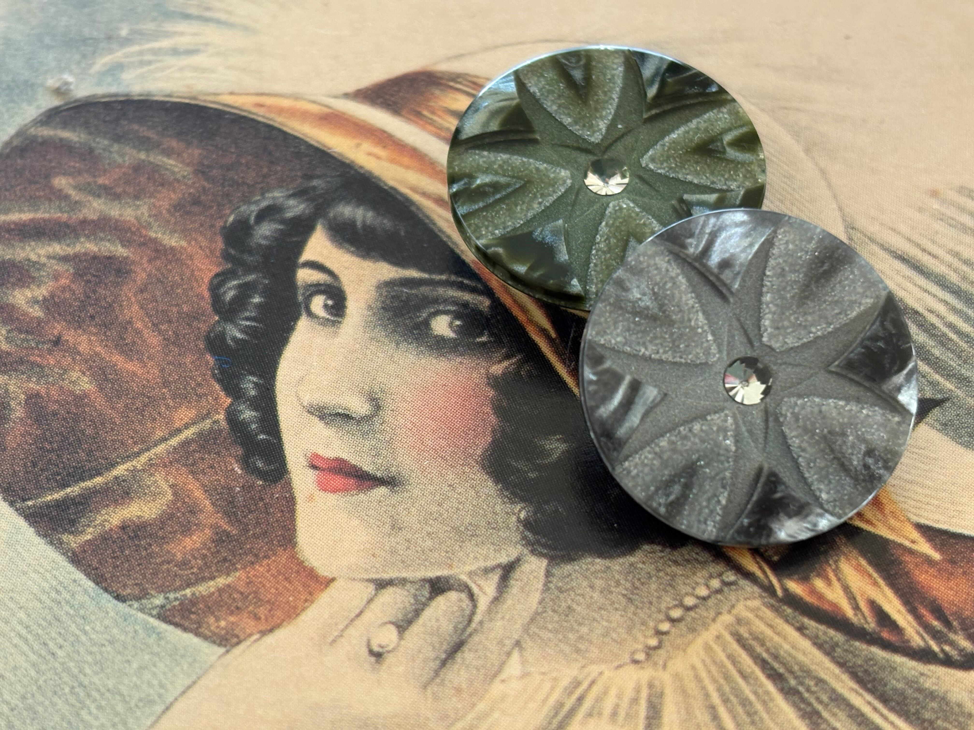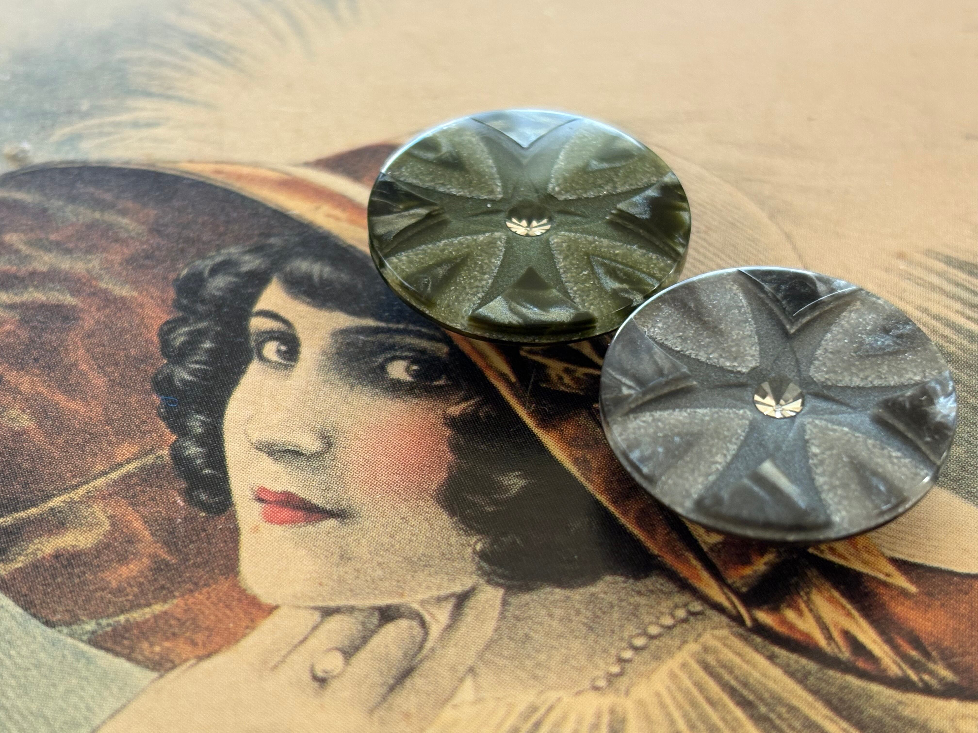 艶やかで上品、シックなカーキ、グレーカラーの樹脂ボタン。