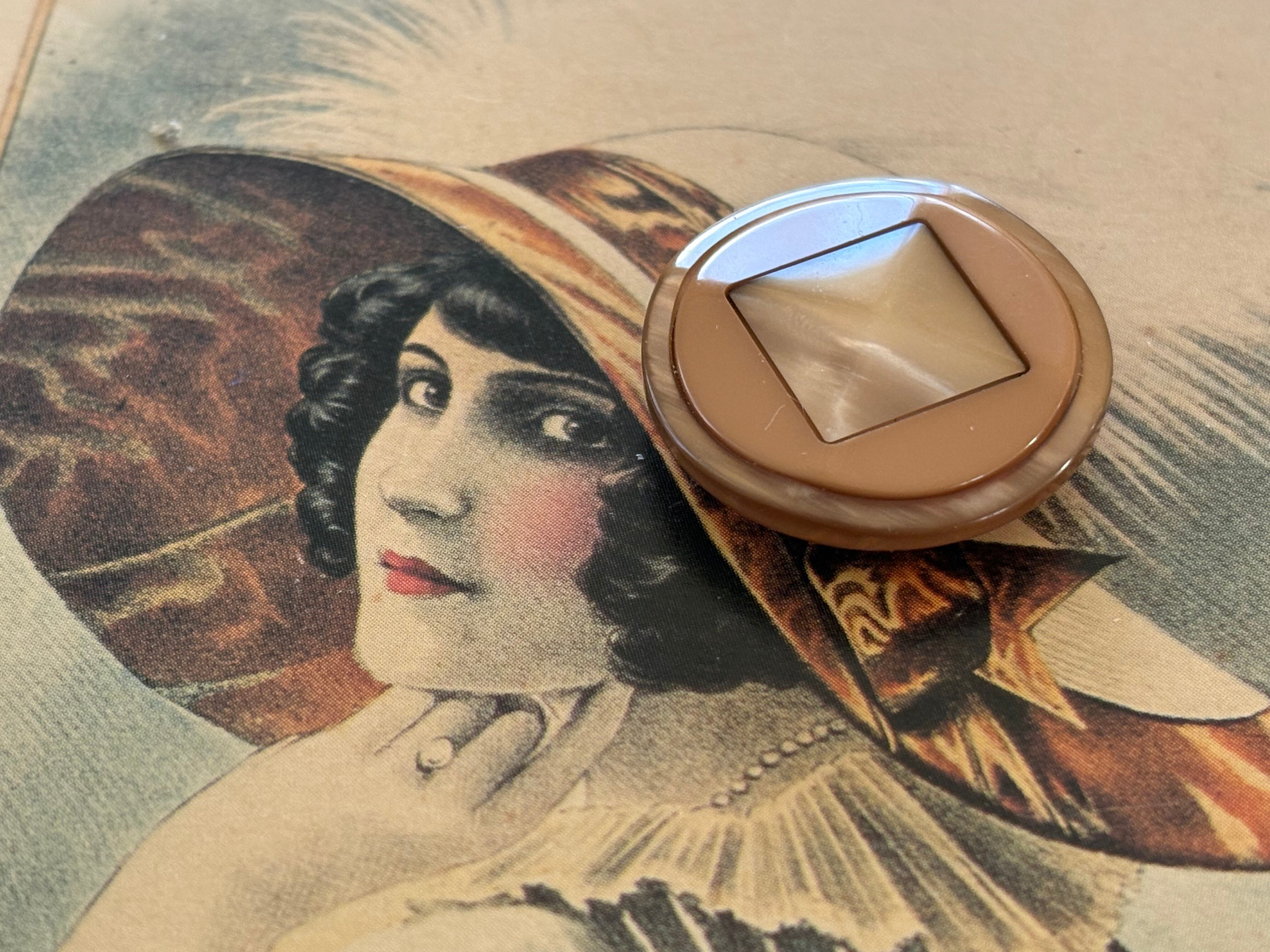 24mm Japanese ヴィンテージボタン ベージュ シェル調 樹脂ボタン レトロ アクセサリーパーツ 装飾材 カルトナージュ