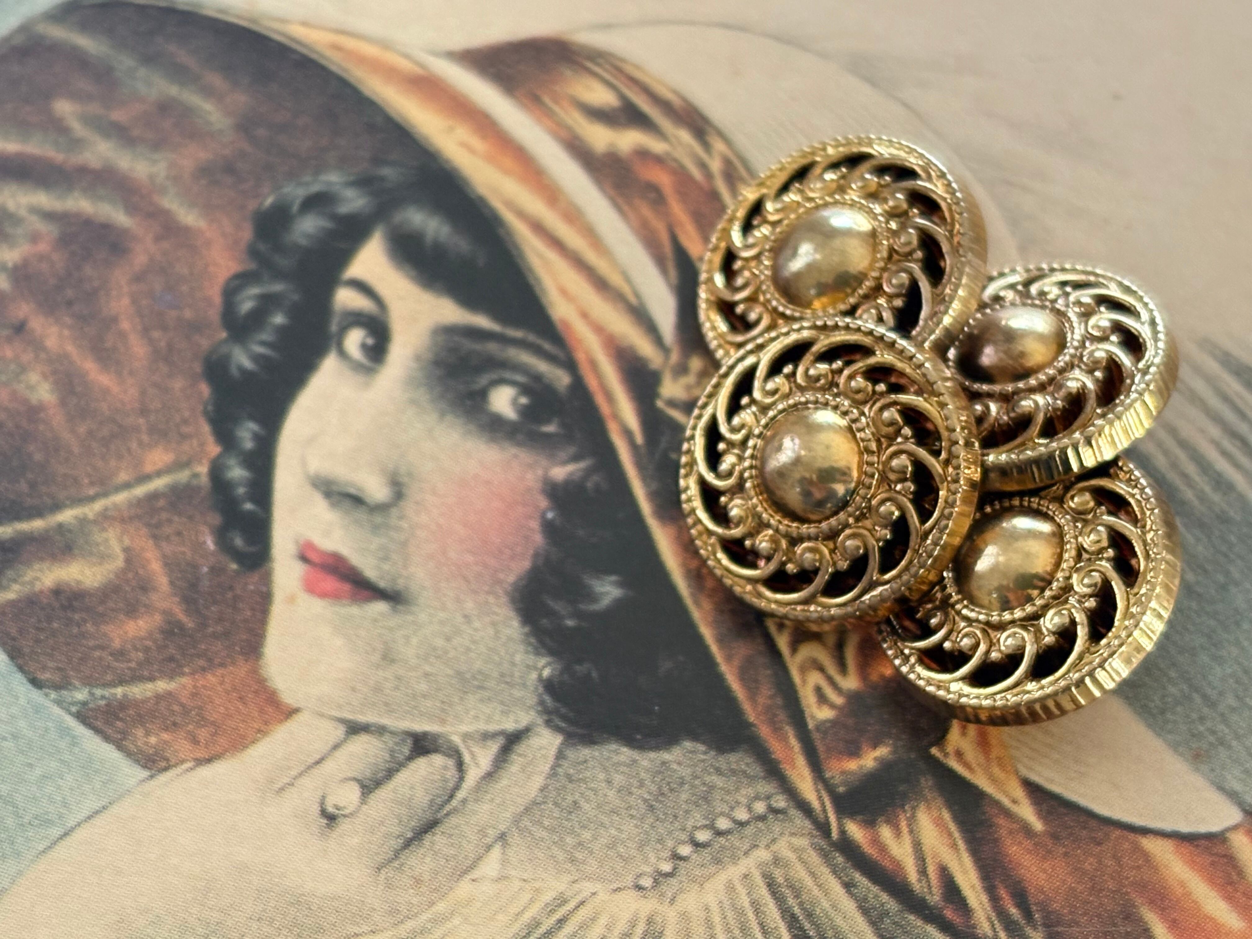 小さなボタンですが、メダリオンのような華やかで美しいデザイン。