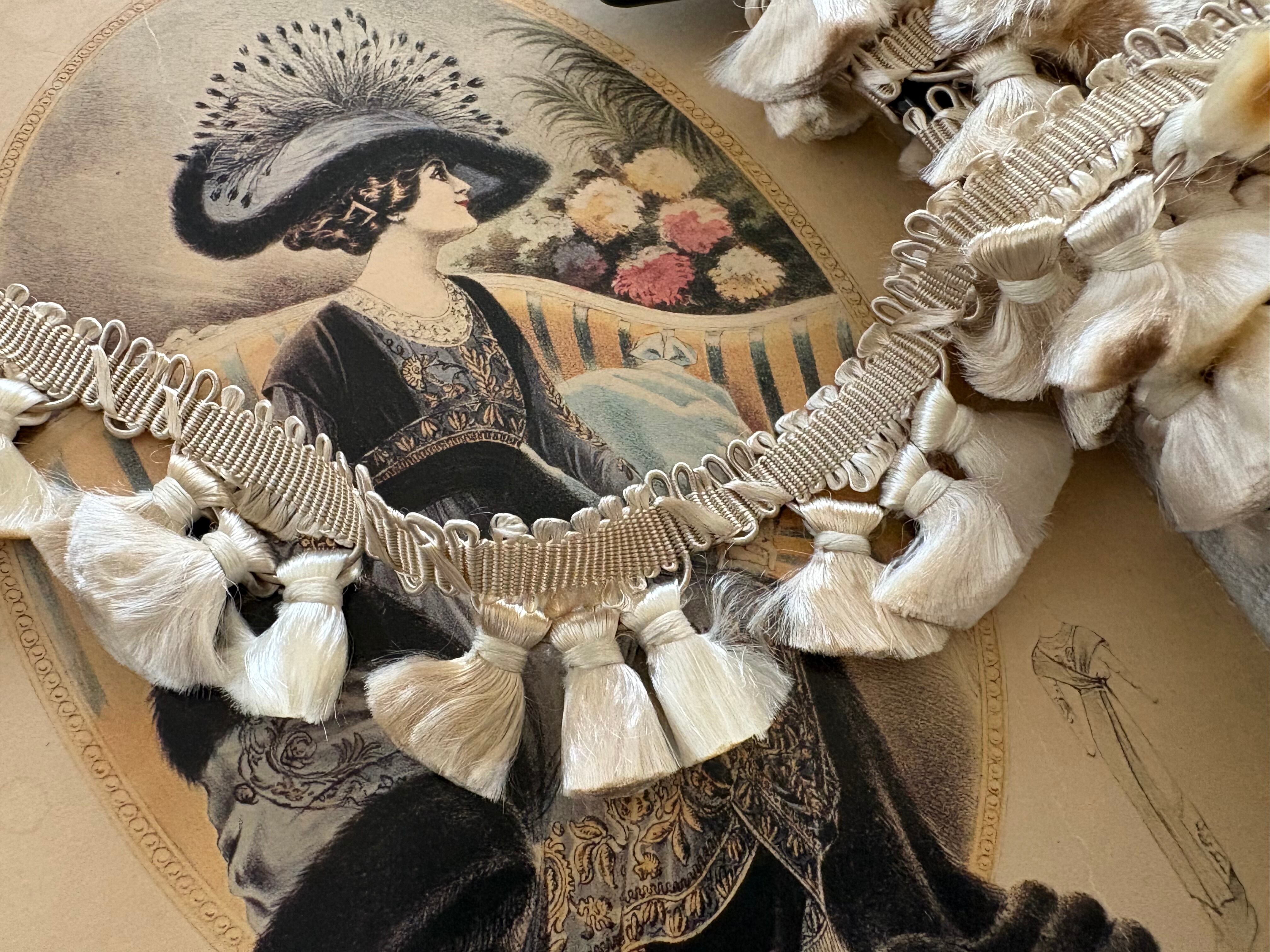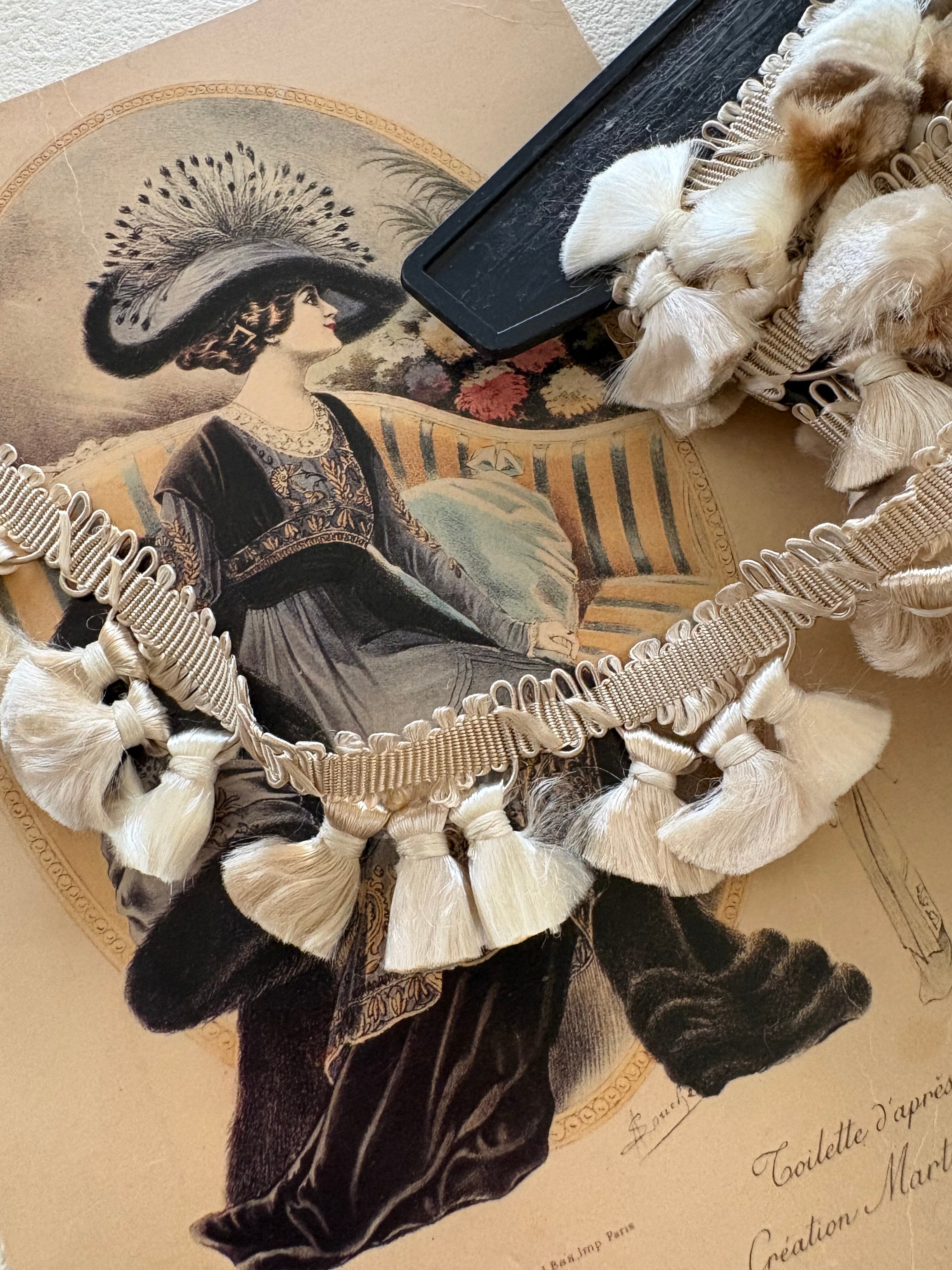 フランスVintage タッセルブレード トリム エレガントベージュ×アイボリー 50cm/カット カルトナージュ デコレーション材 コレクション