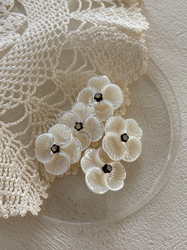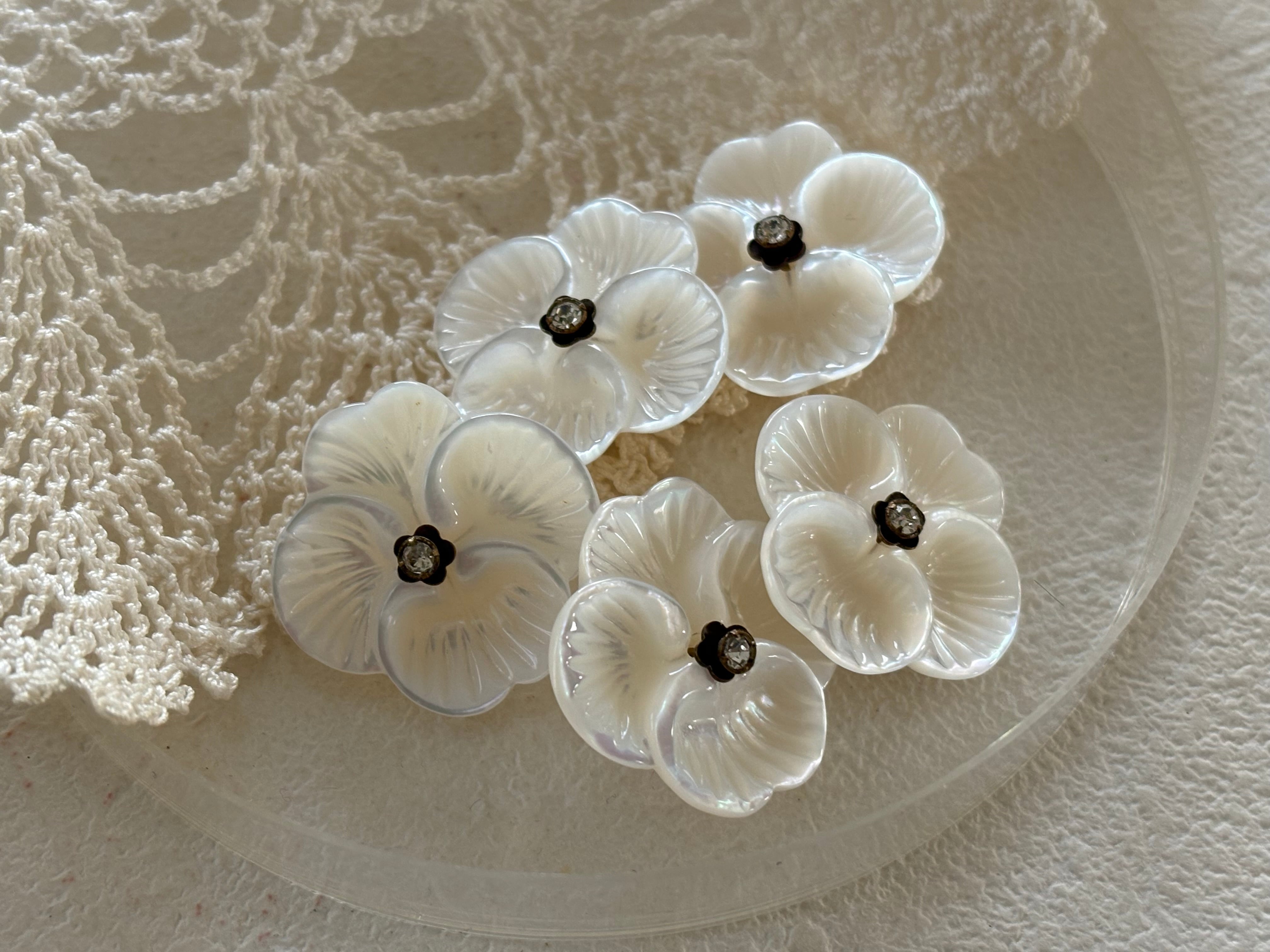 ・商品名 マザーオブパールのパンジー型パーツ ホワイト
