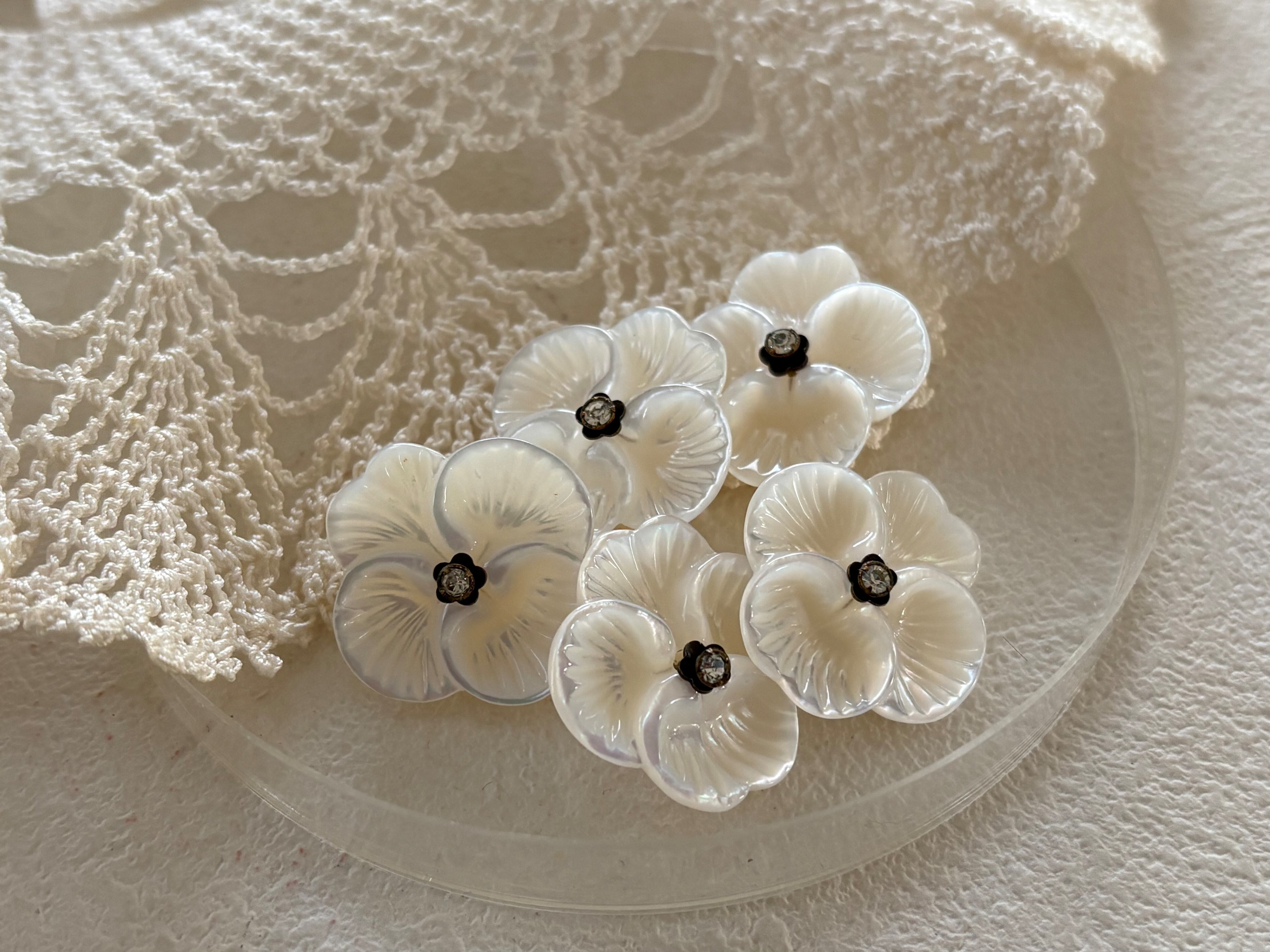 輸入デザインパーツマザーオブパール シェル パンジー 22mm×22mm ホワイト パーツ アクセサリーパーツ カルトナージュ デコレーション材