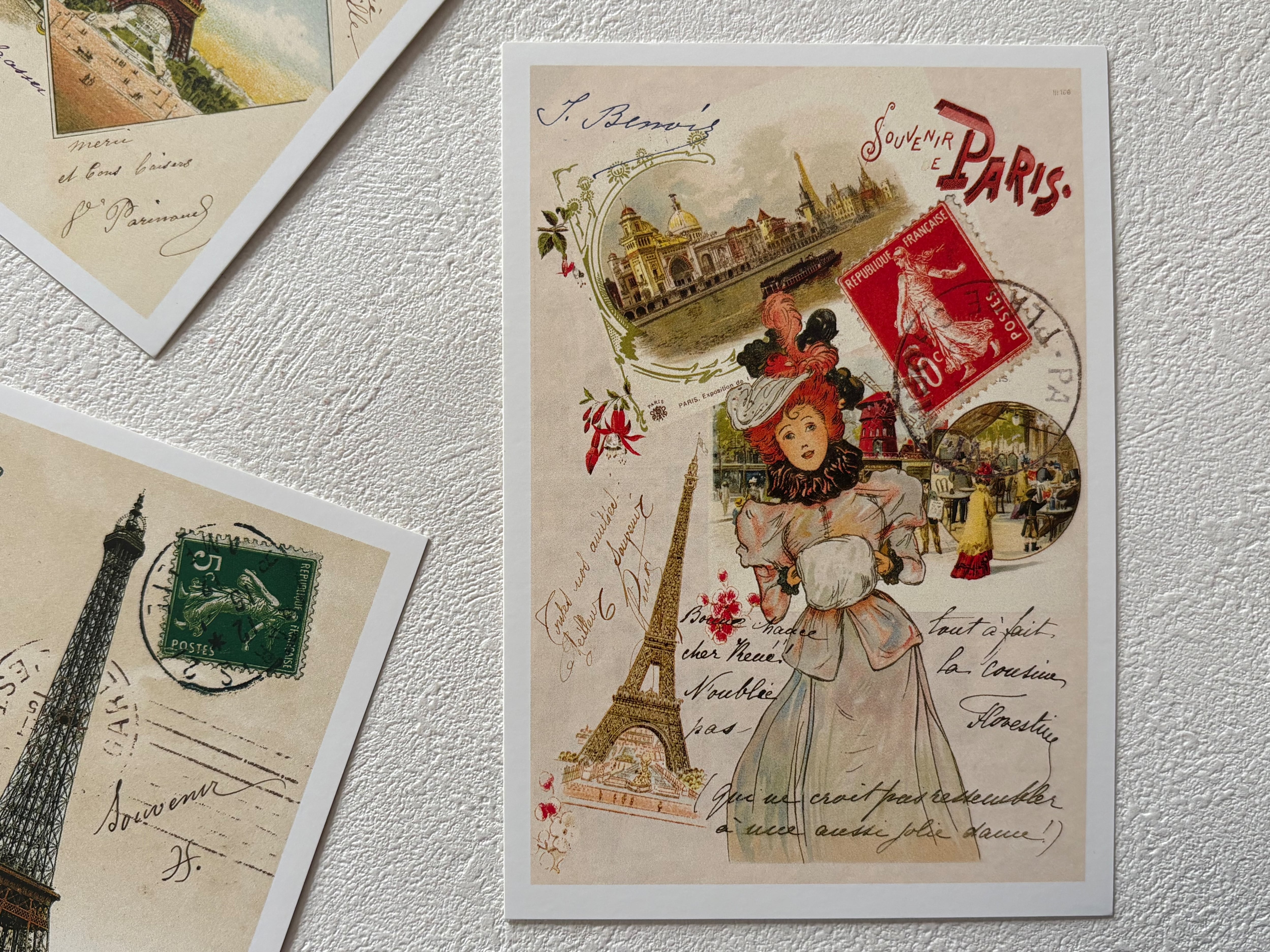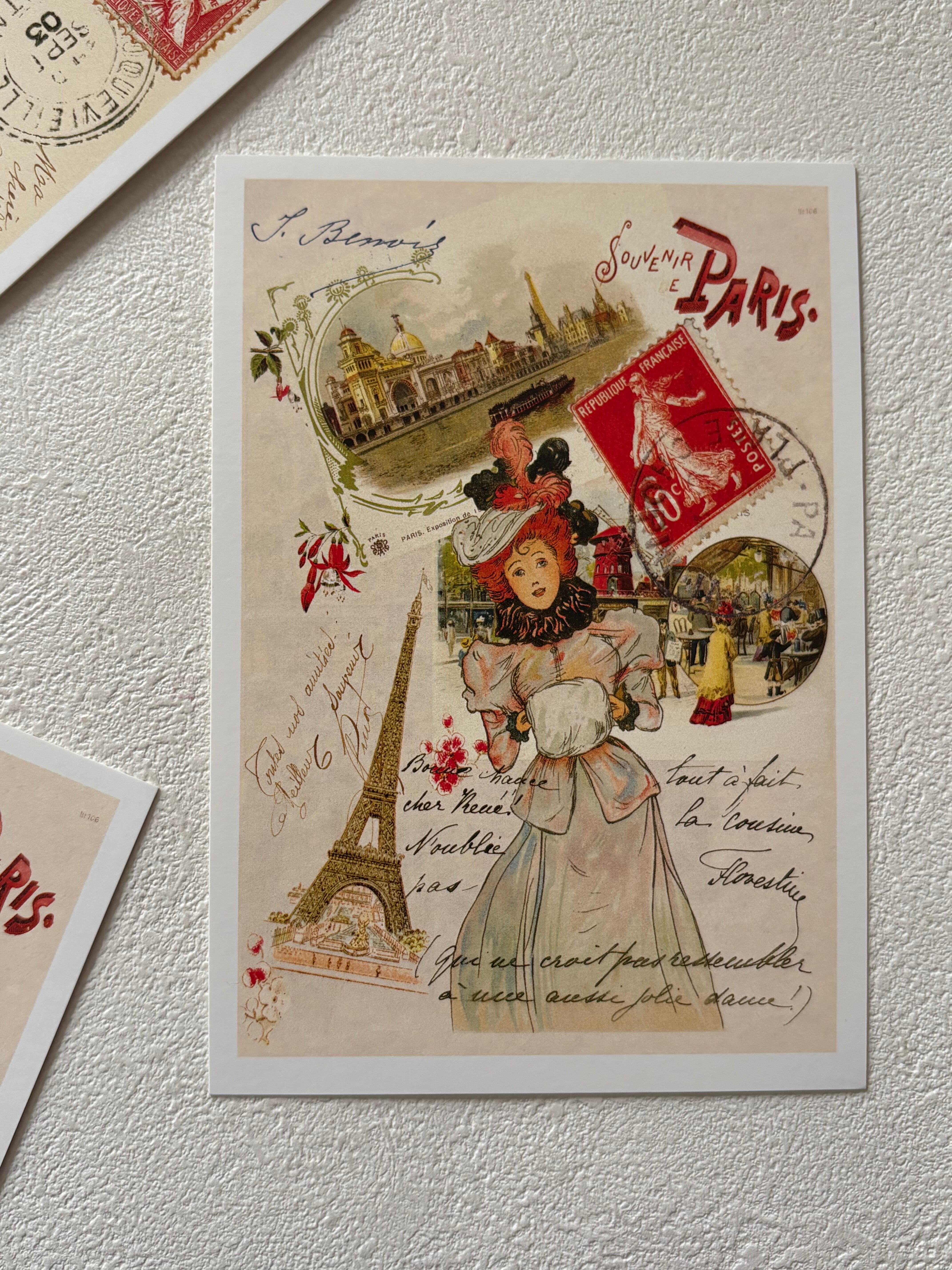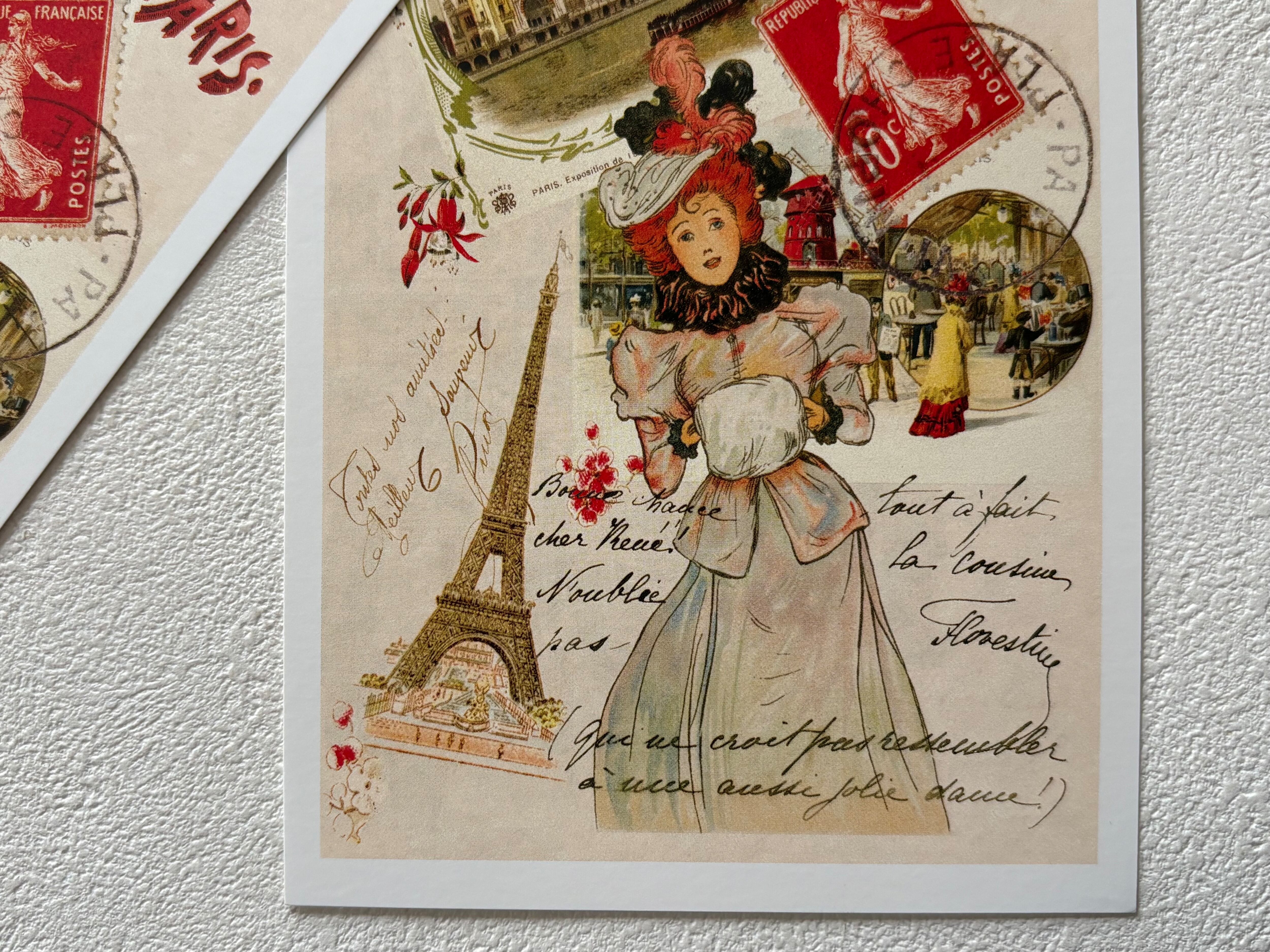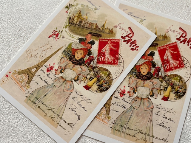 フランス雑貨 ポストカード G エッフェル塔 セーヌ川 バトームッシュ サクレクール寺院 マダム 額装 インテリア小物 文具