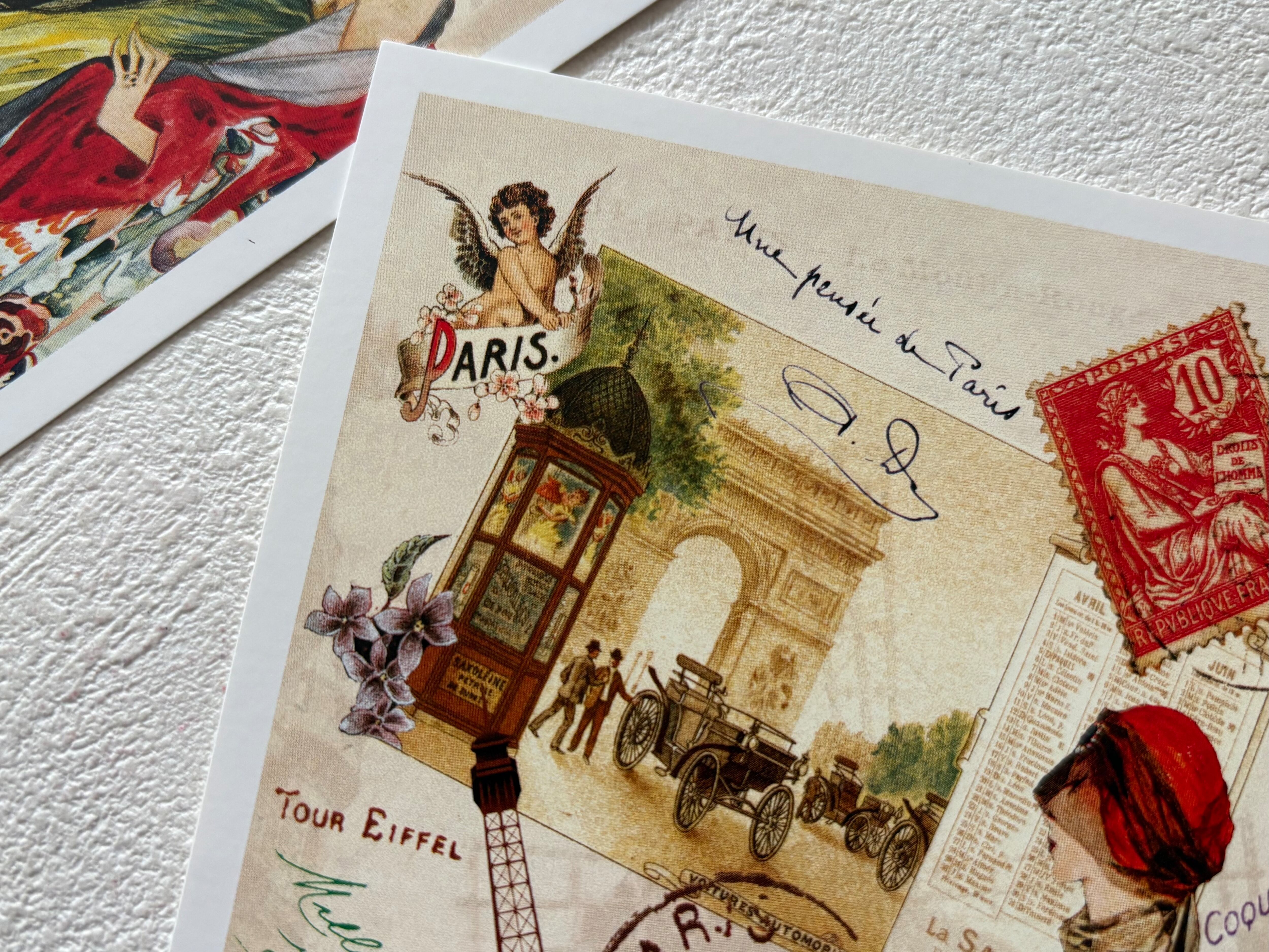 フランス雑貨 ポストカード H エッフェル塔 凱旋門 violette すみれ 天使 Ange マダム 額装 インテリア小物 文具