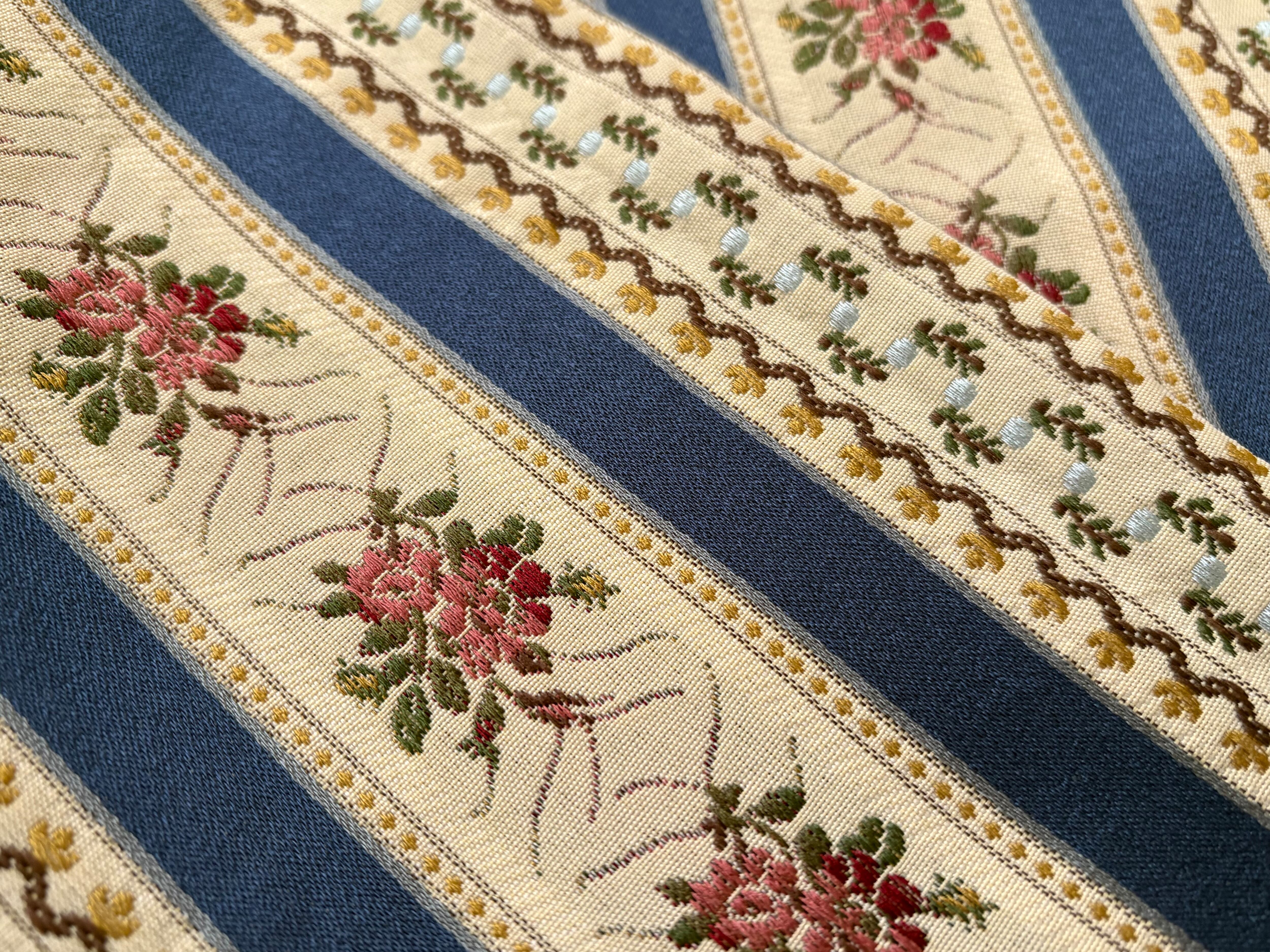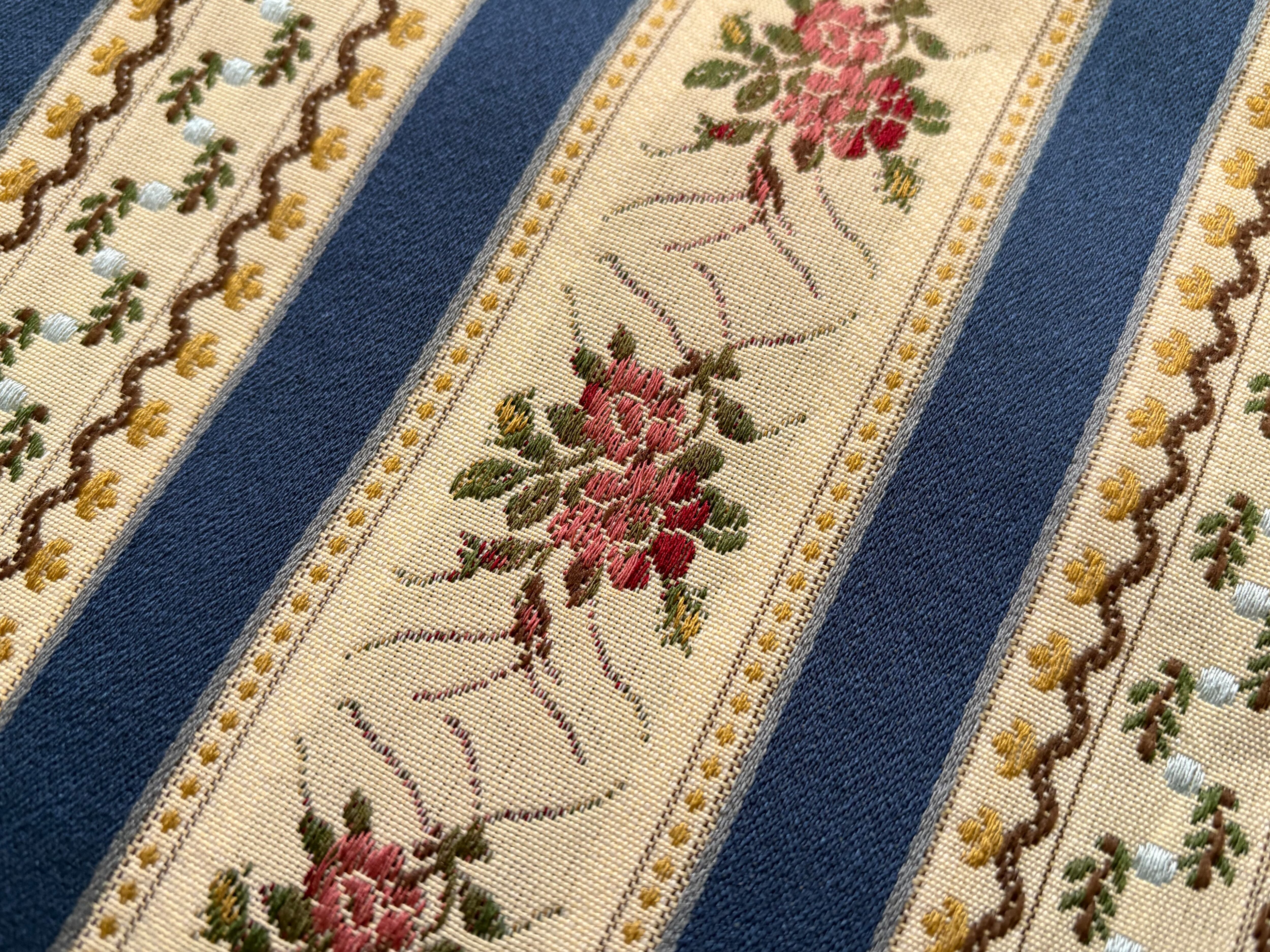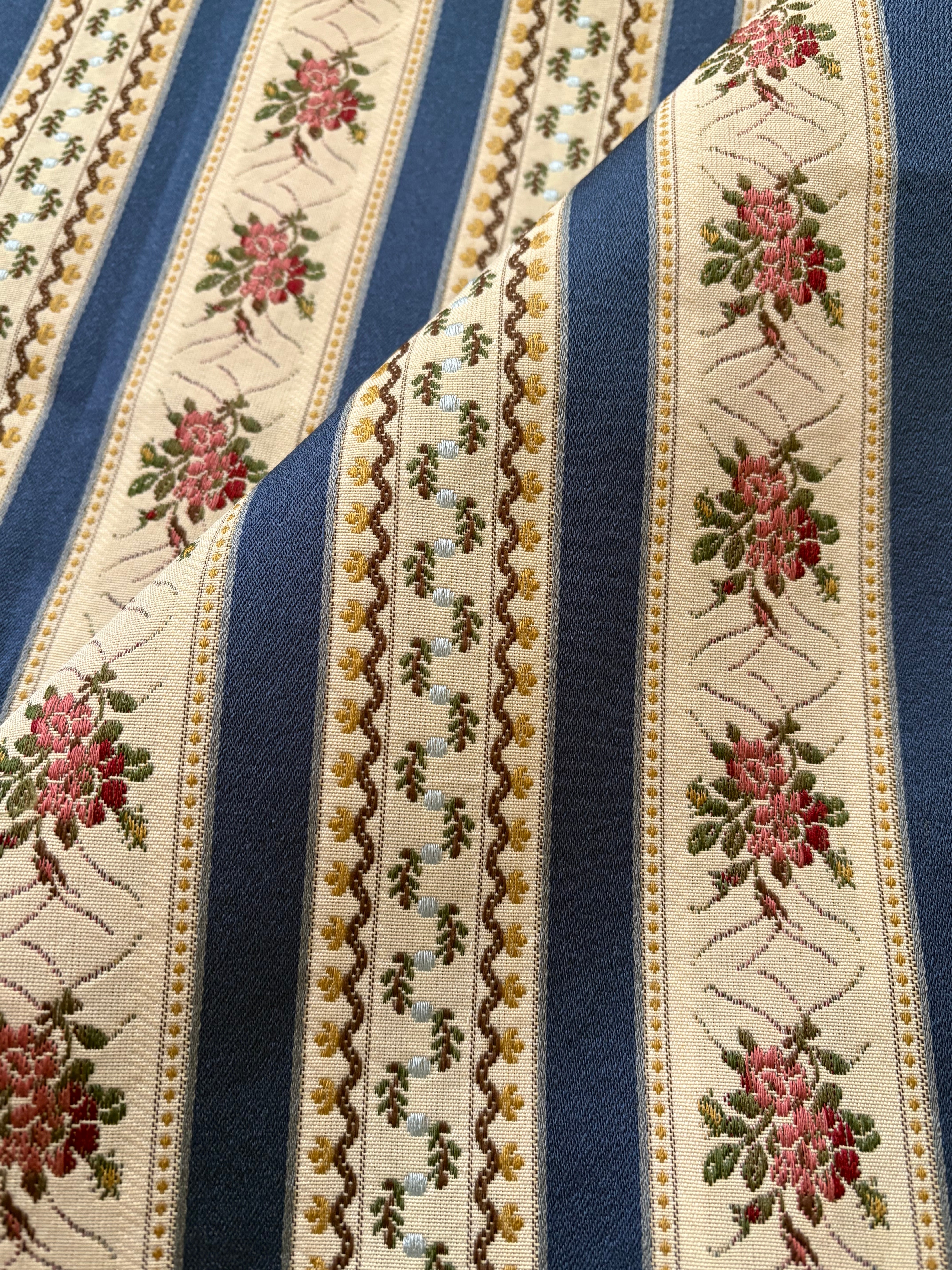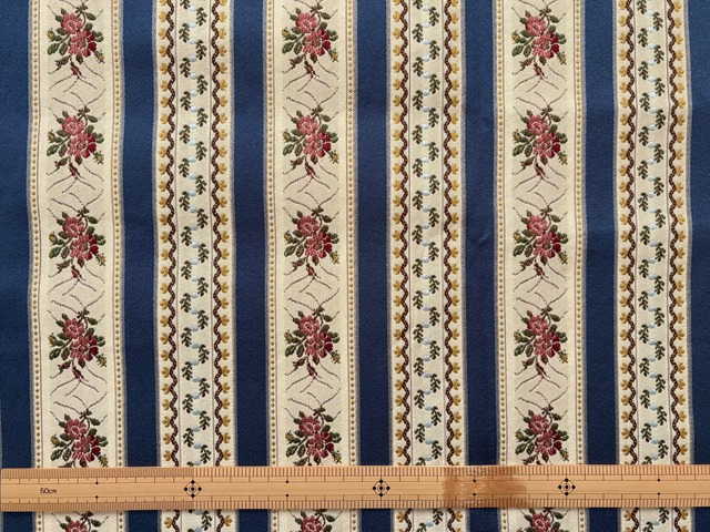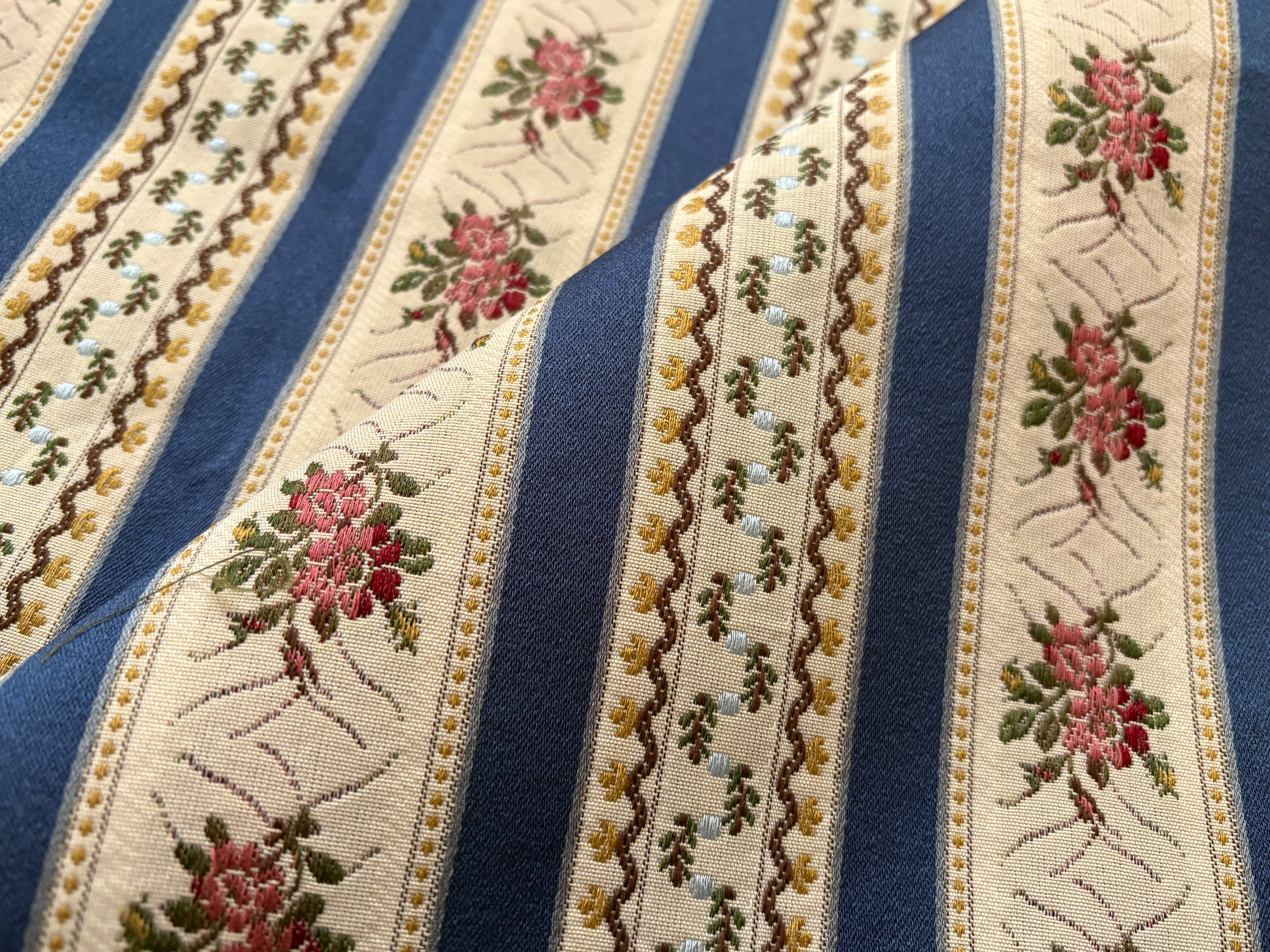 フランス 輸入インテリアファブリック ジャガード ブルー系 花柄 ボタニカル ストライプ カルトナージュ 茶箱 スツール