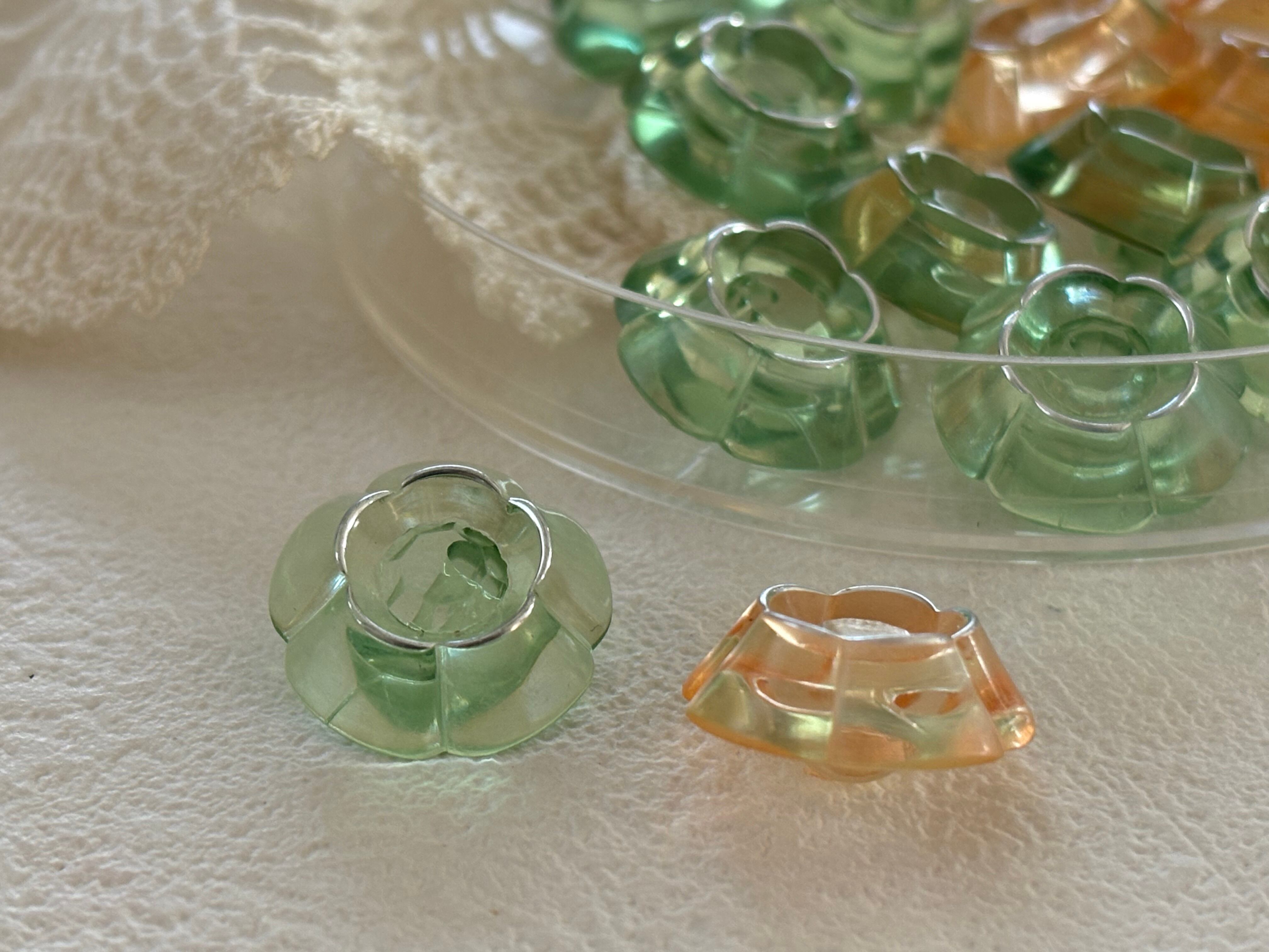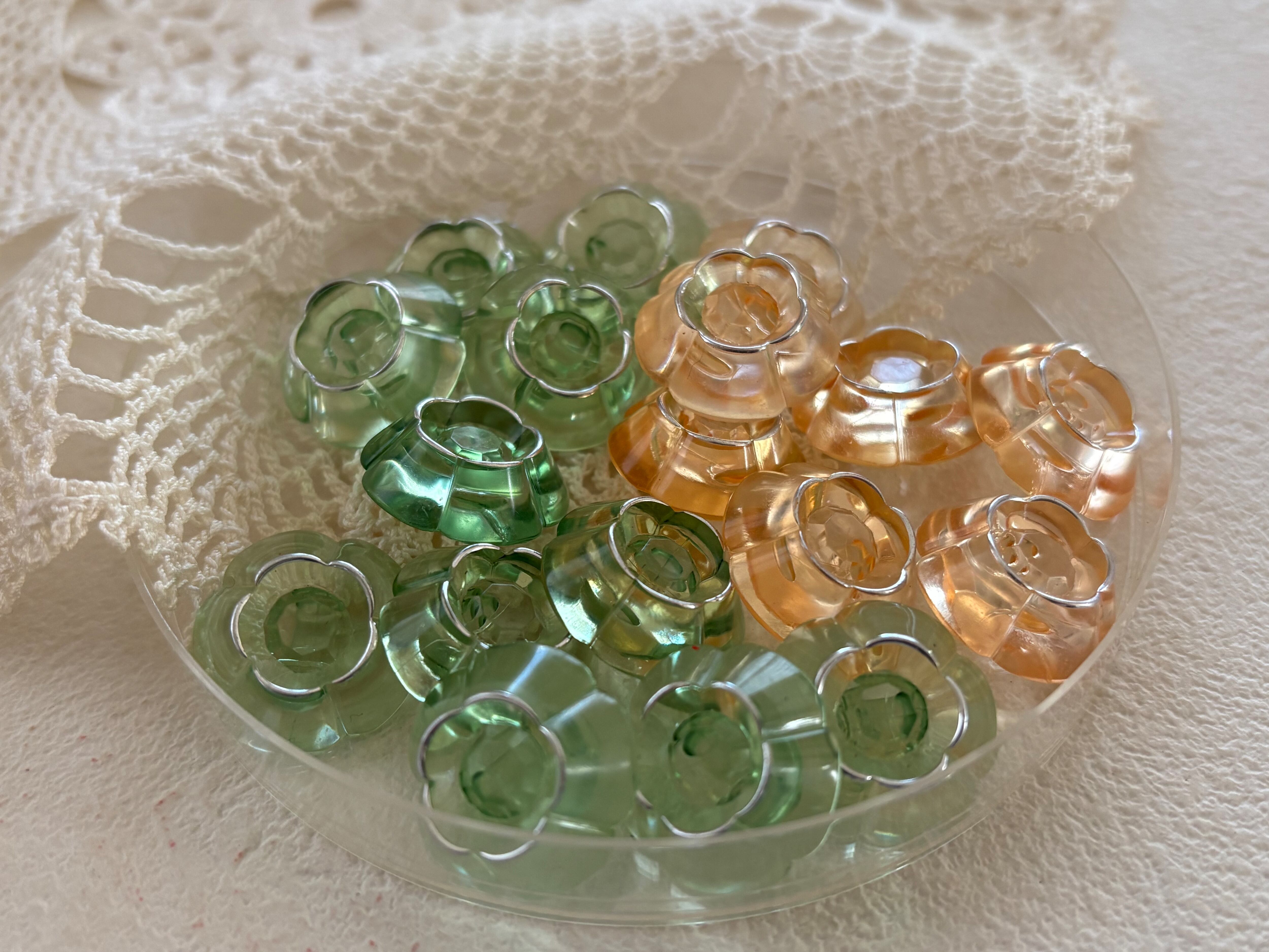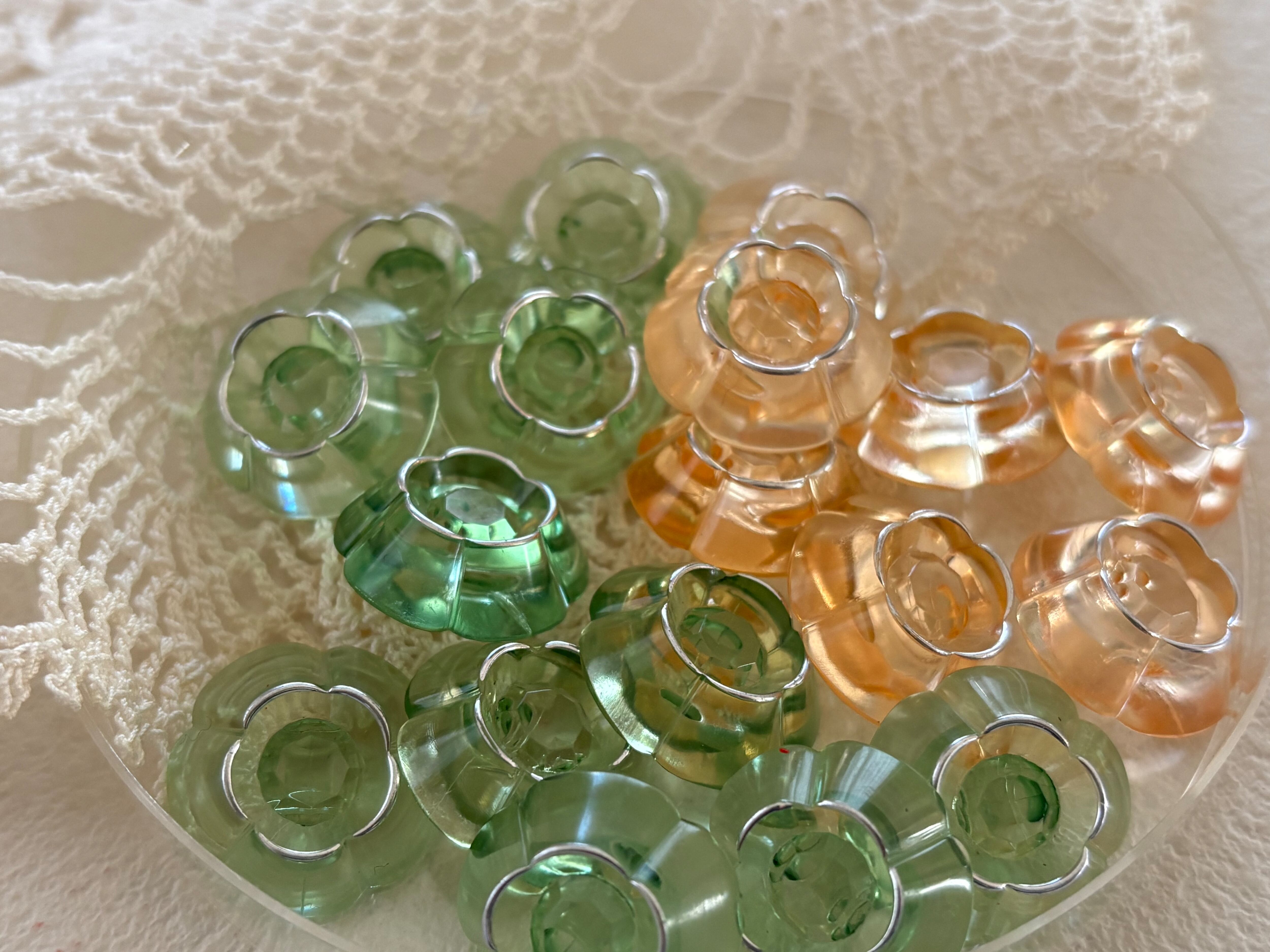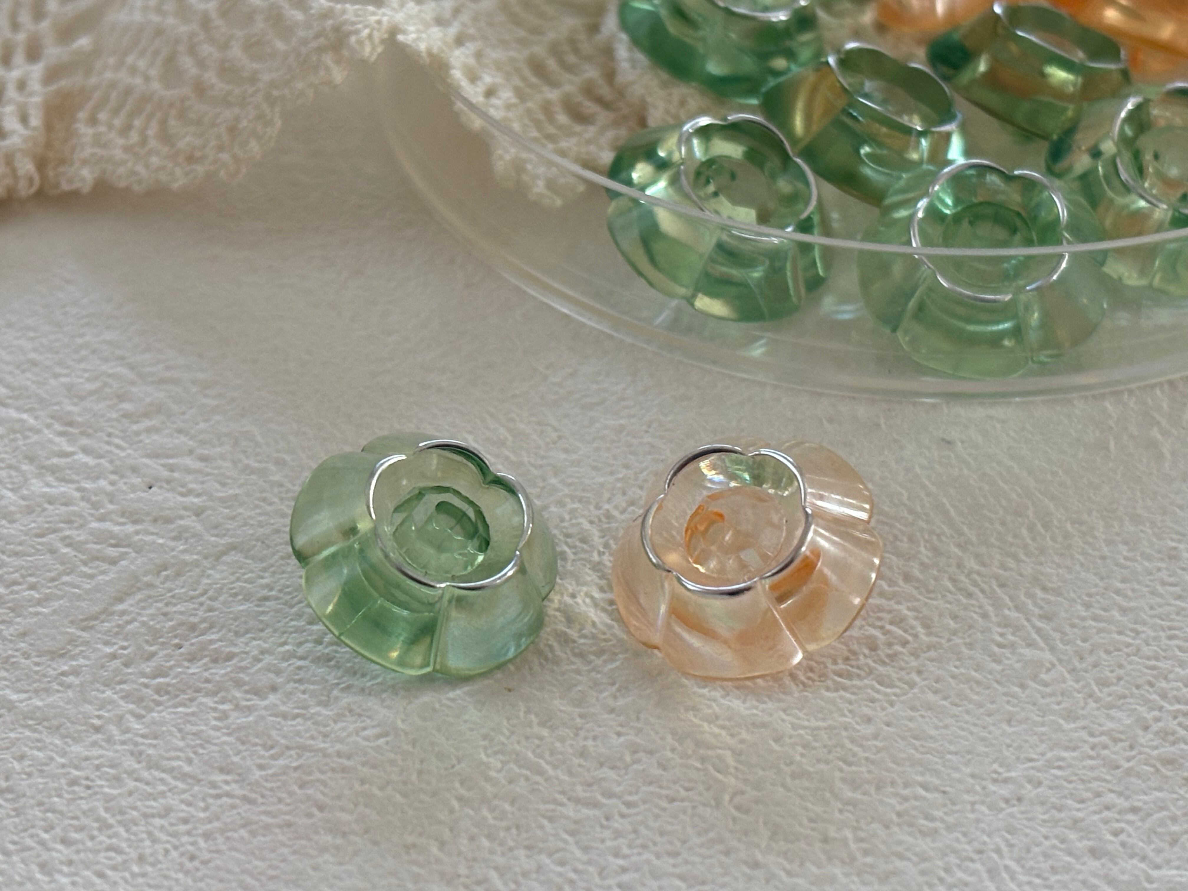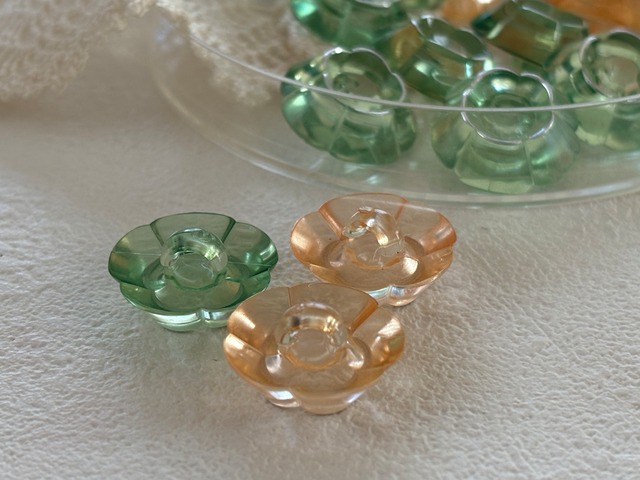 17mm Japanese Vintage ボタン フラワー 花型 クリア グリーン/オレンジピンク アクセサリーパーツ 装飾材 デコレーション材