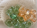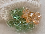 クリアなグリーン、オレンジピンク。光に当たるとレトロ可愛く輝きます。