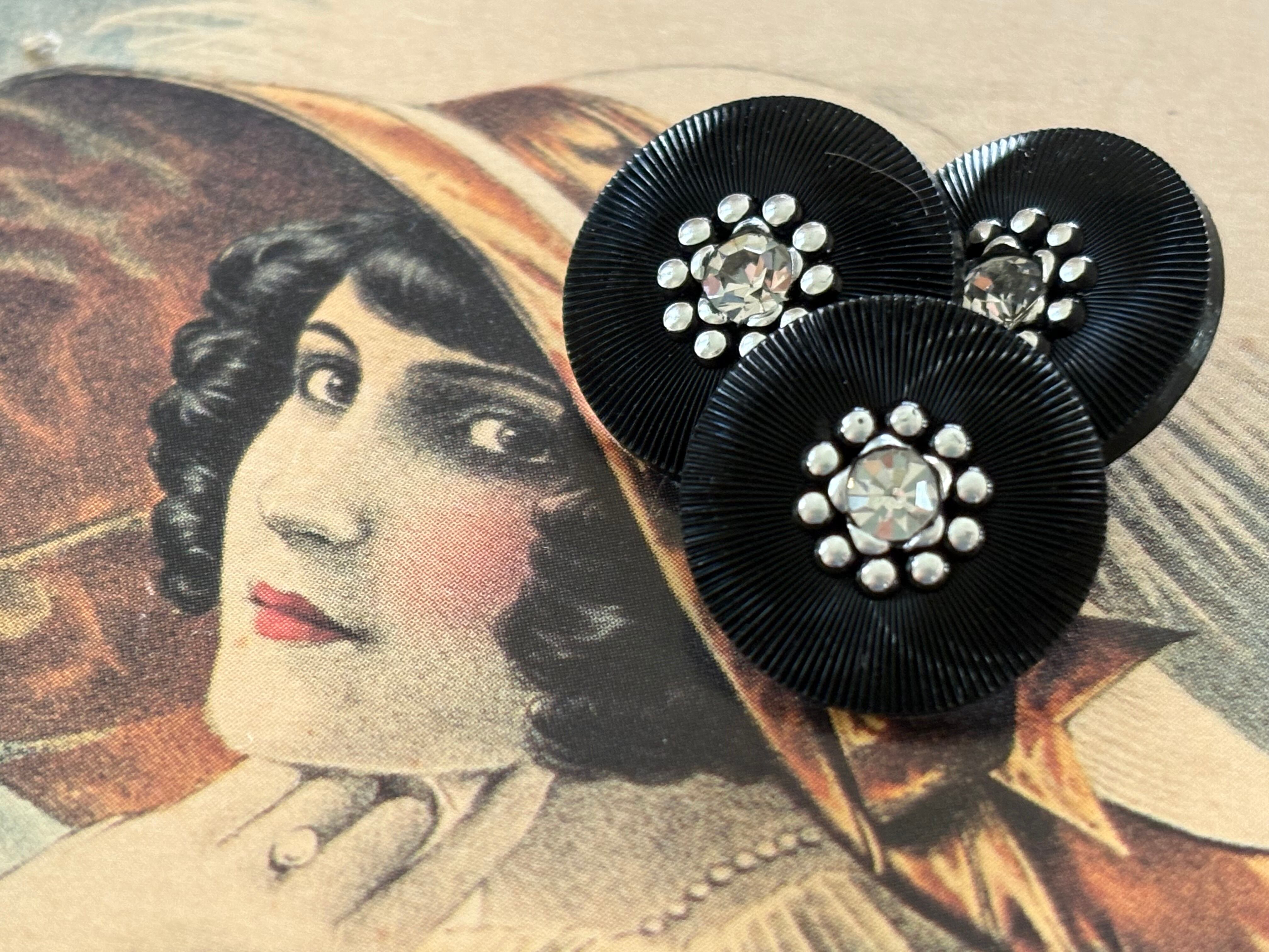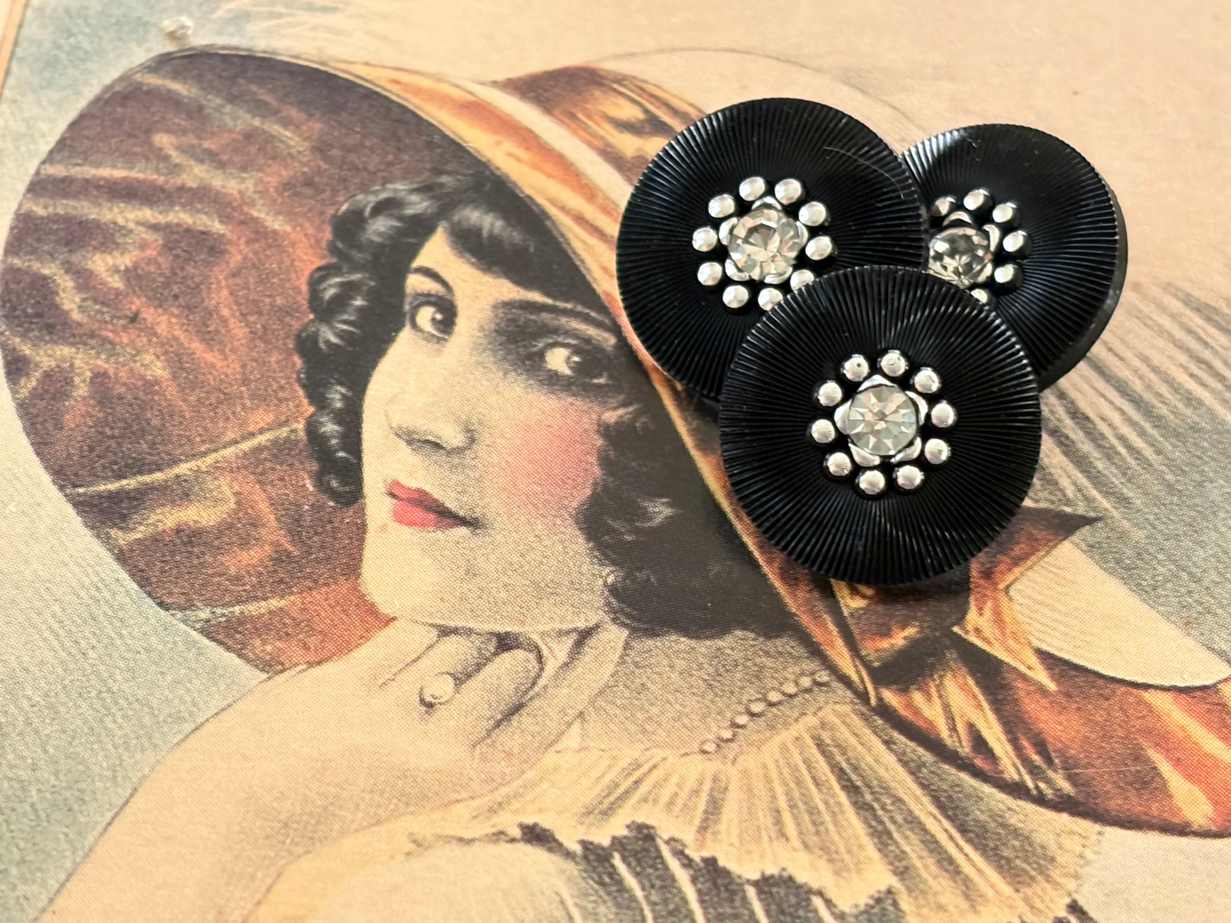 18mm Japanese ヴィンテージボタン ブラック ストーン レトロ アクセサリーパーツ 装飾材 カルトナージュ