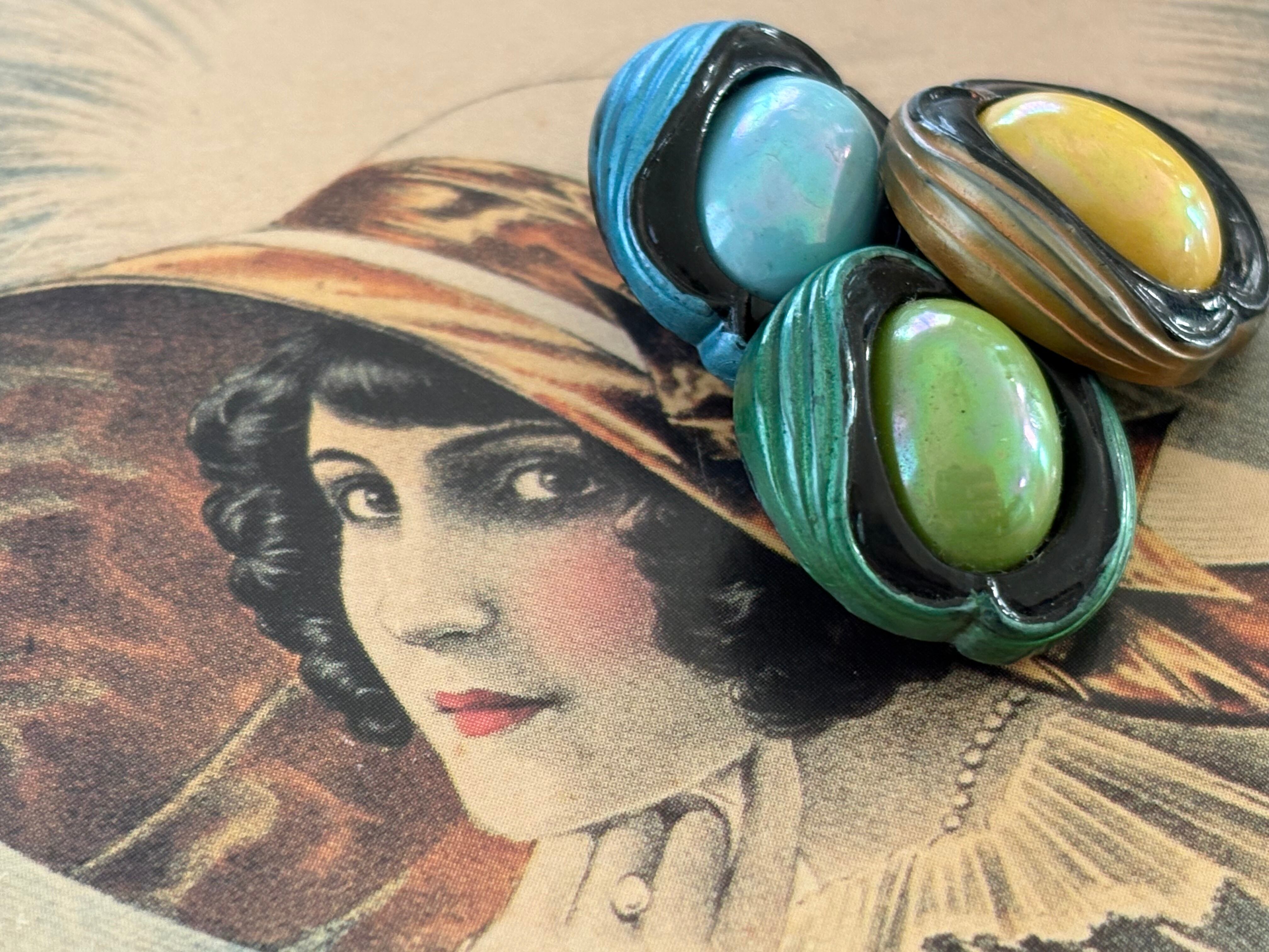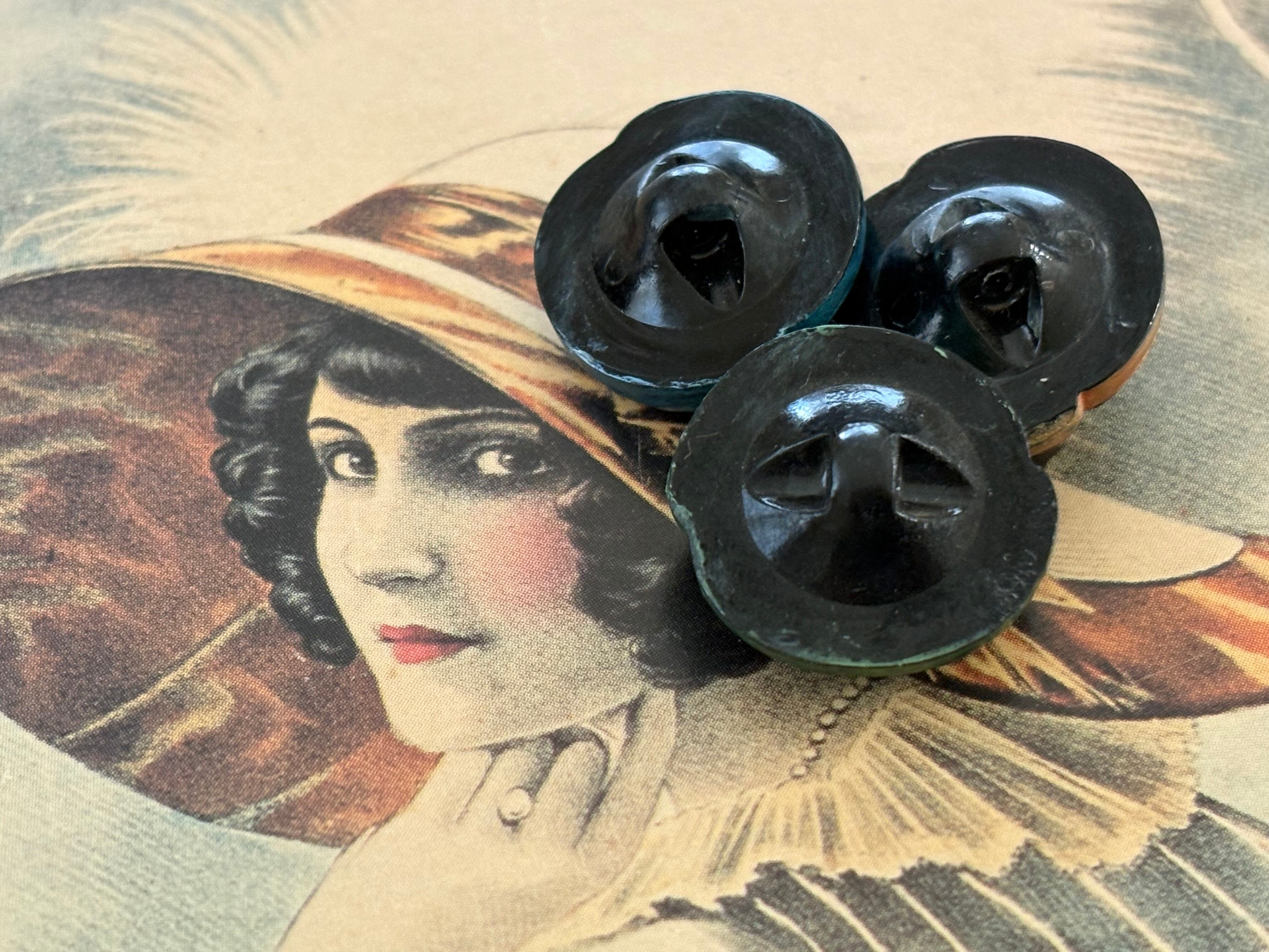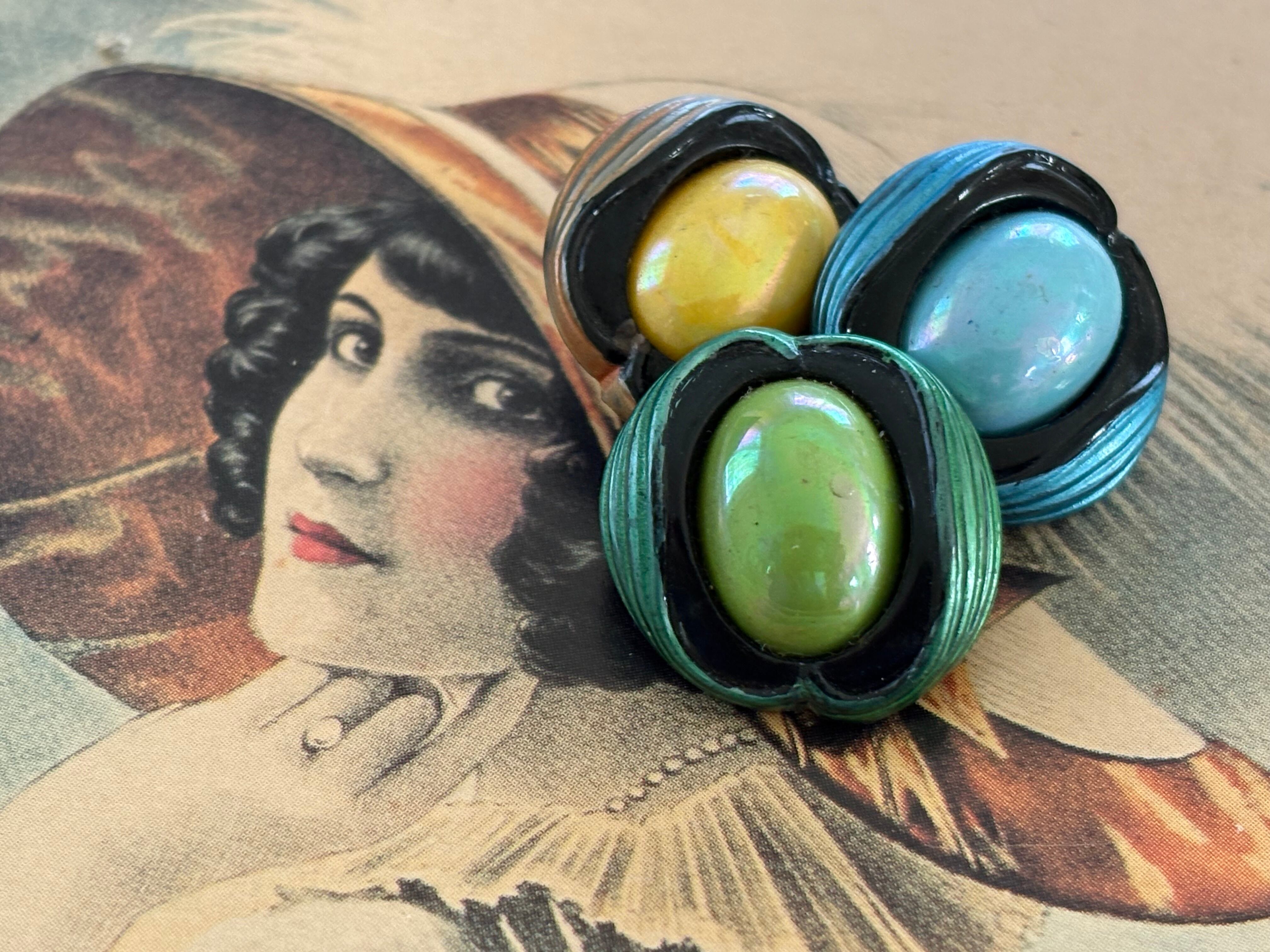 Japanese Vintage ヴィンテージボタン カボション ライトブルー/イエローグリーン/イエロー レトロボタン アクセサリーパーツ 装飾材