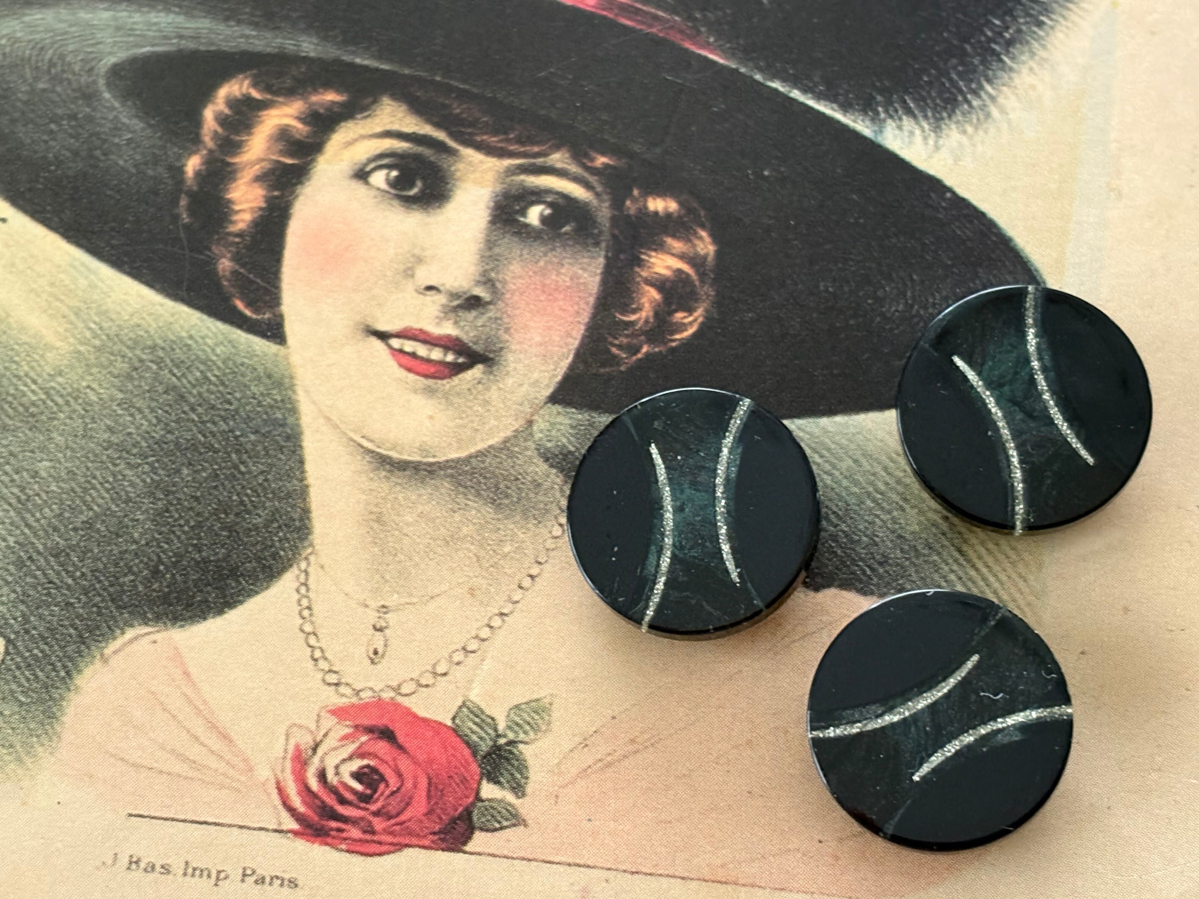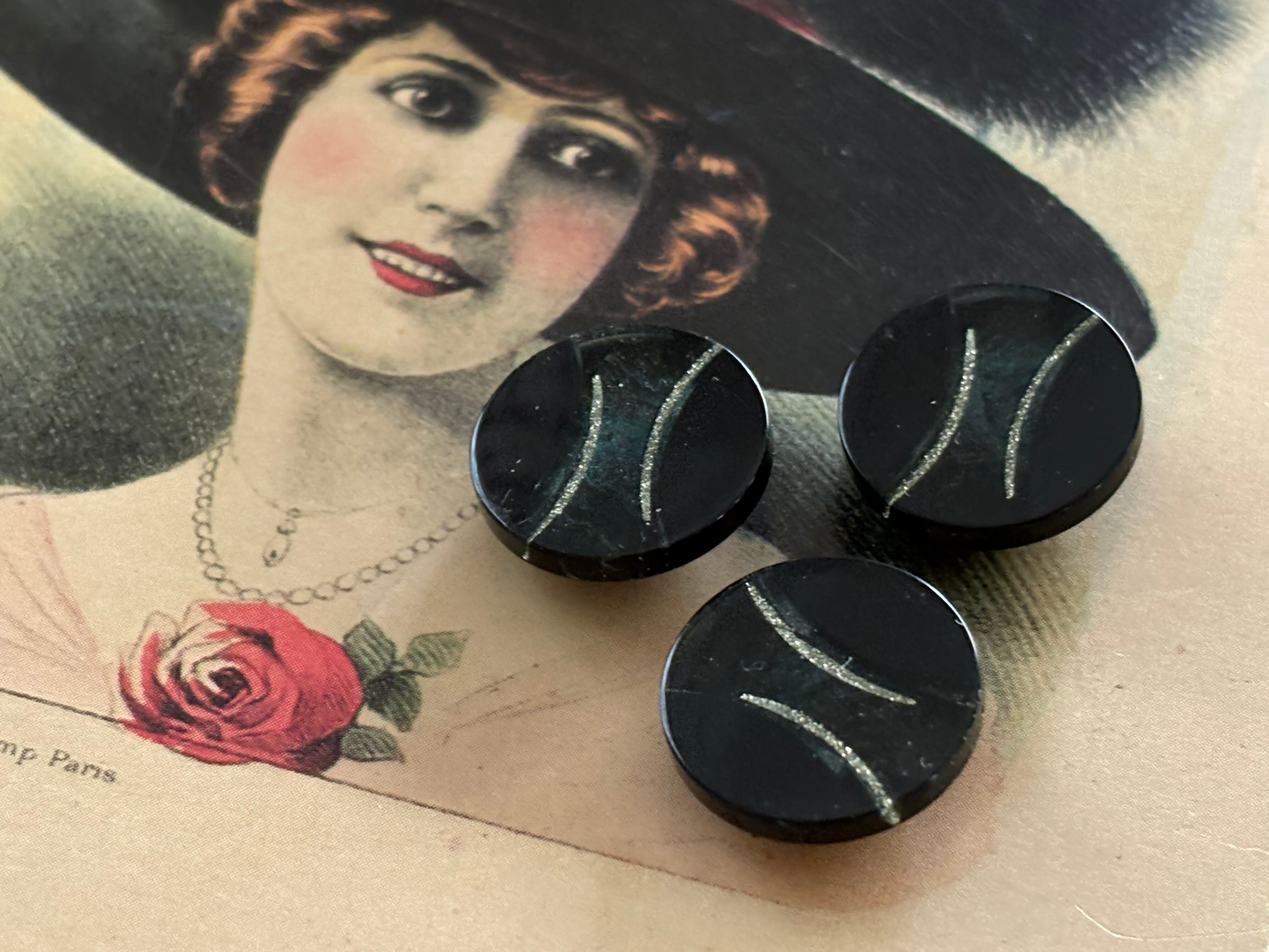 17mm Japanese ヴィンテージボタン ブラック系×ゴールド 樹脂ボタン グリッター レトロ アクセサリーパーツ 装飾材 カルトナージュ