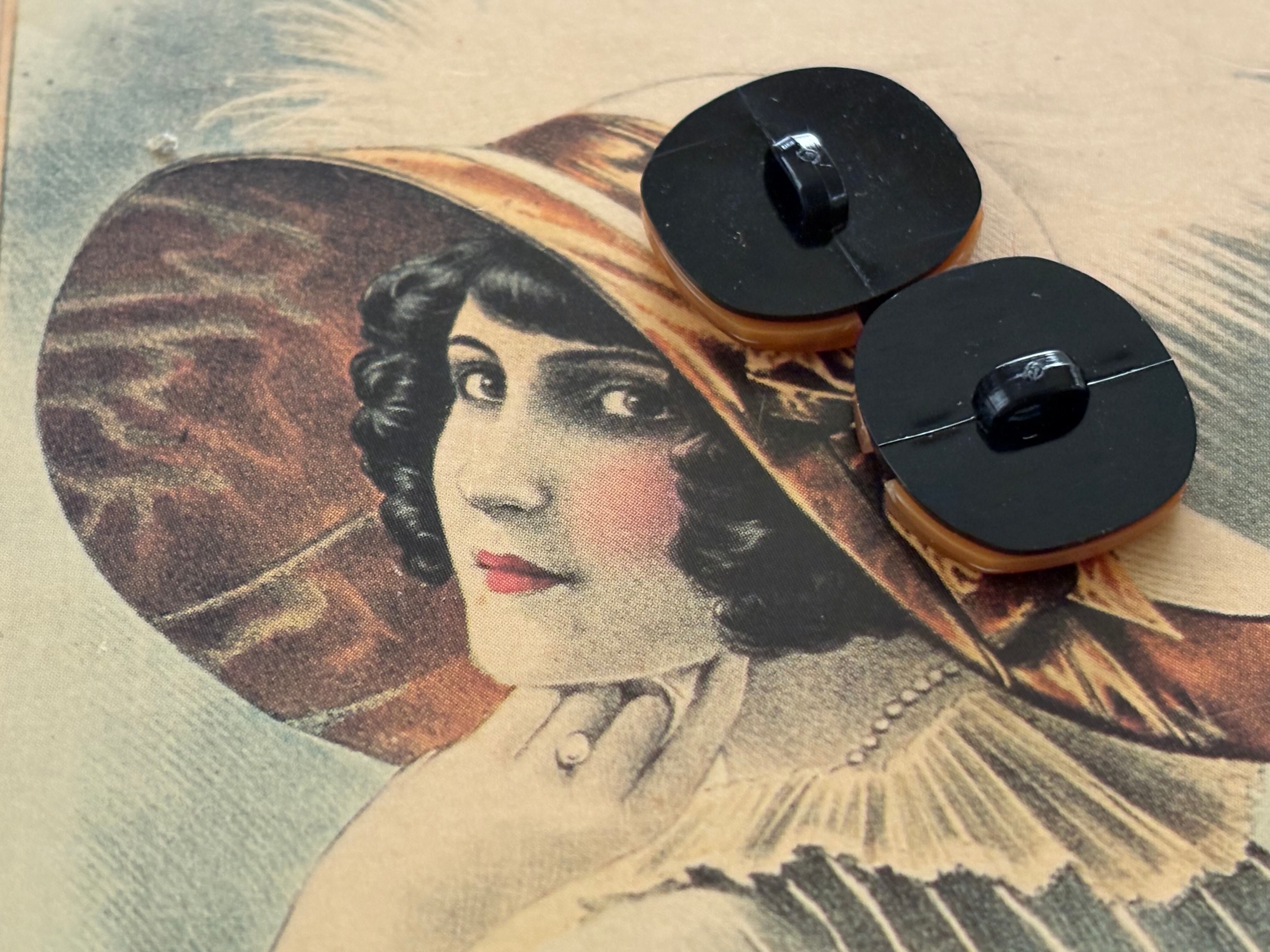 17mm×19mm Japanese ヴィンテージボタン ピンク系×ブラック×ゴールド レトロ アクセサリーパーツ 装飾材 カルトナージュ
